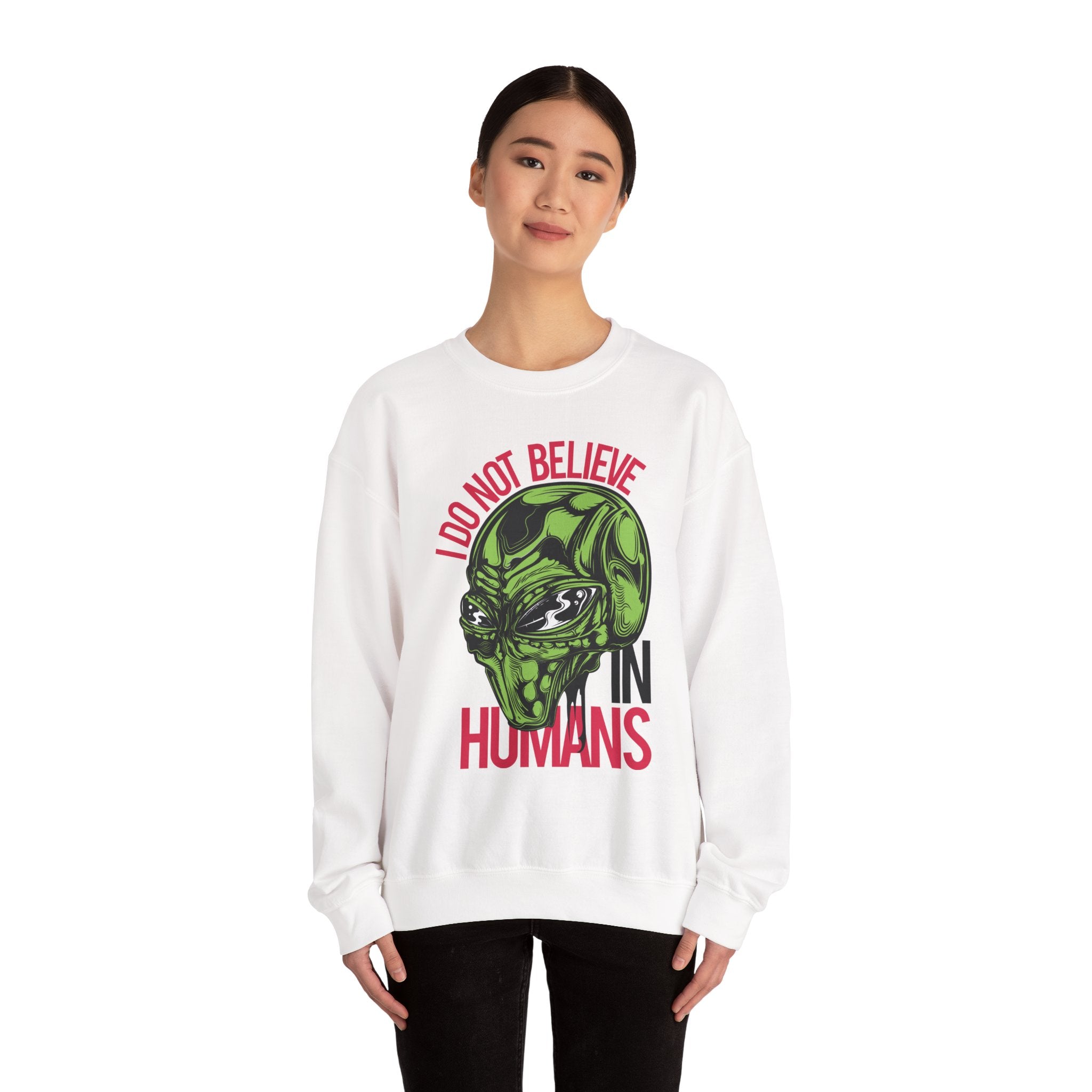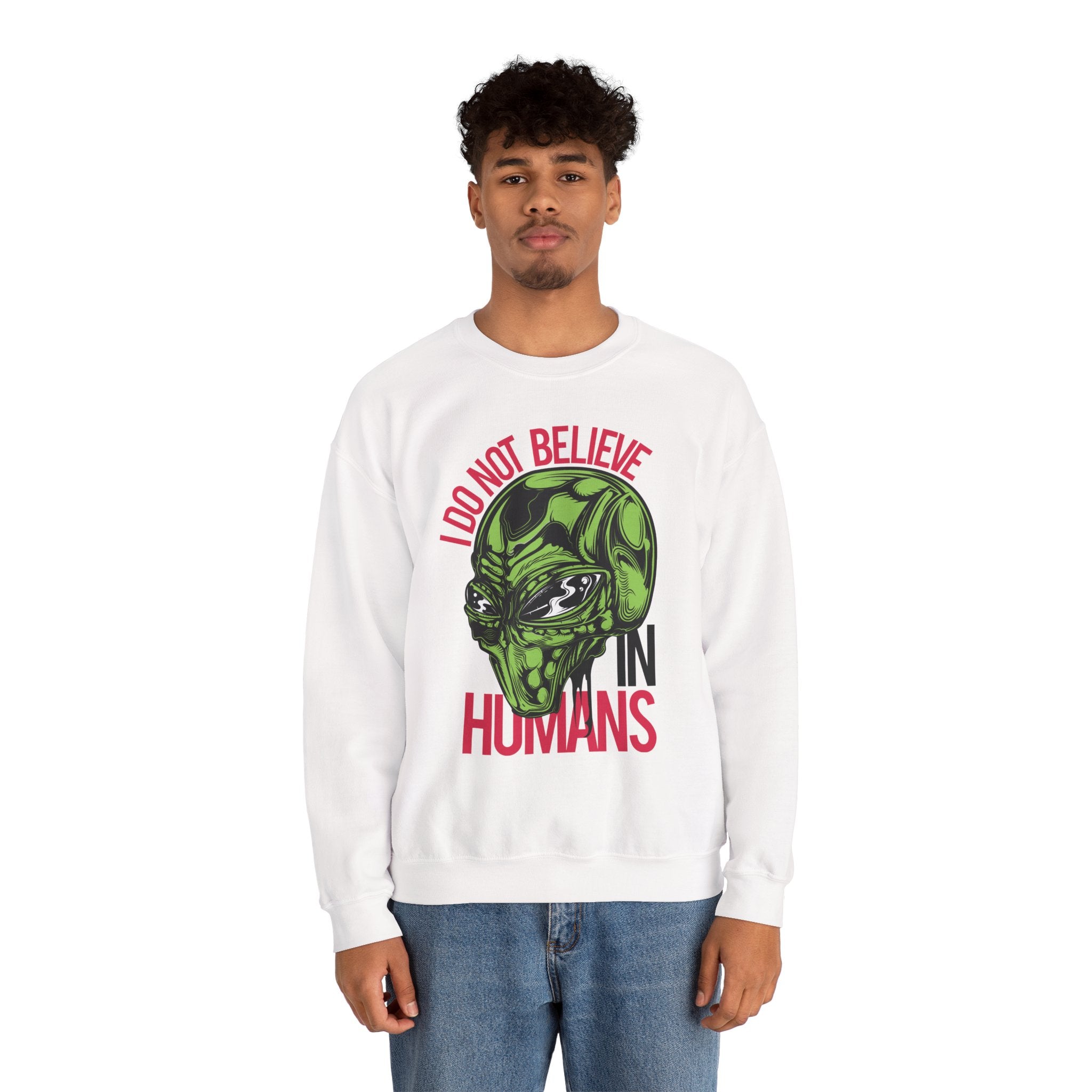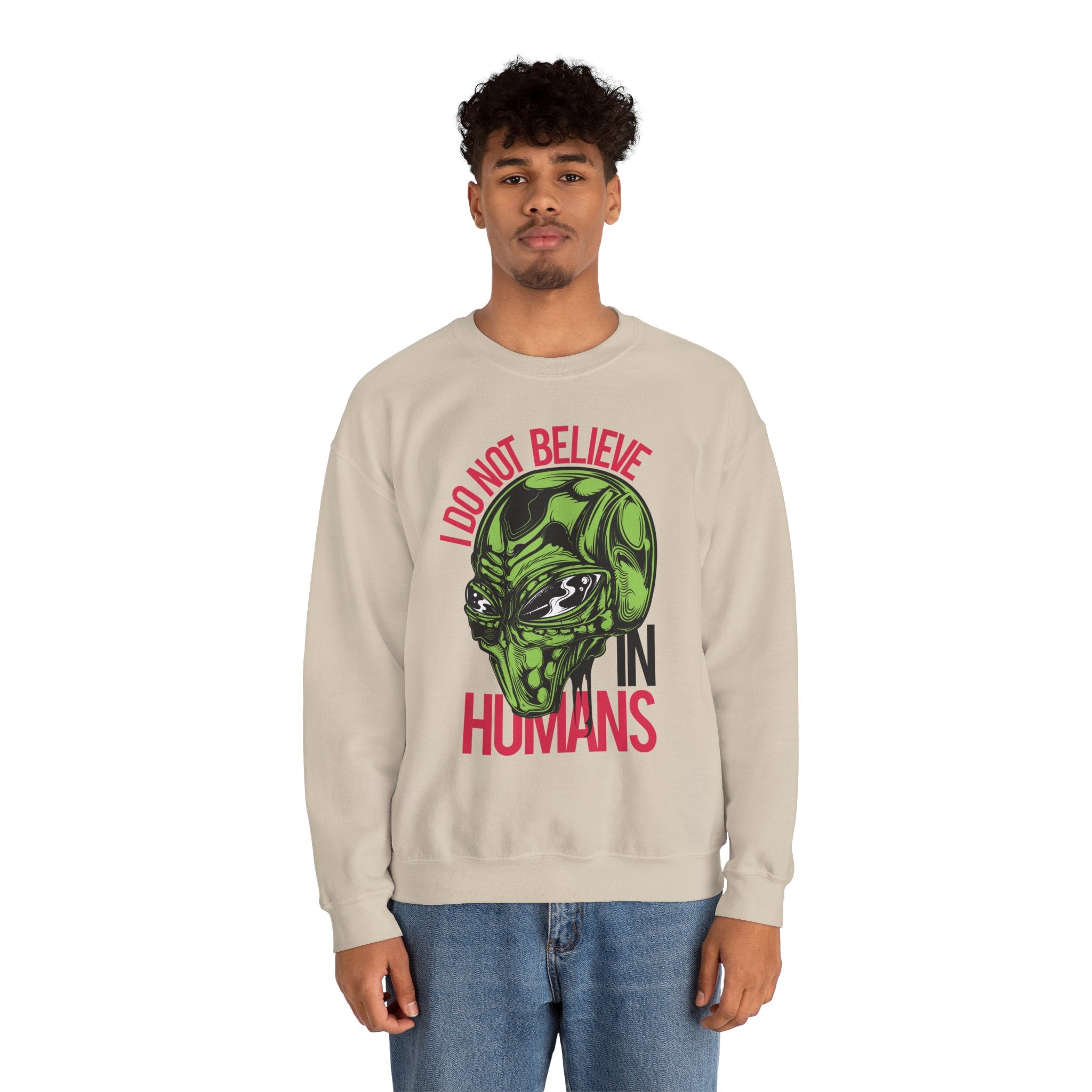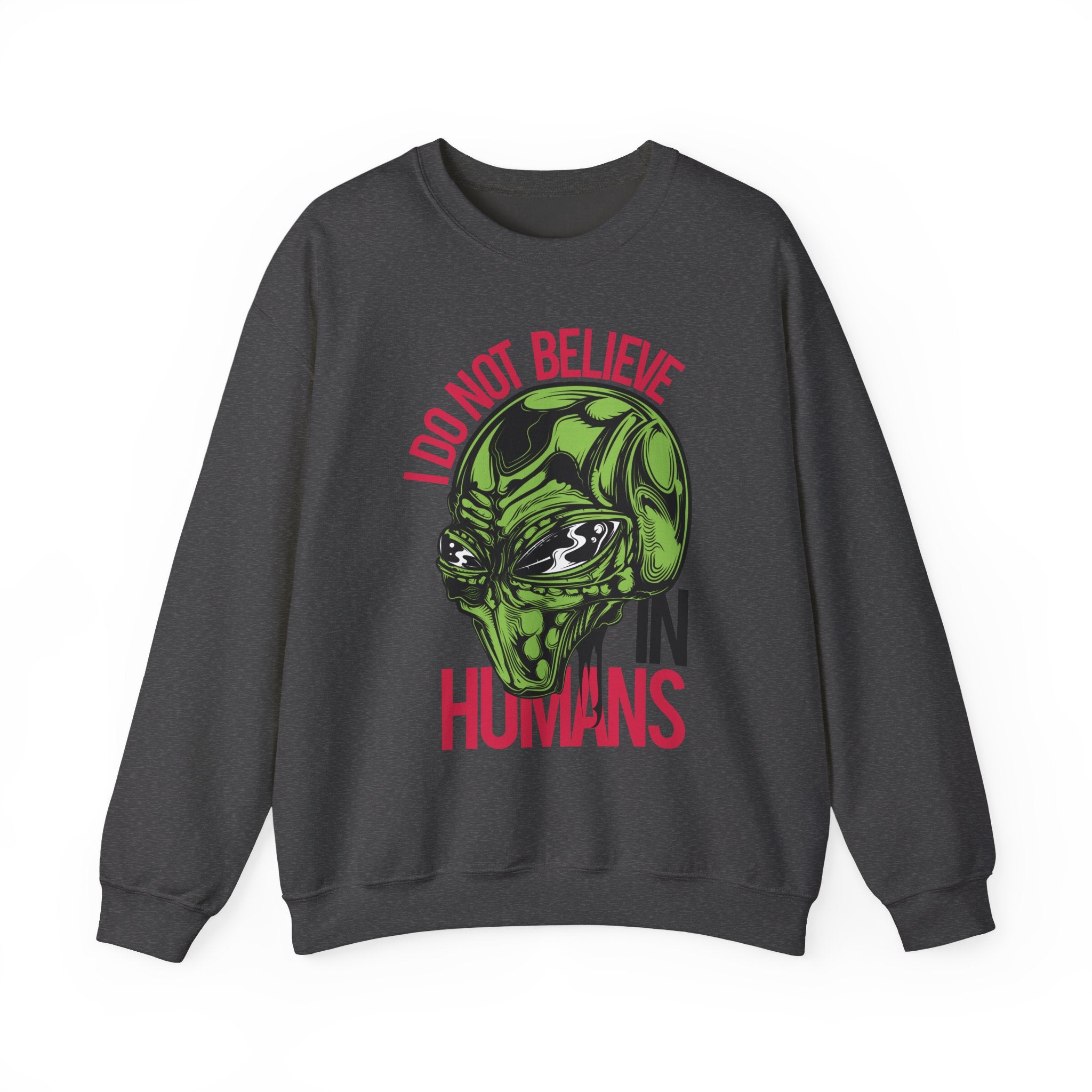 Alien Graphic Sweatshirt — "I Do Not Believe in Humans" Crewneck