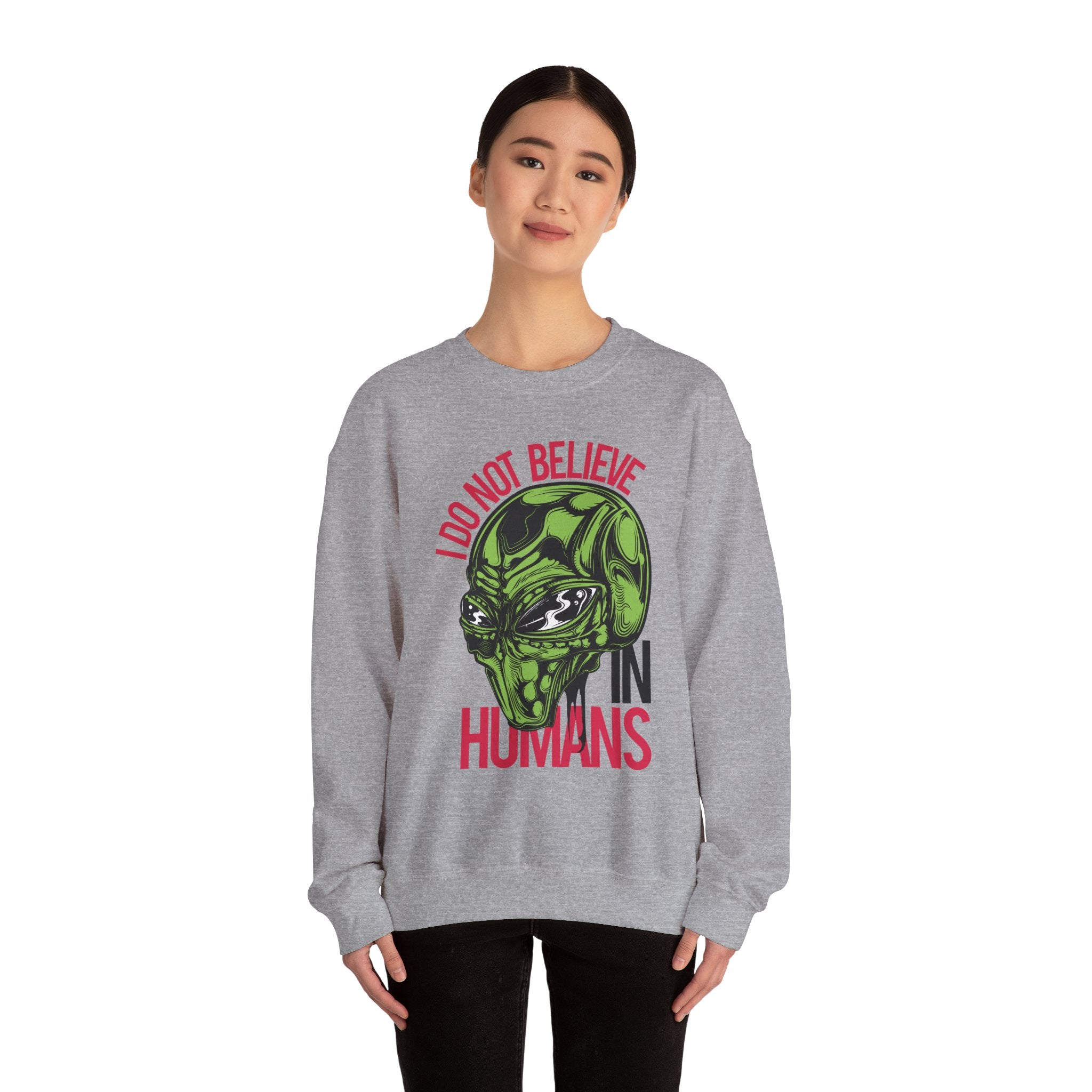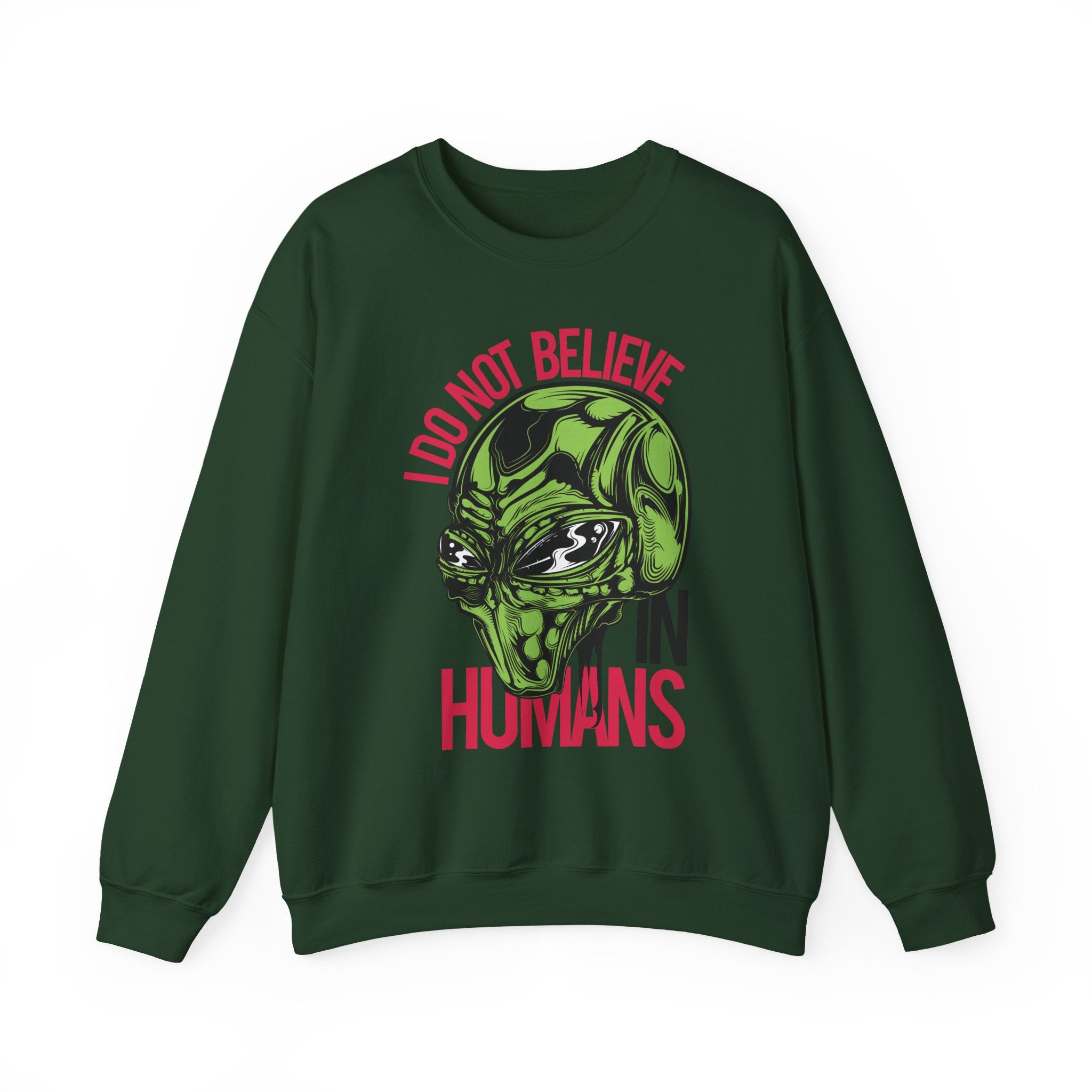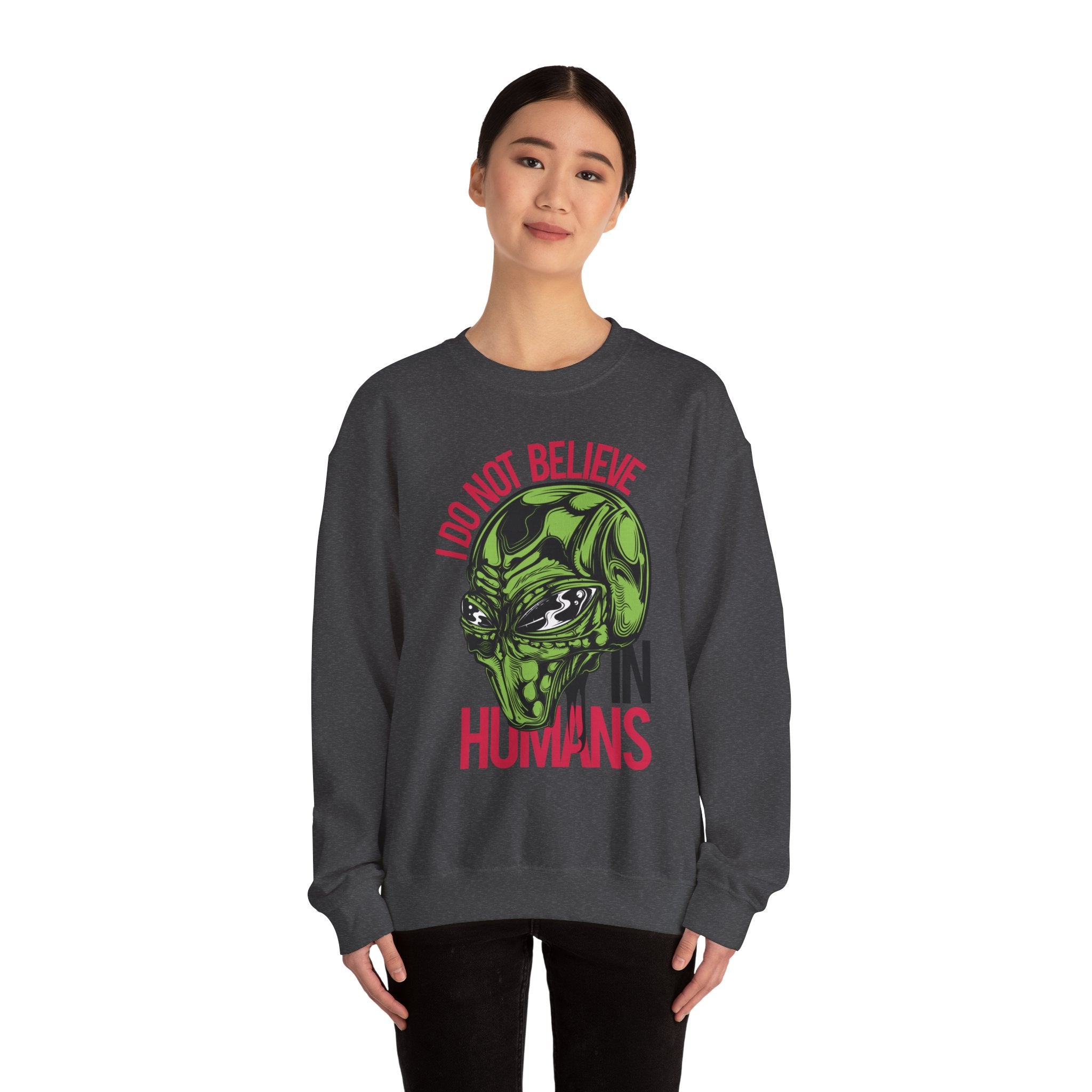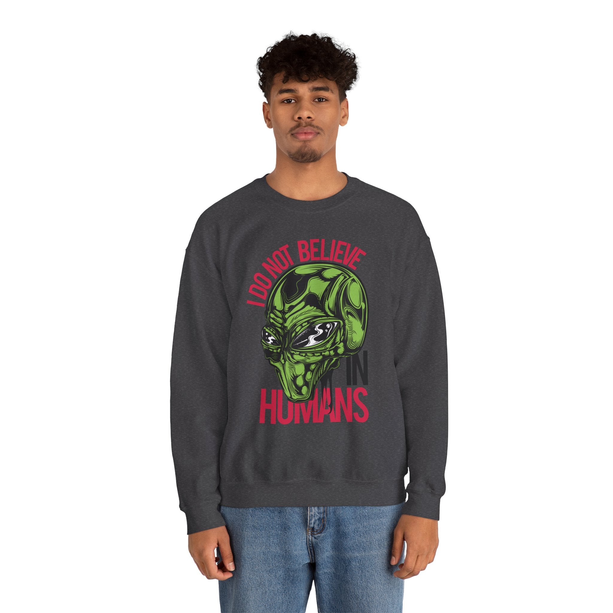 Alien Graphic Sweatshirt — "I Do Not Believe in Humans" Crewneck