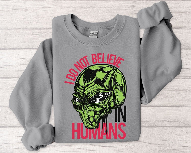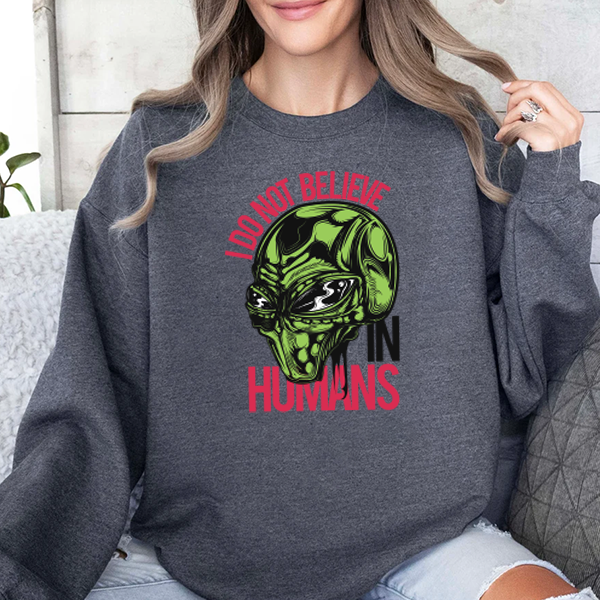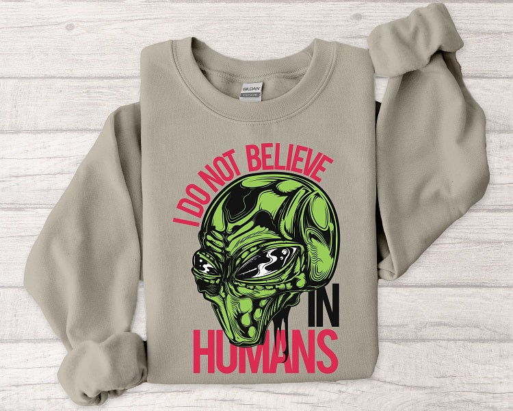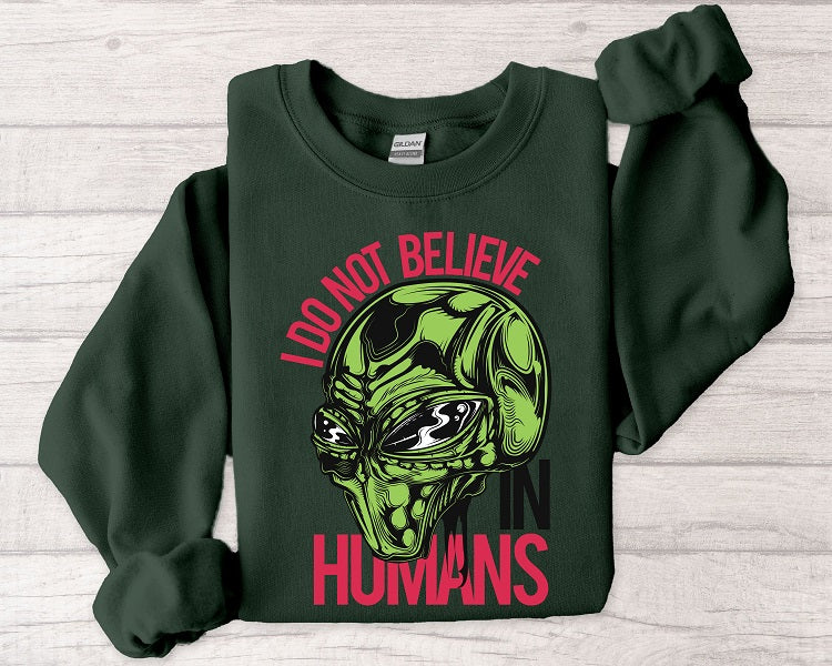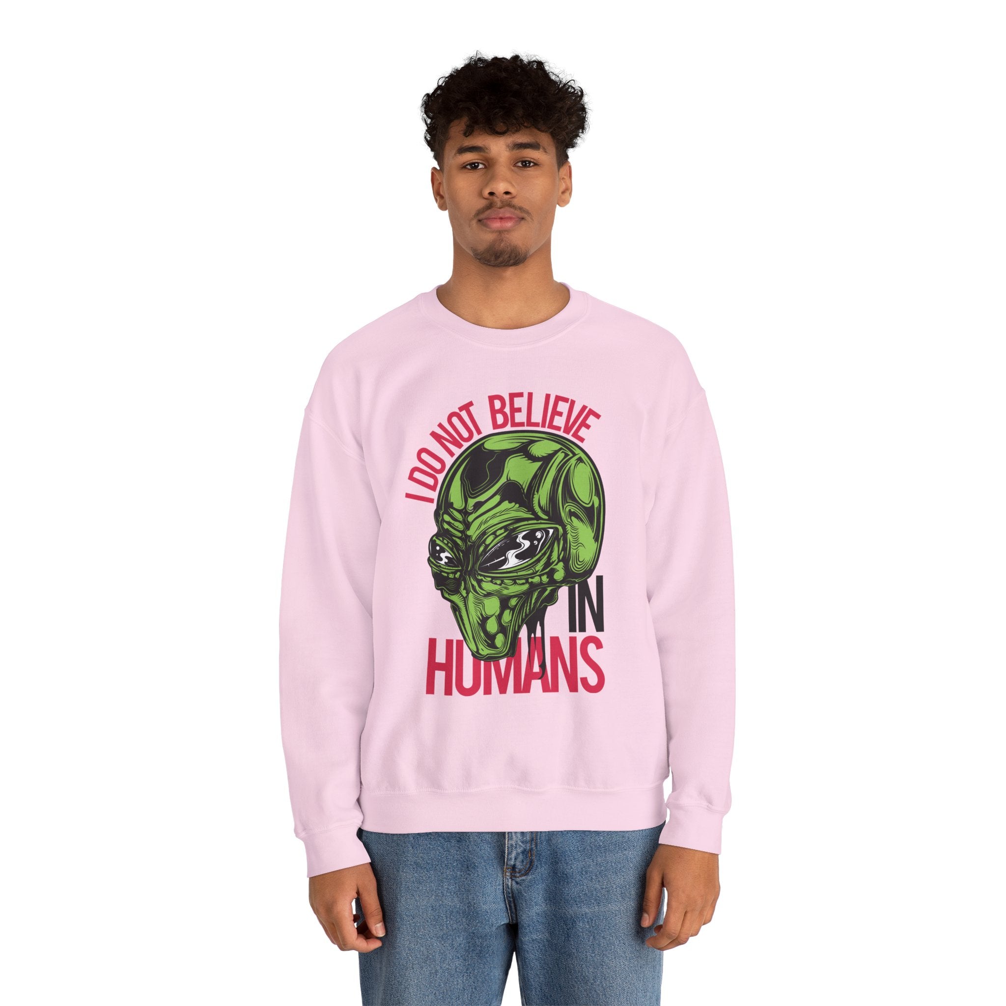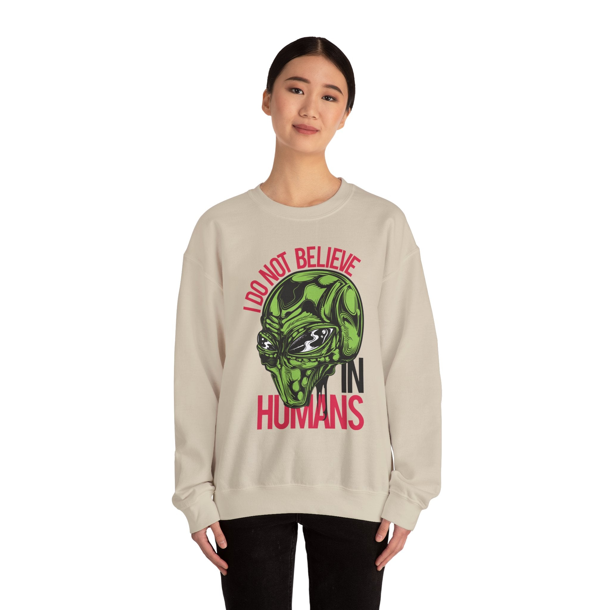 Alien Graphic Sweatshirt — "I Do Not Believe in Humans" Crewneck