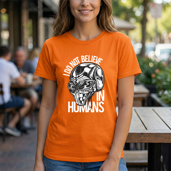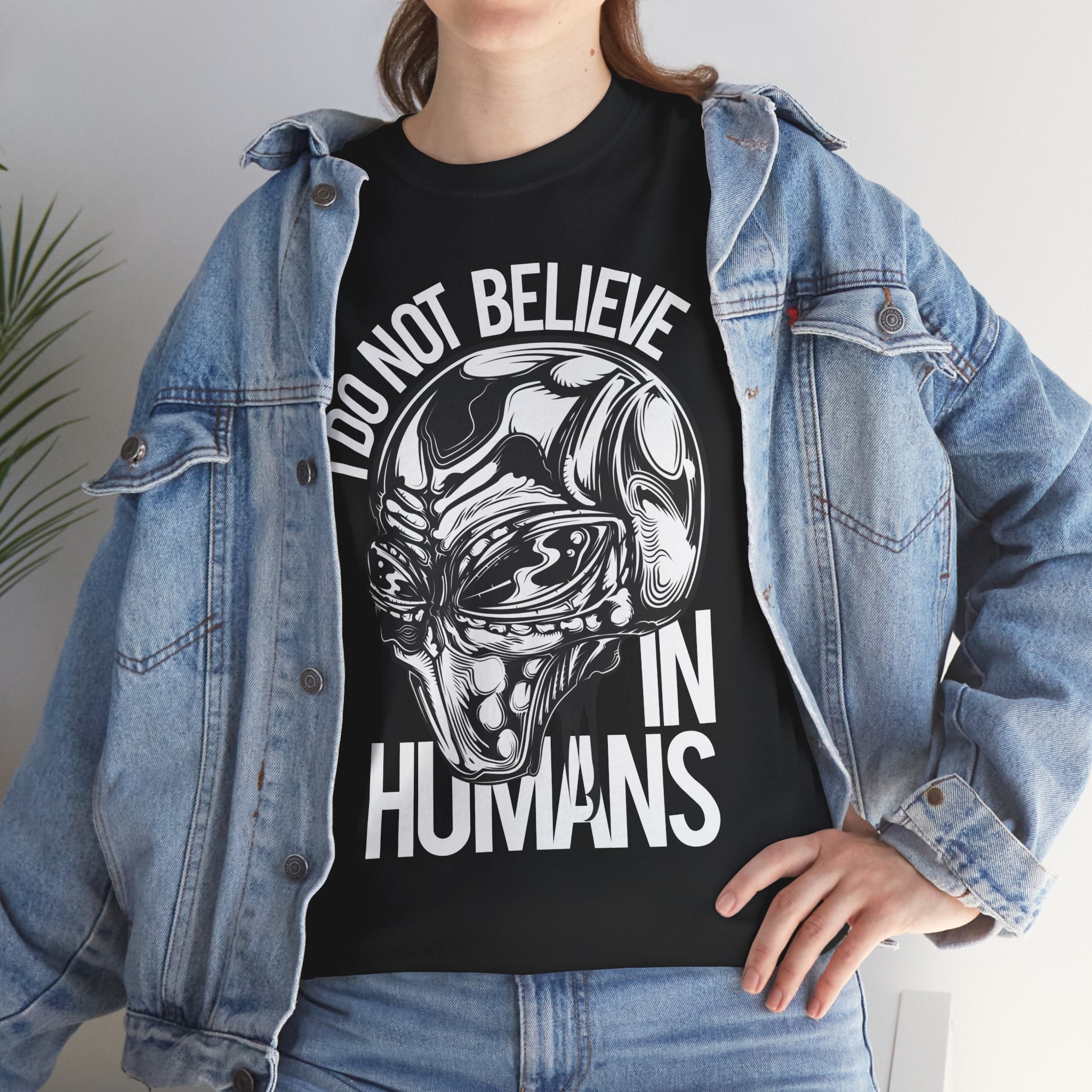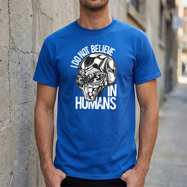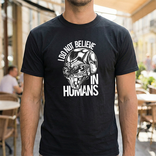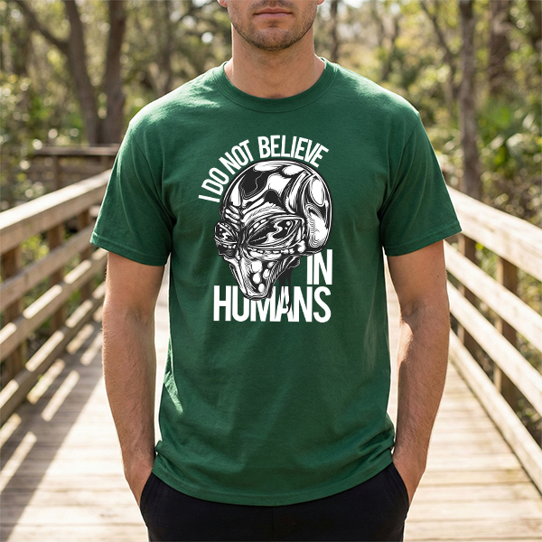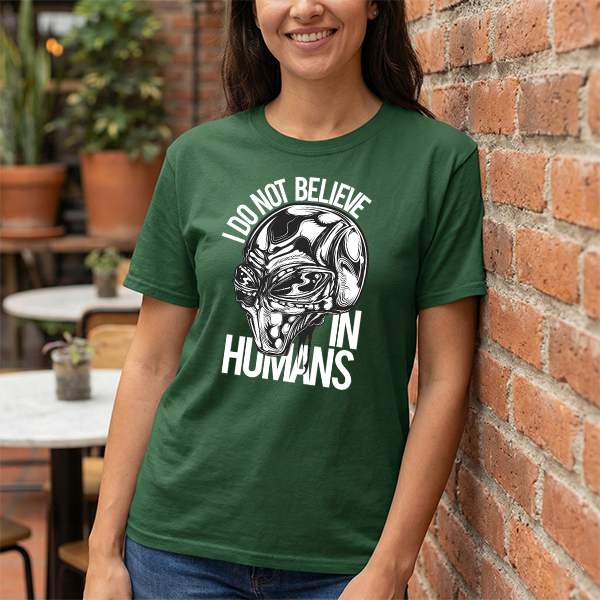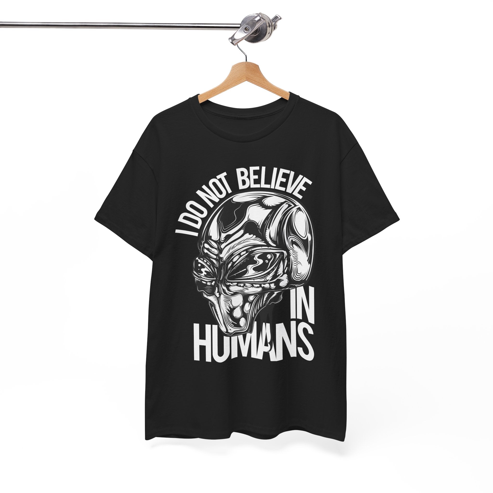 Alien Graphic Tee — "I Do Not Believe In Humans" Sci‑Fi Skull T-Shirt