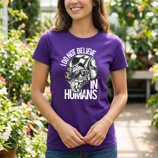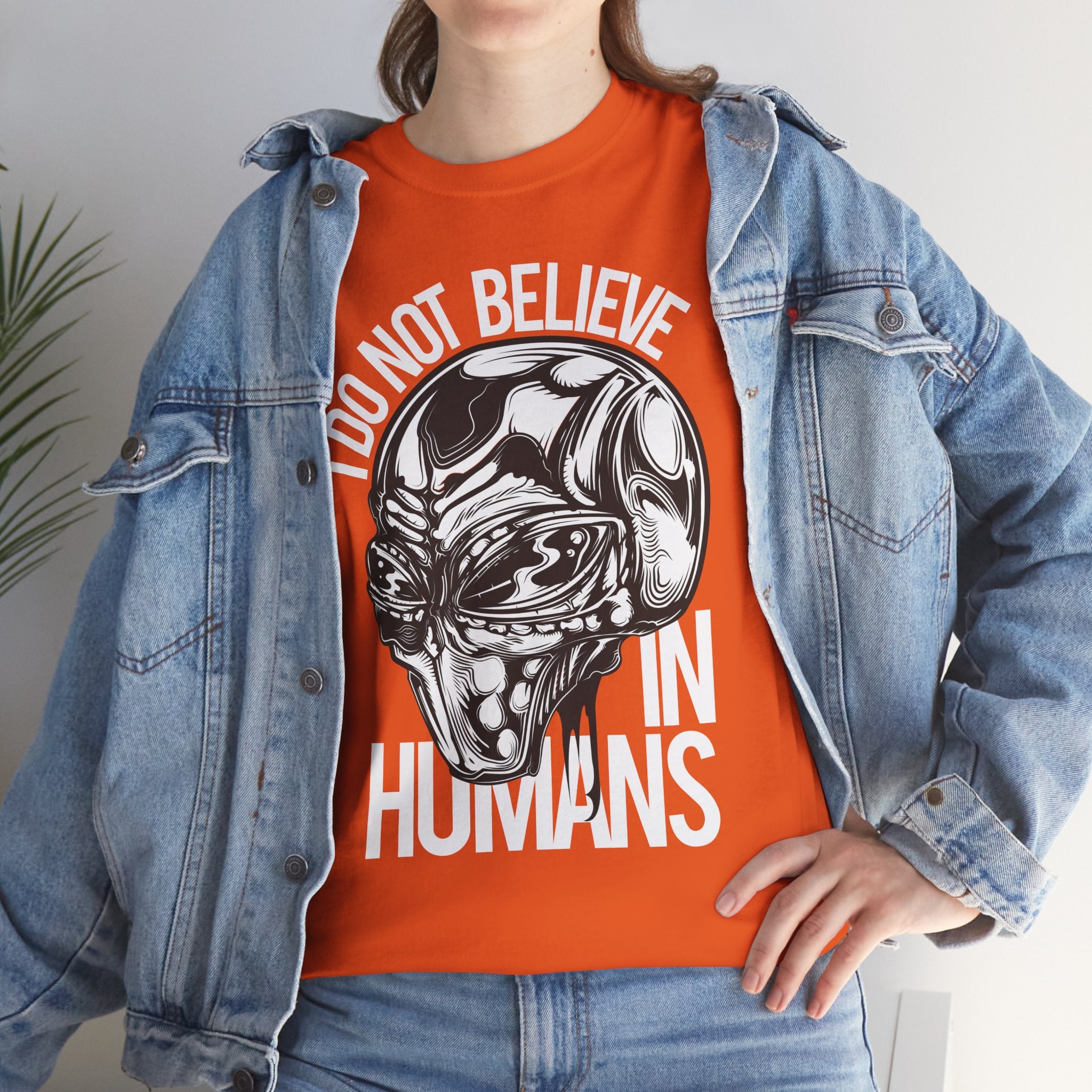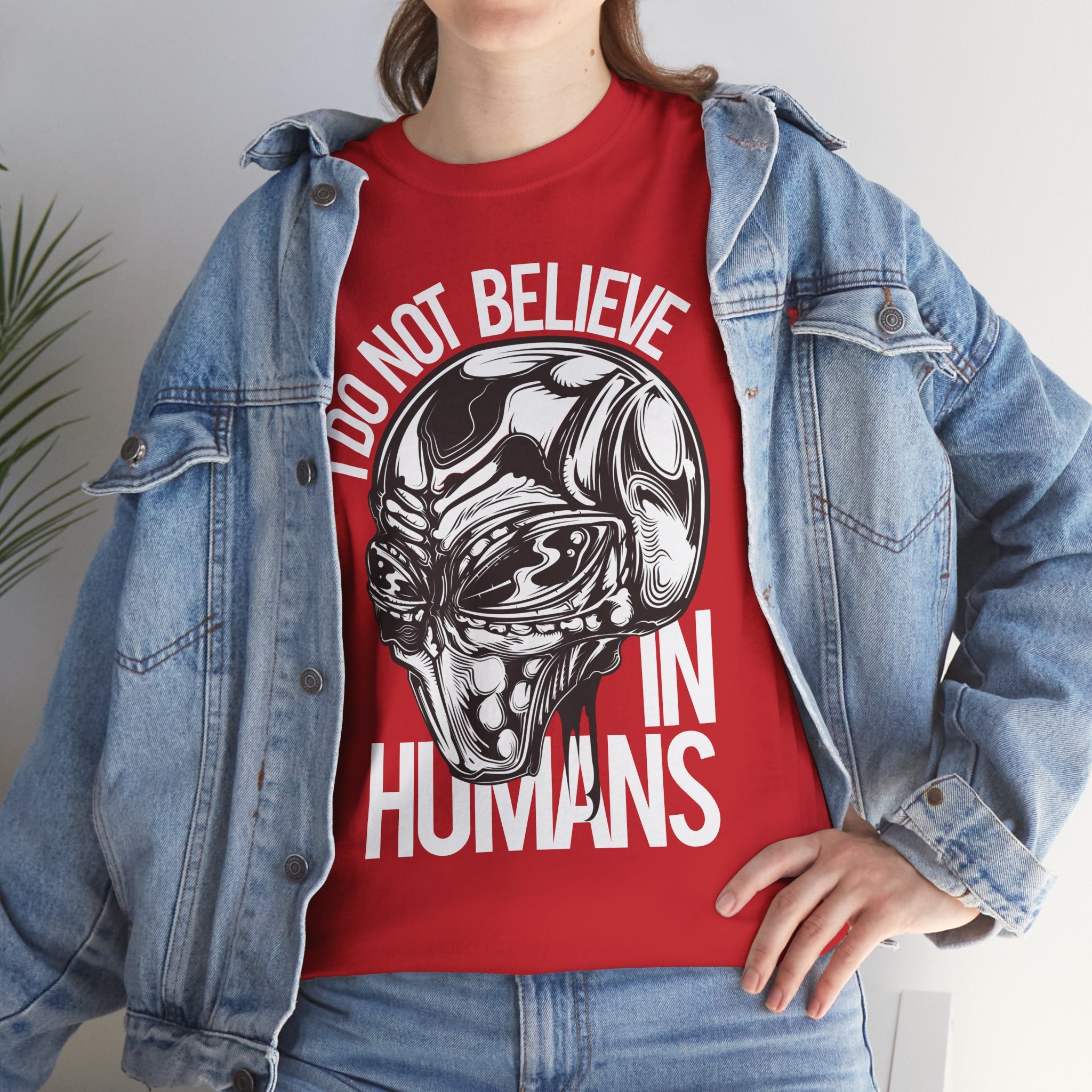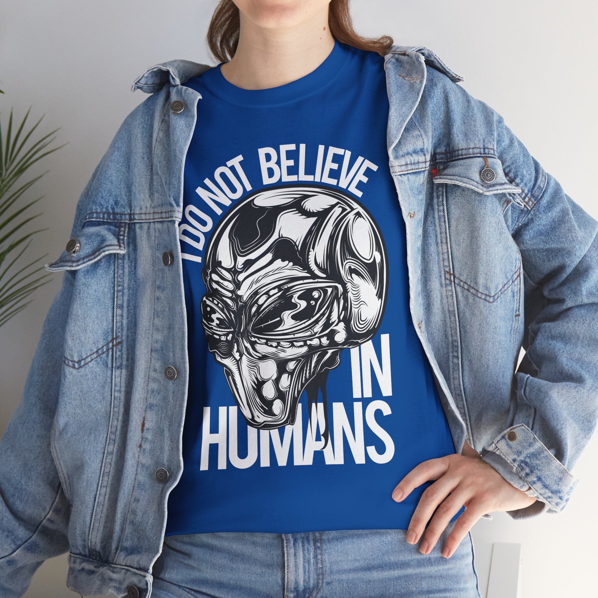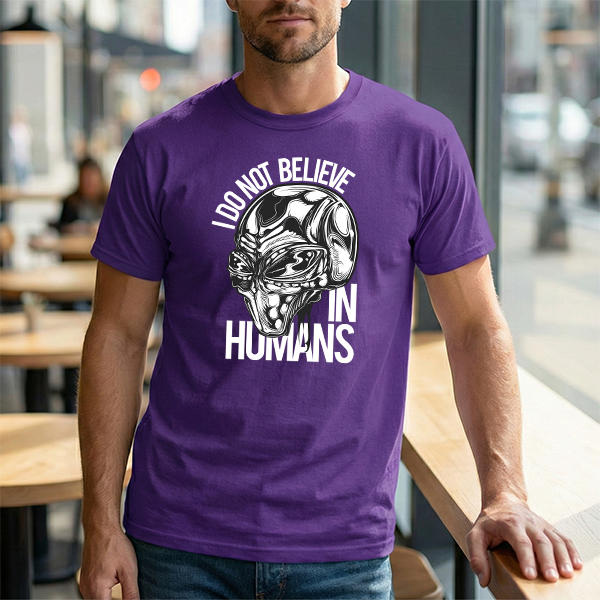 Alien Graphic Tee — "I Do Not Believe In Humans" Sci‑Fi Skull T-Shirt