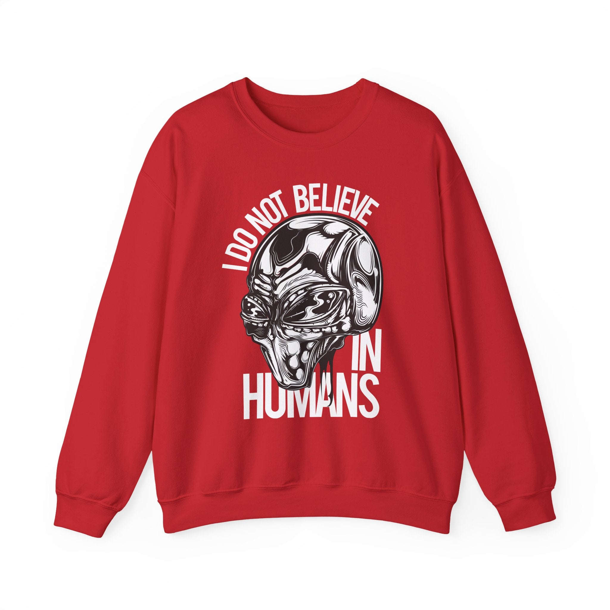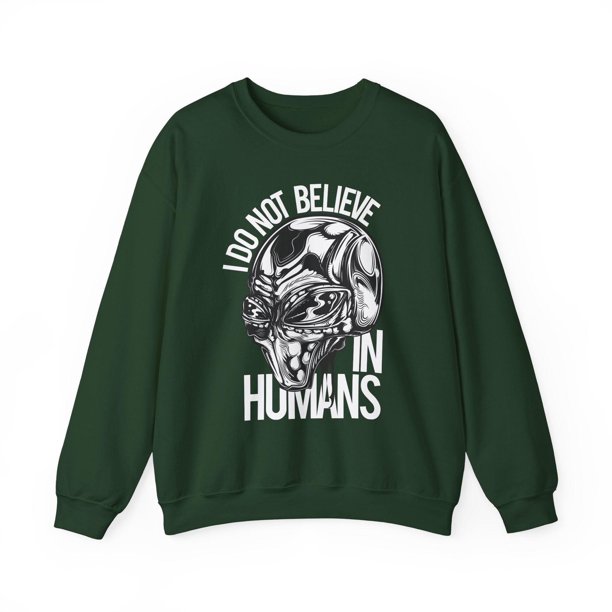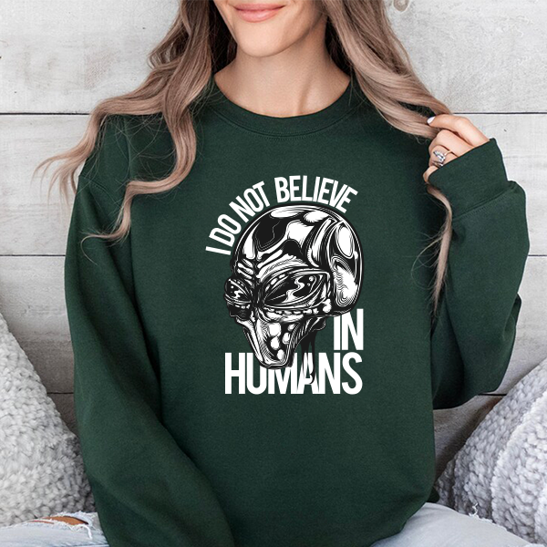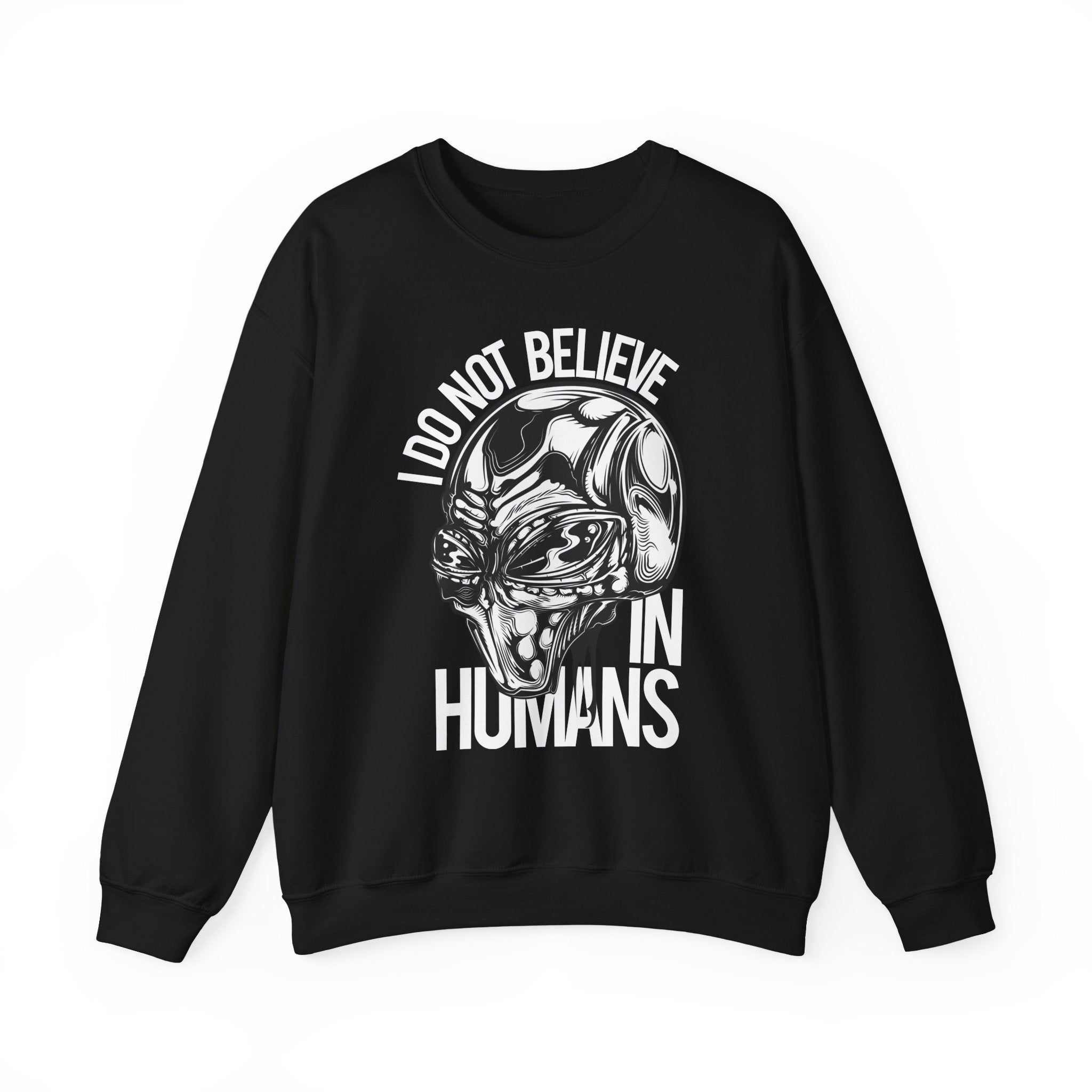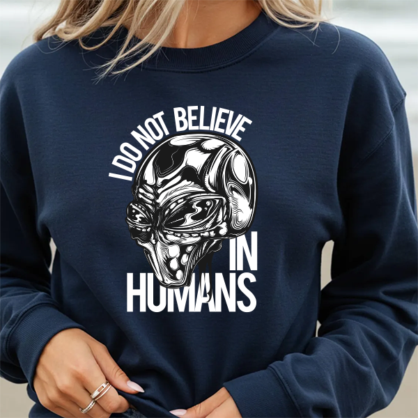 Alien Skull Sweatshirt — "I Do Not Believe in Humans" Graphic Crewneck