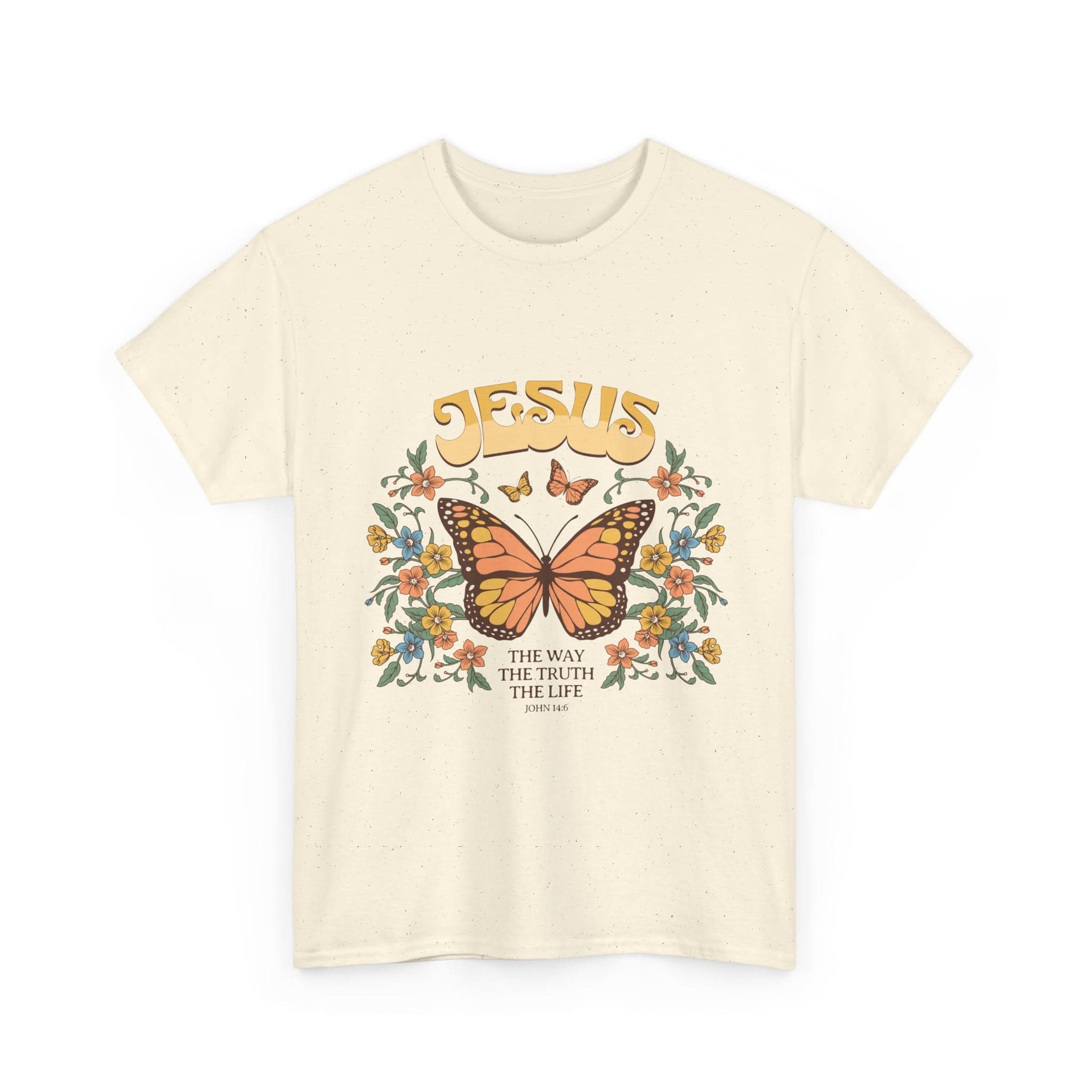 Bohemian Jesus Tee, Vintage Butterfly T-Shirt, Spiritual Apparel, Faith-based Graphic Tee, Unisex Heavy Cotton Shirt