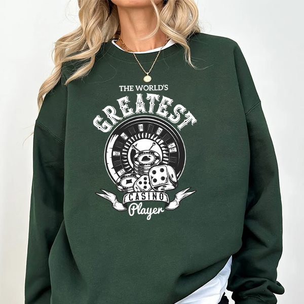 Casino Player Sweatshirt — "The World's Greatest" Vintage Dice & Roulette Crewneck