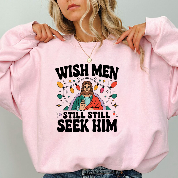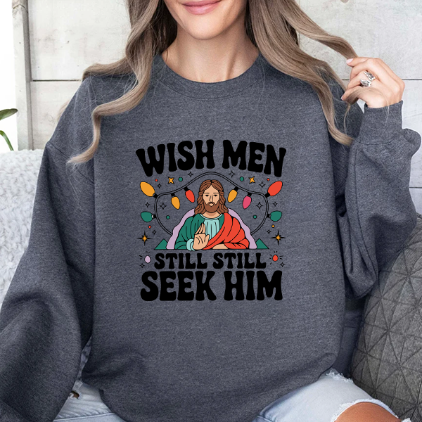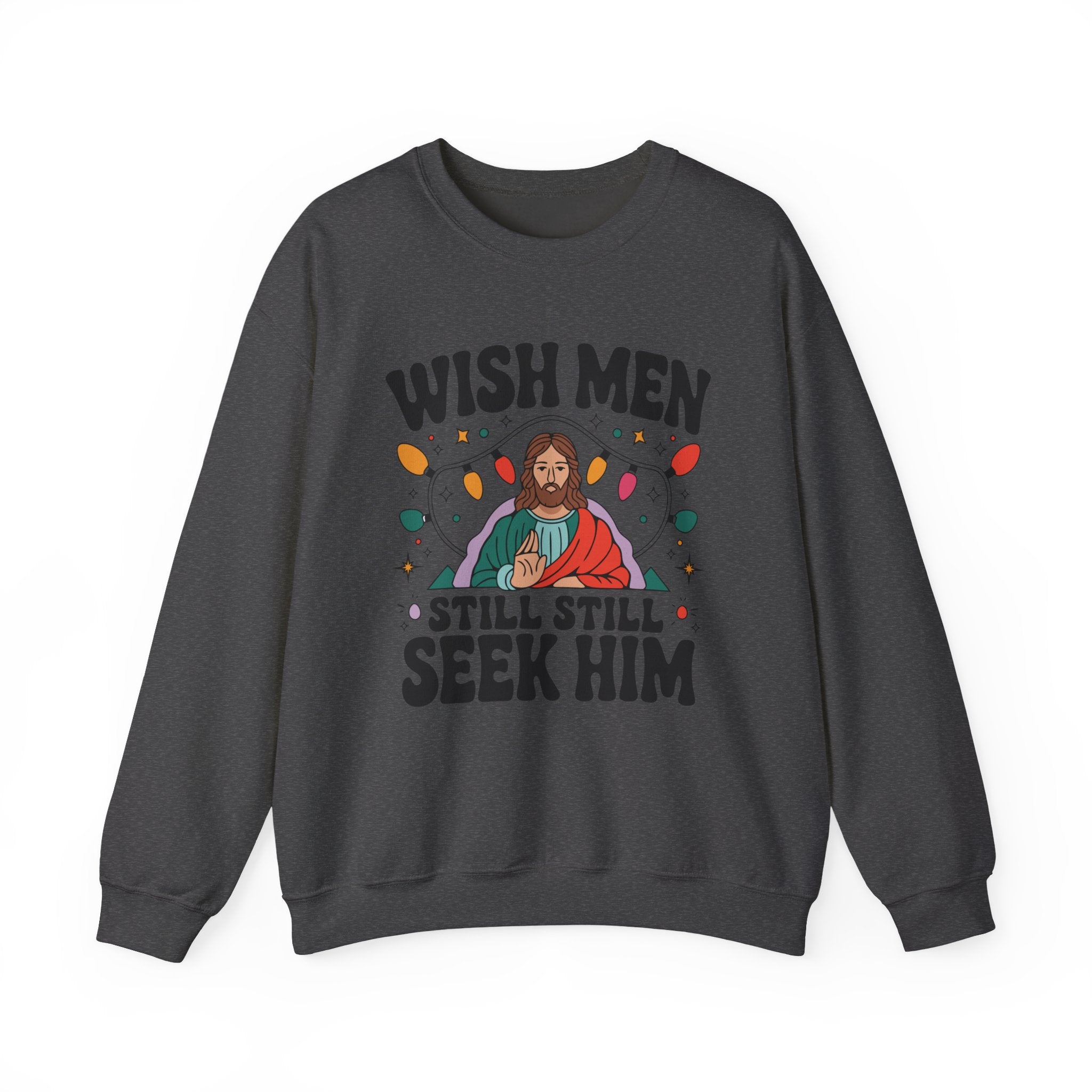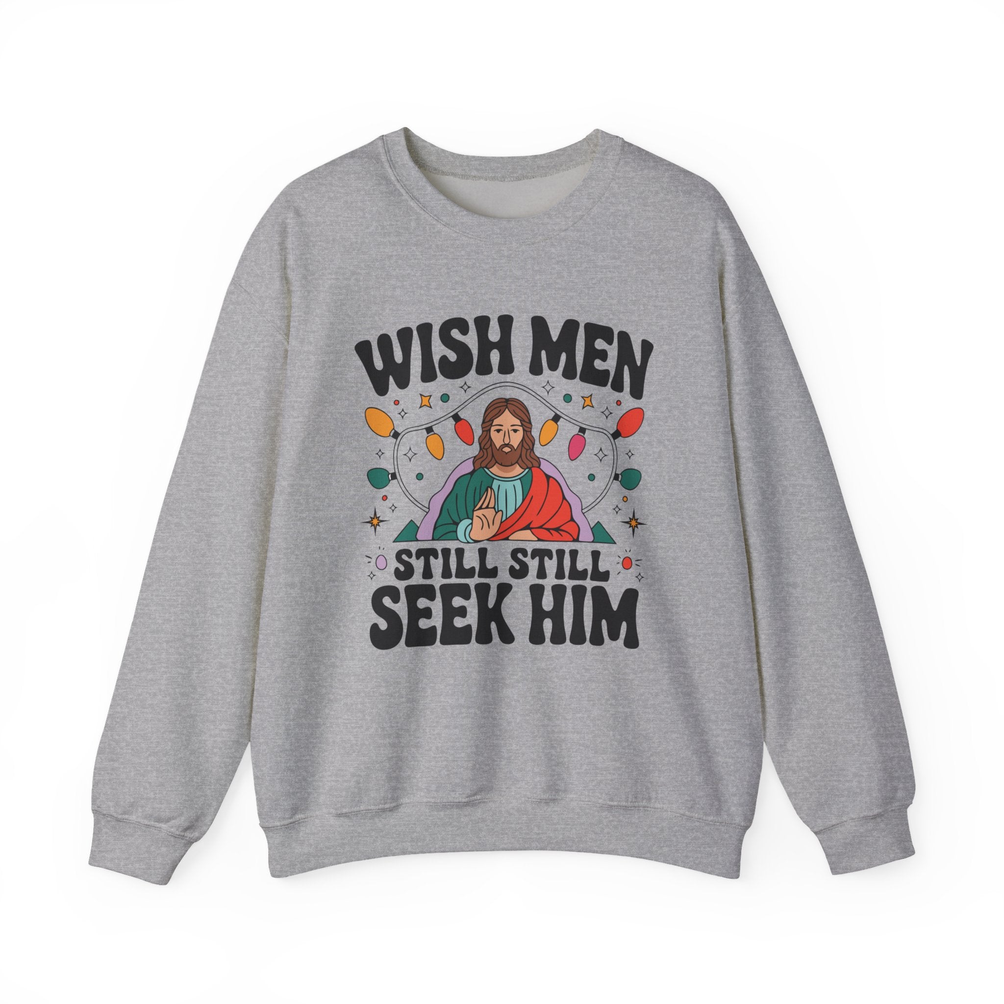 Christian Crewneck Sweatshirt - "Wish Men Still Still Seek Him" Holiday Graphic