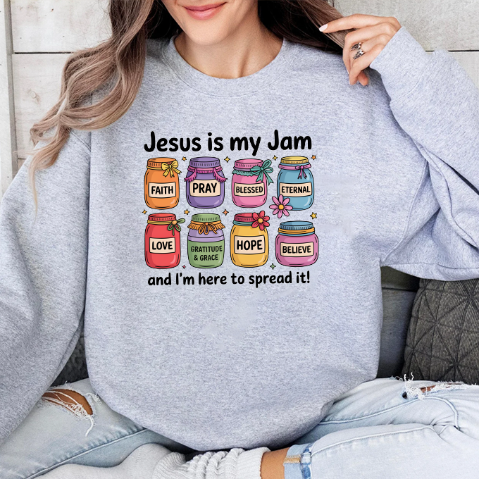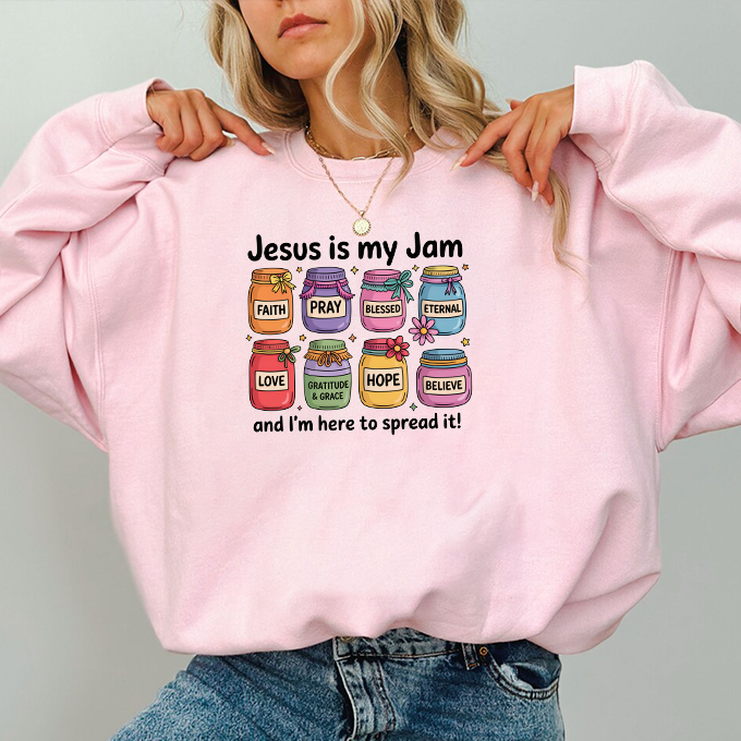 Christian Sweatshirt — "Jesus Is My Jam" Jam Jar Faith Pullover