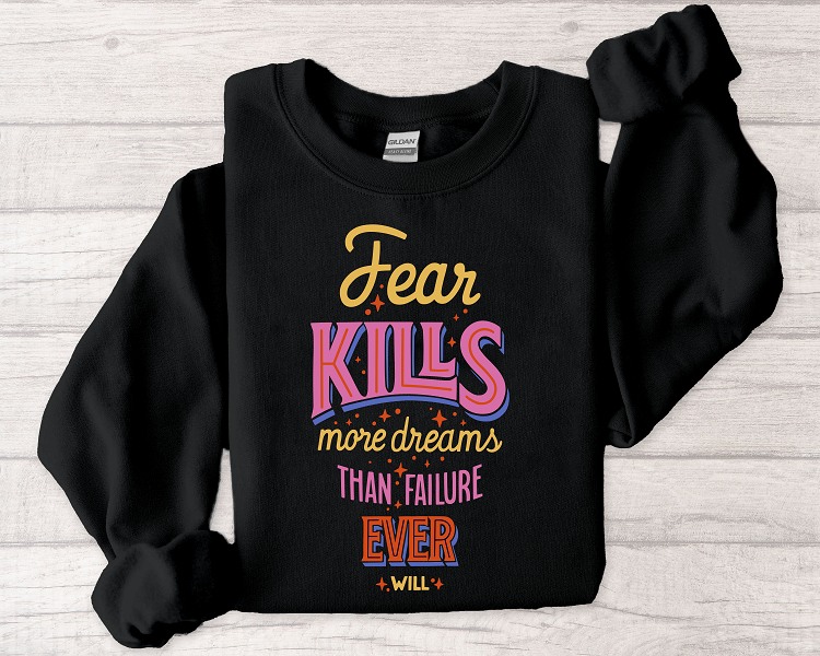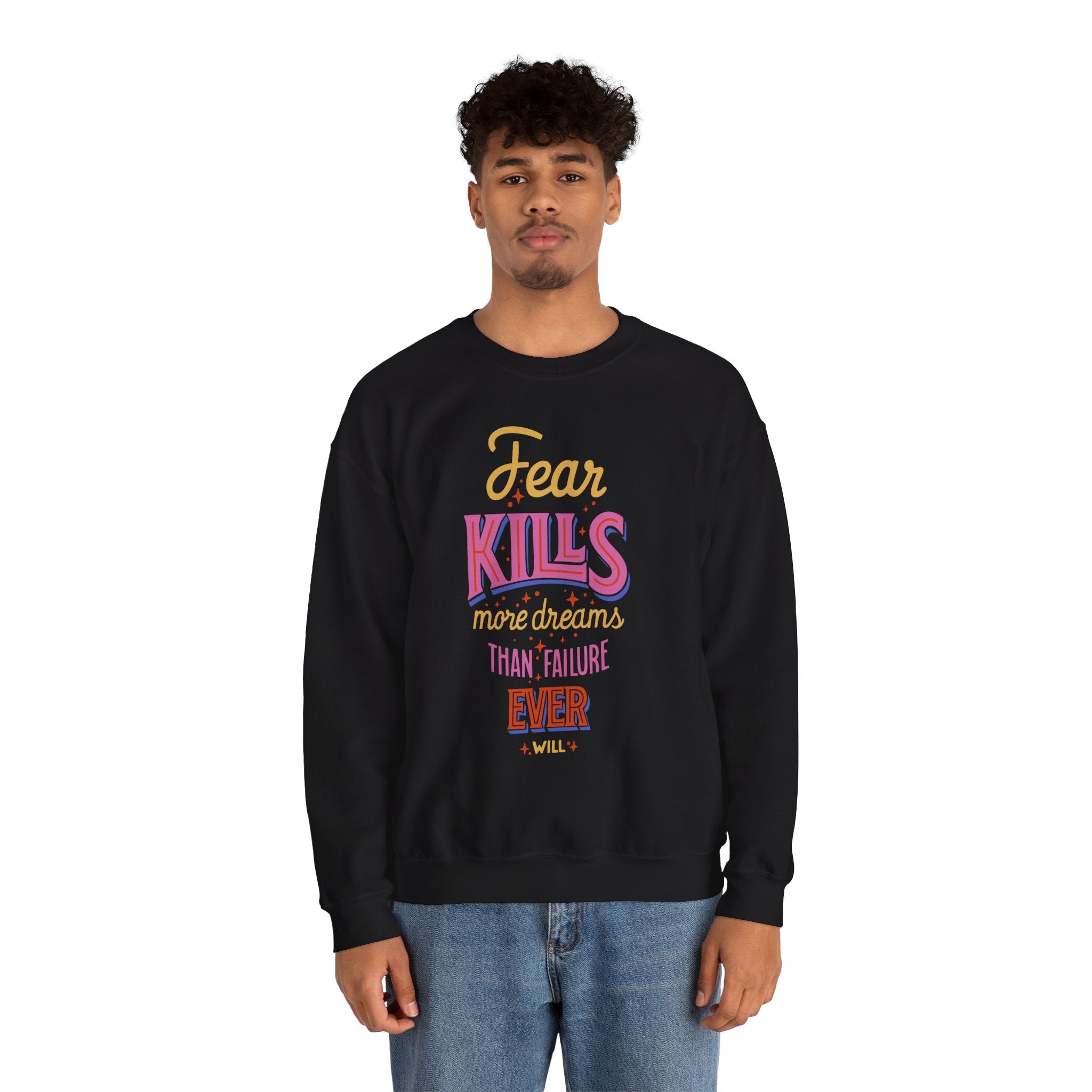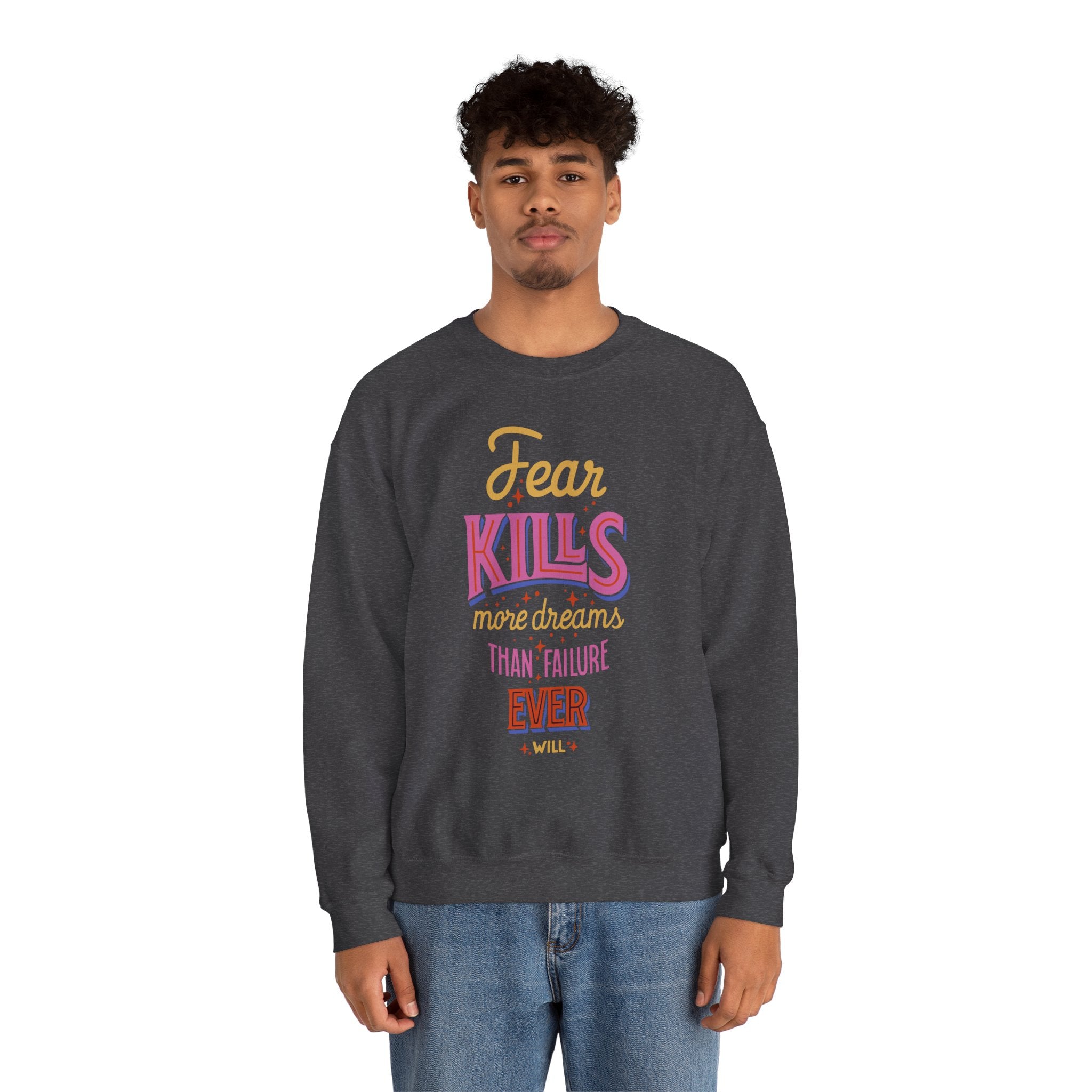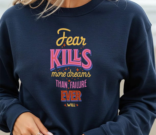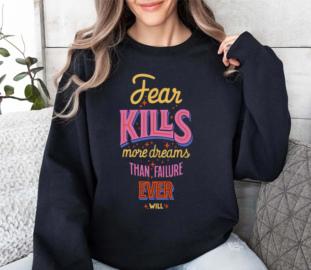 Crewneck Sweatshirt — "Fear Kills More Dreams Than Failure Ever Will" Motivational Graphic