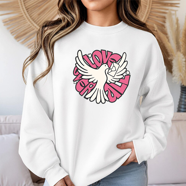 Crewneck Sweatshirt — "Love Over Violence" Dove Graphic