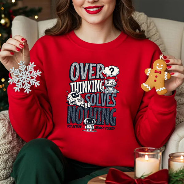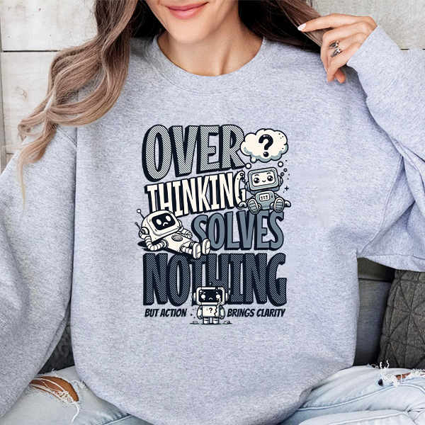 Crewneck Sweatshirt – "Overthinking Solves Nothing" Graphic Pullover