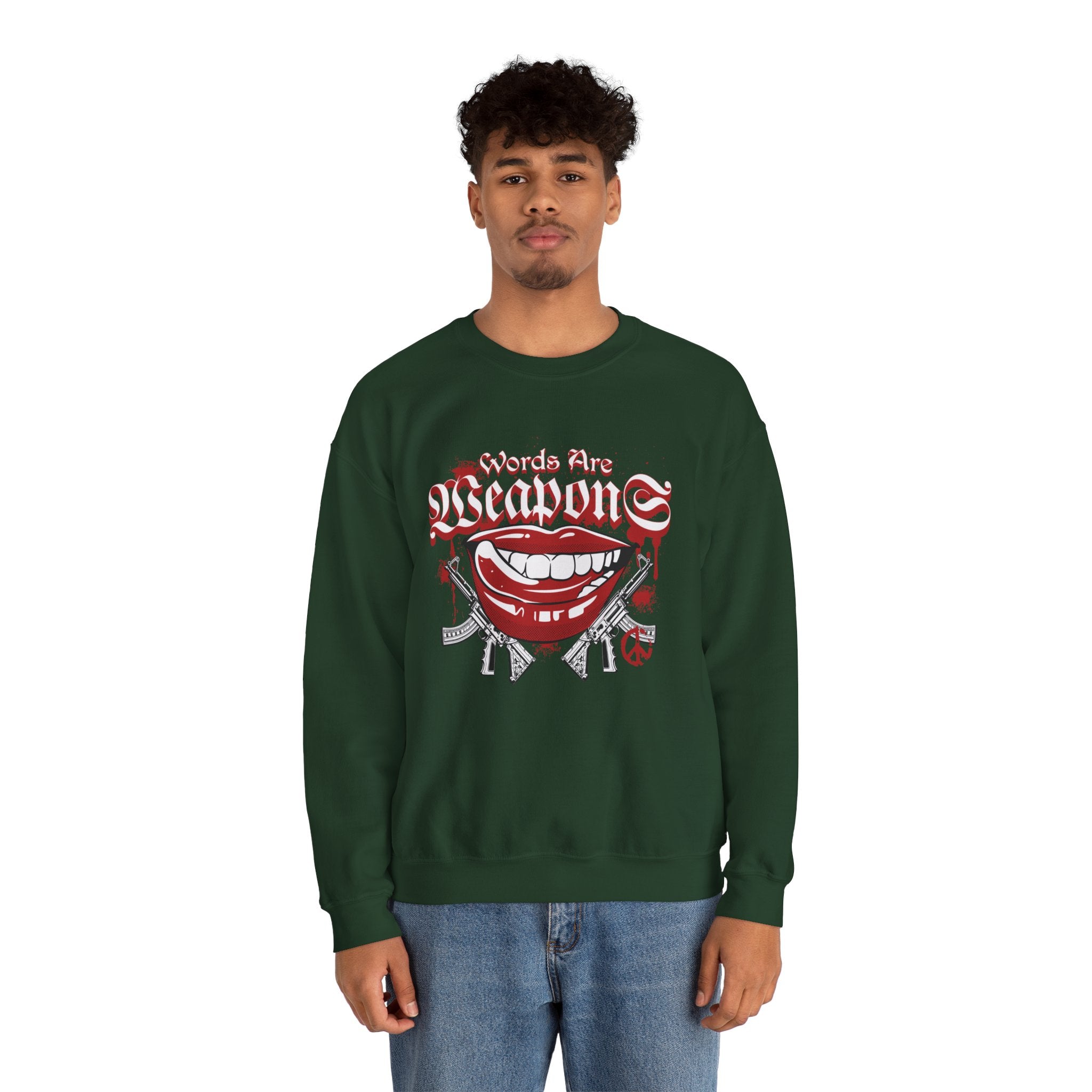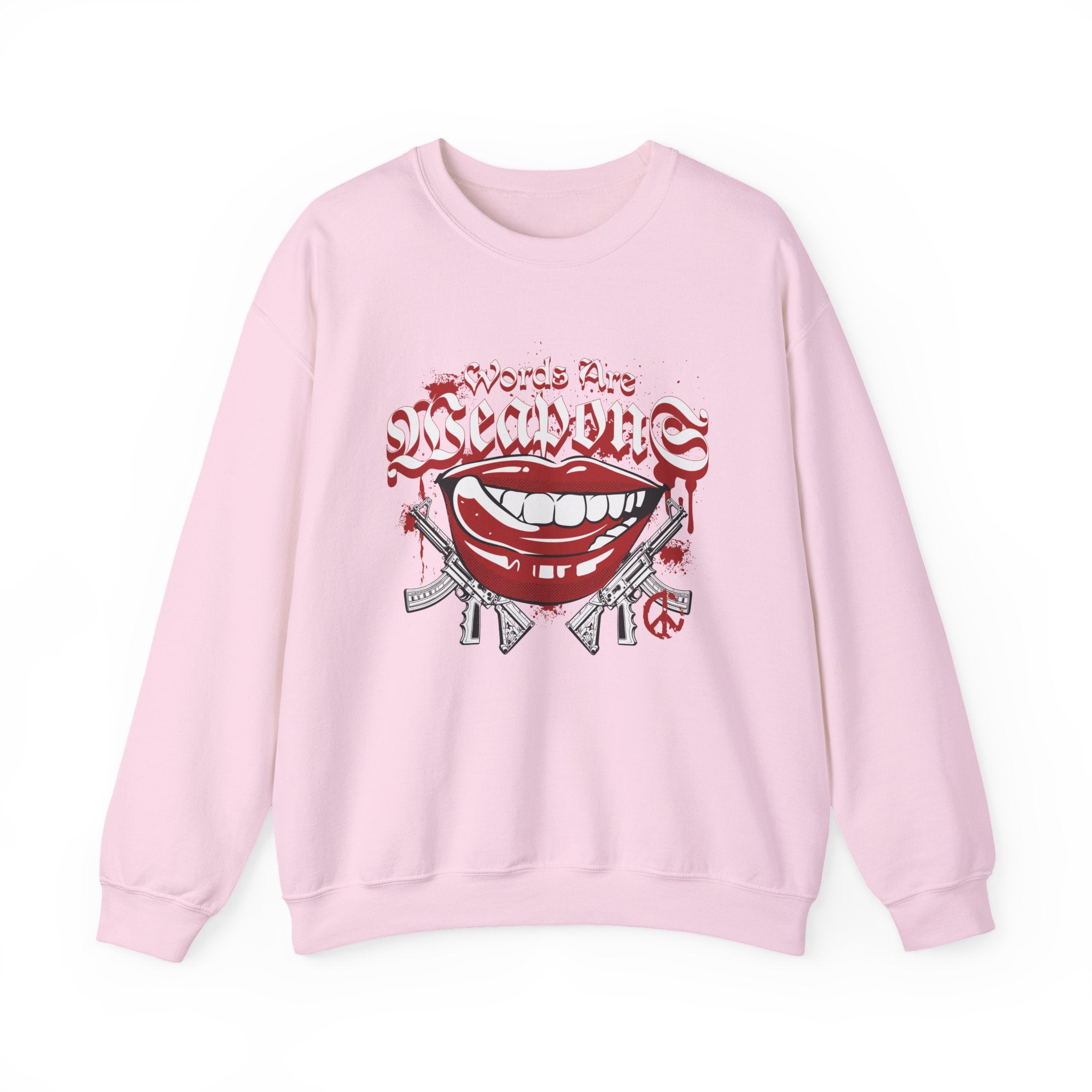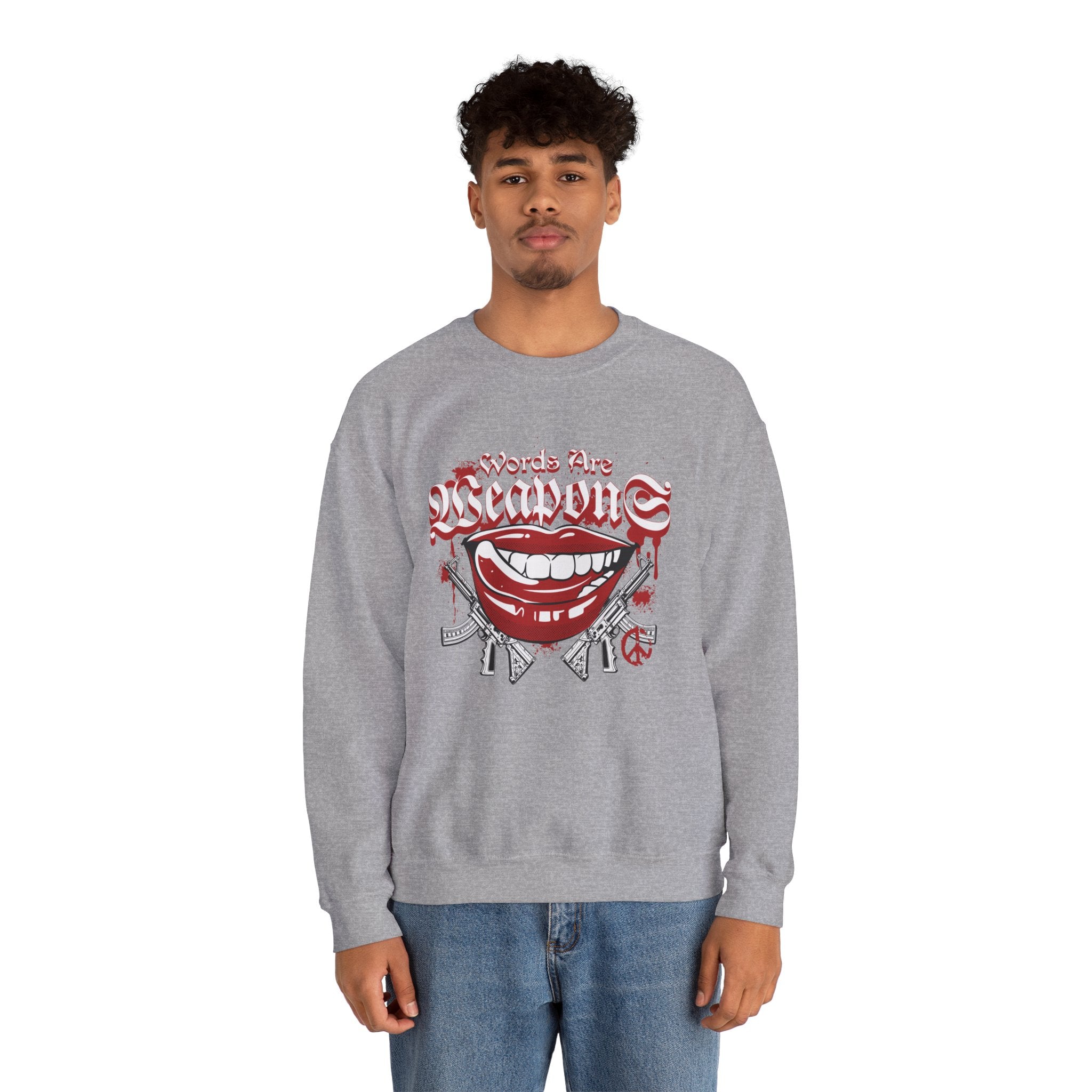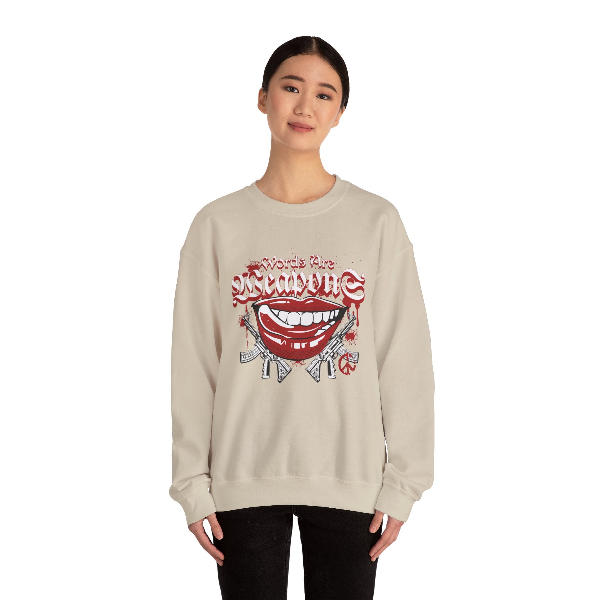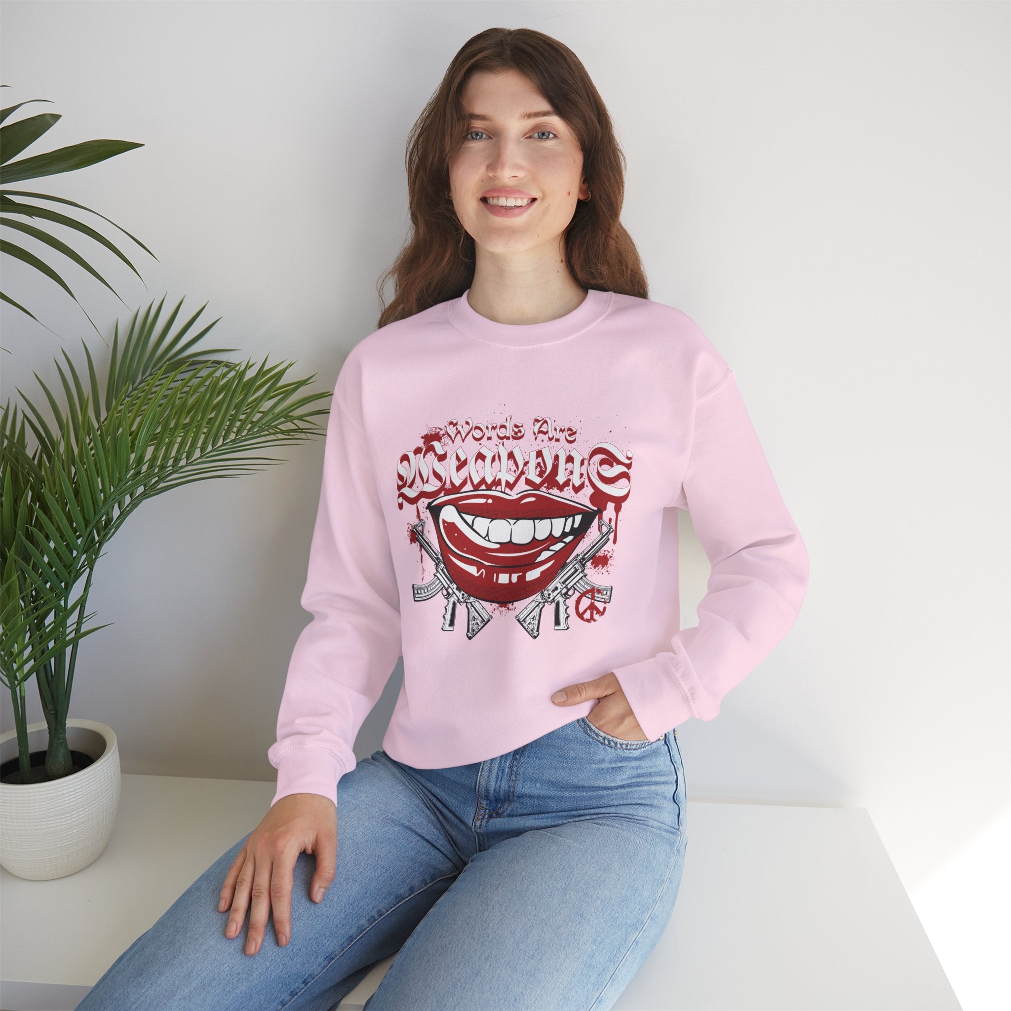 Crewneck Sweatshirt — Red Grin Graphic "Words Are" Streetwear
