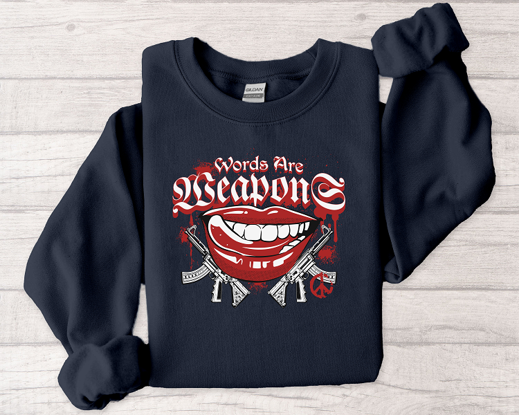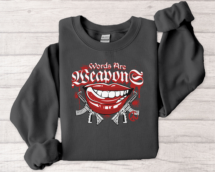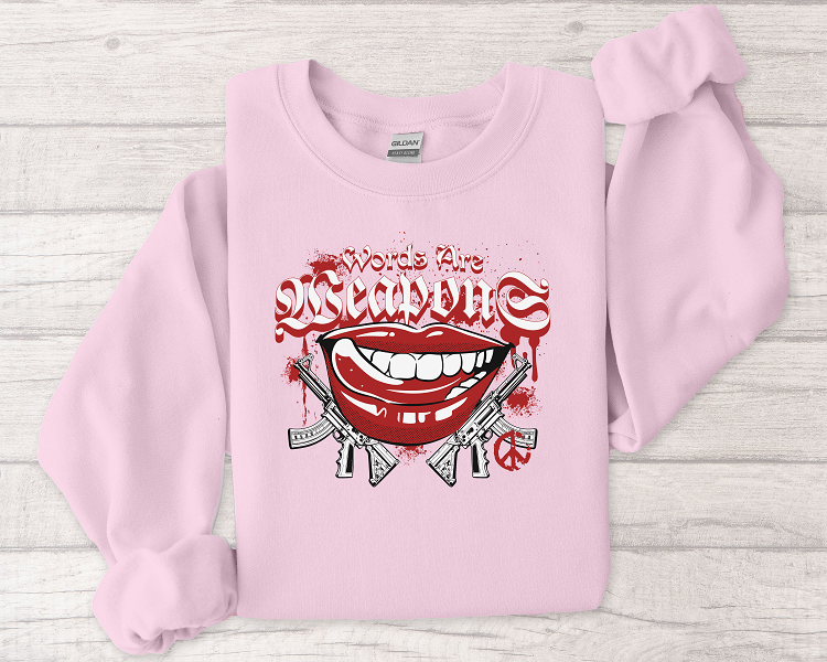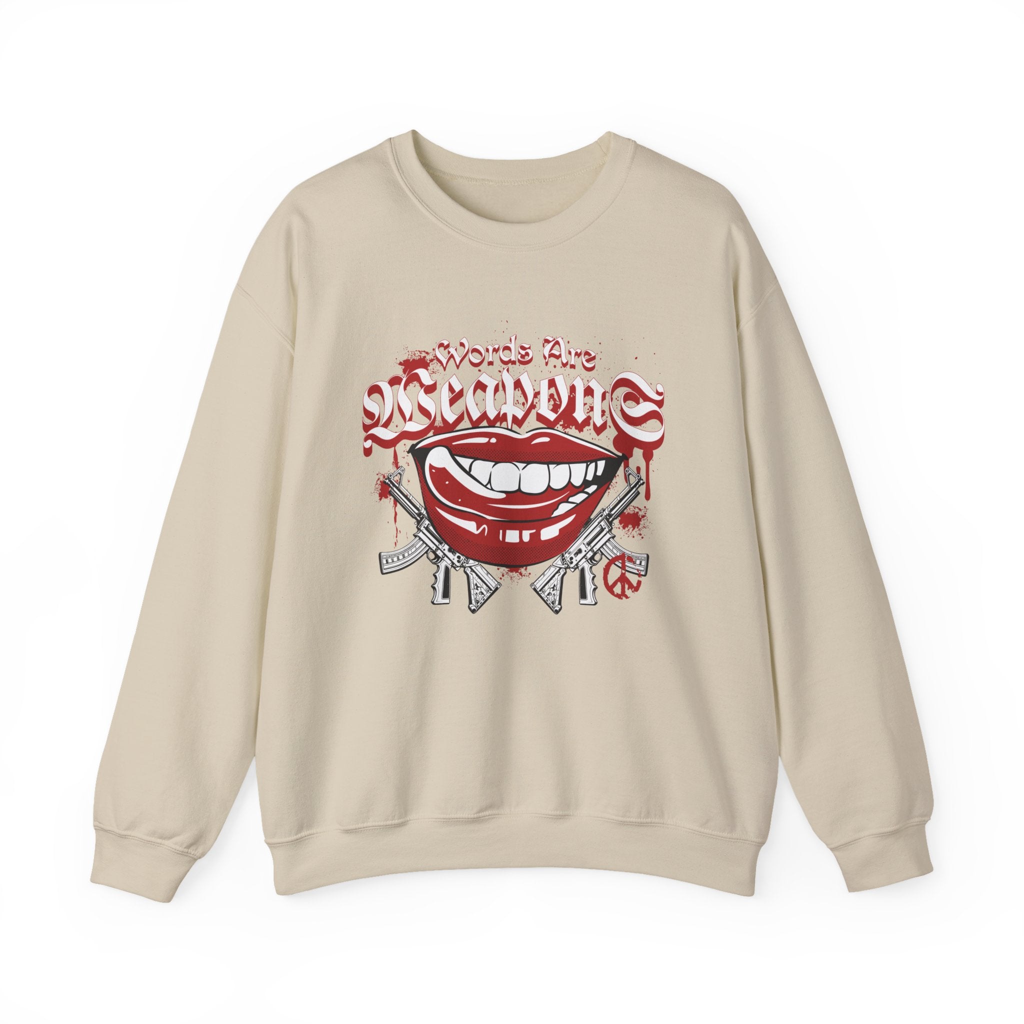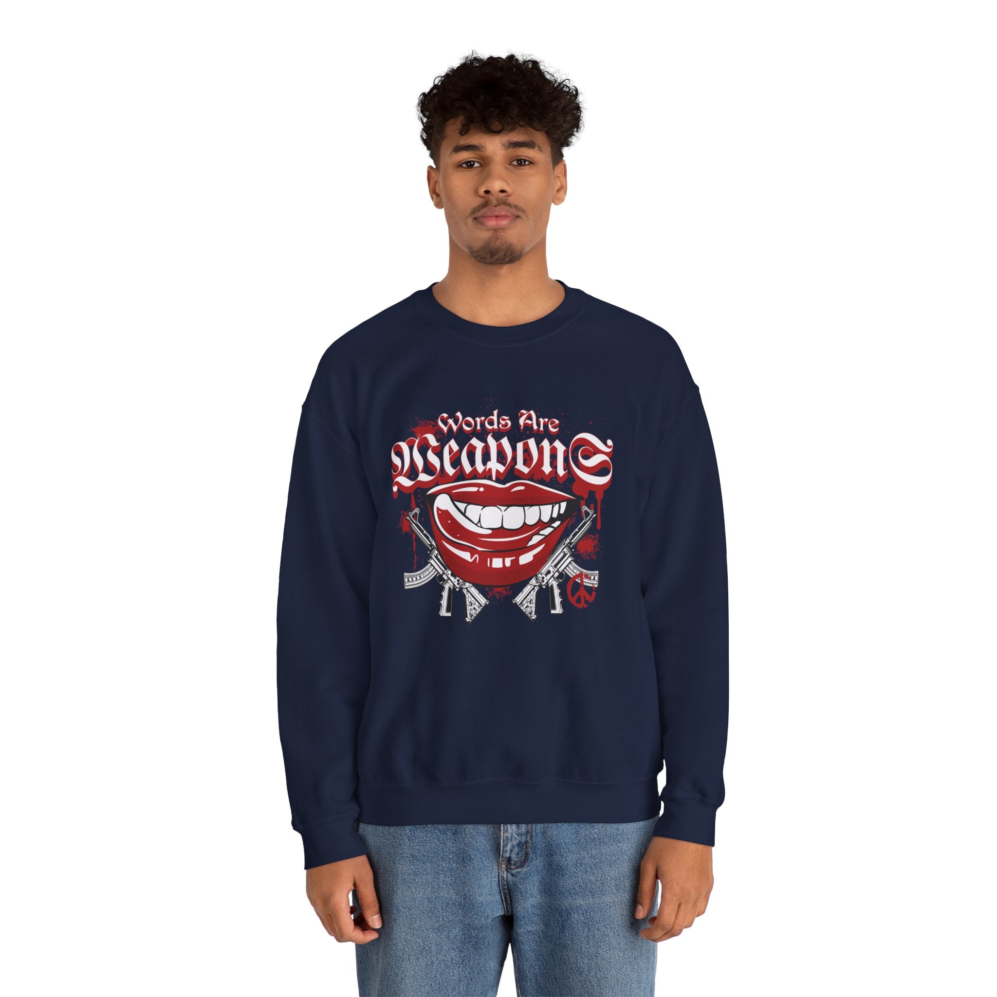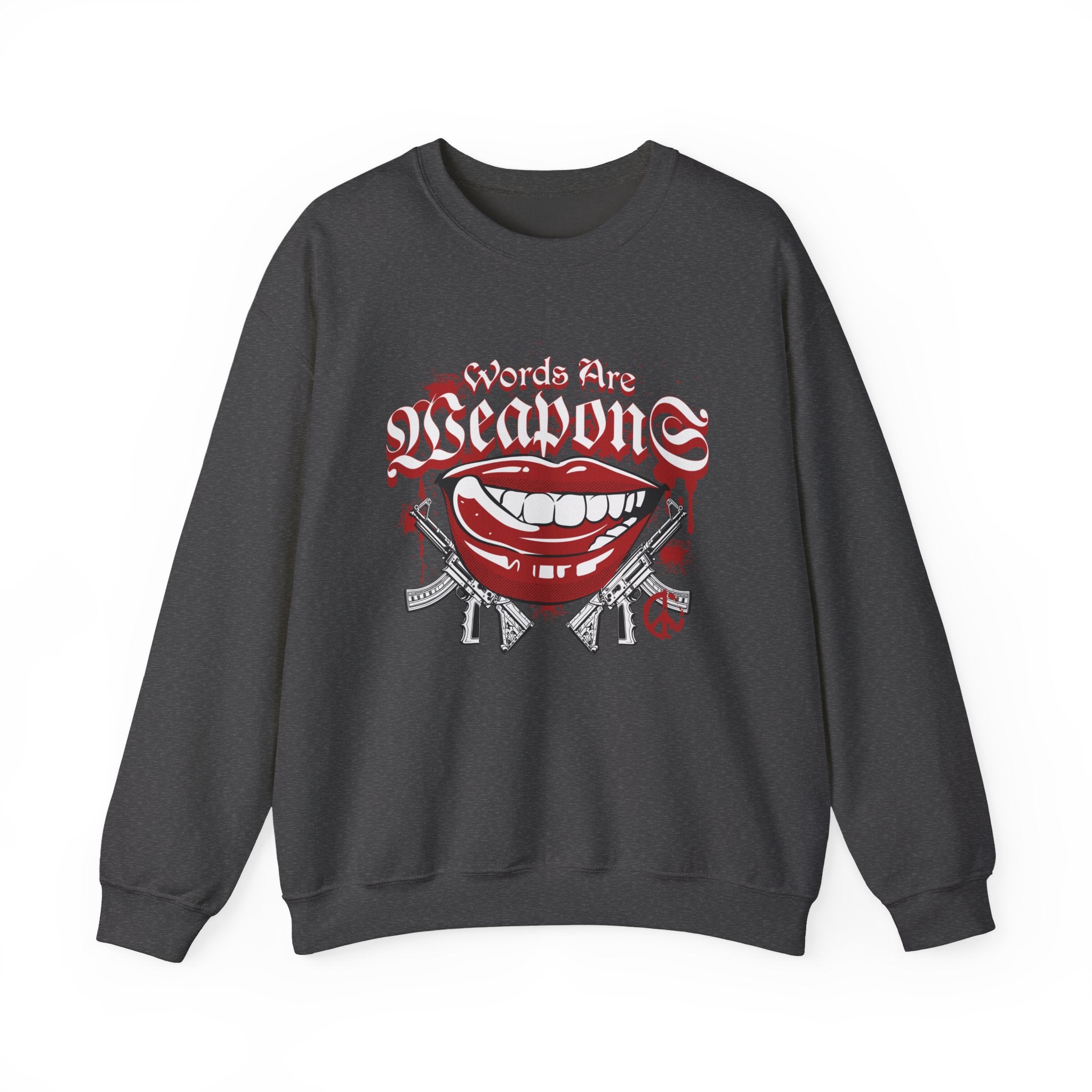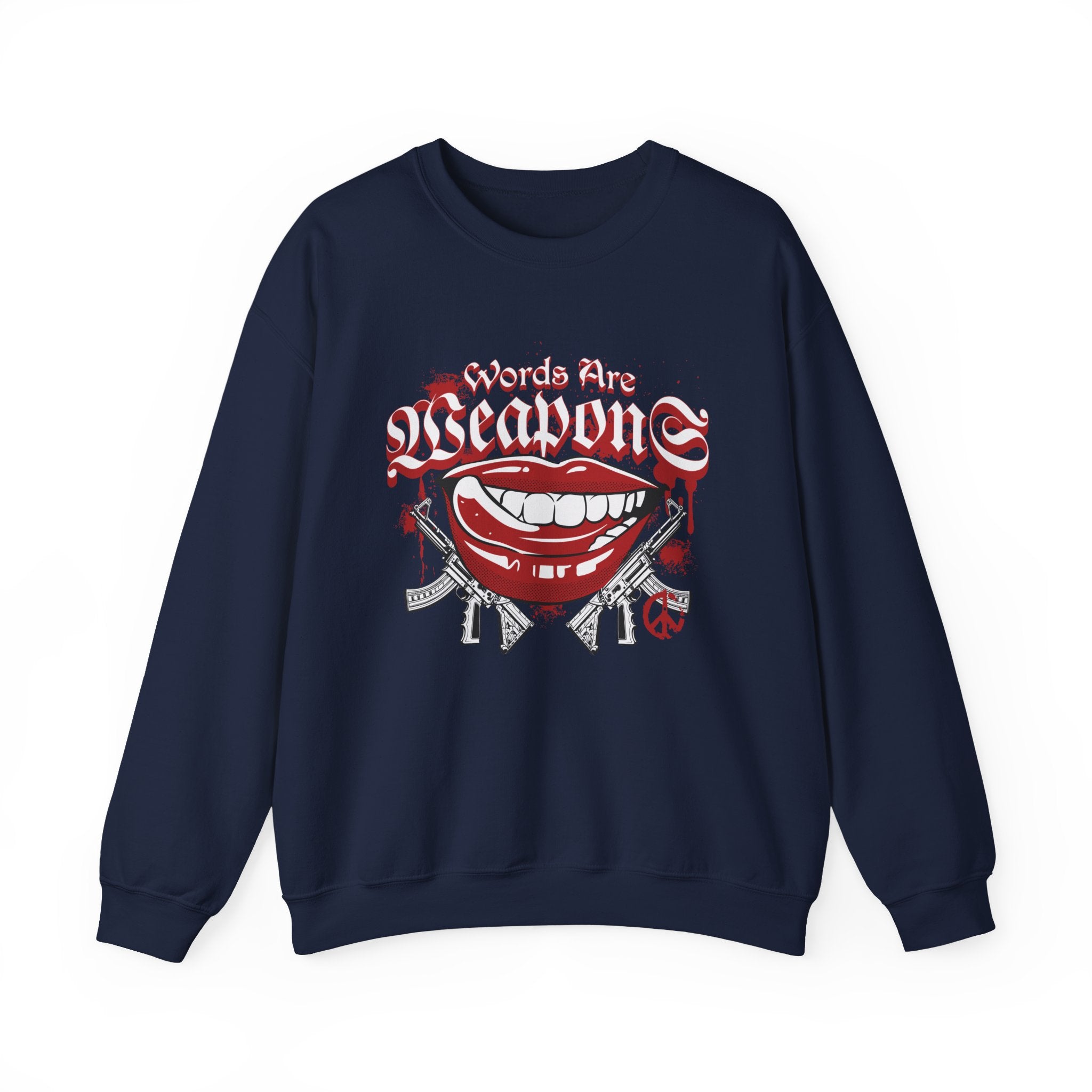 Crewneck Sweatshirt — Red Grin Graphic "Words Are" Streetwear
