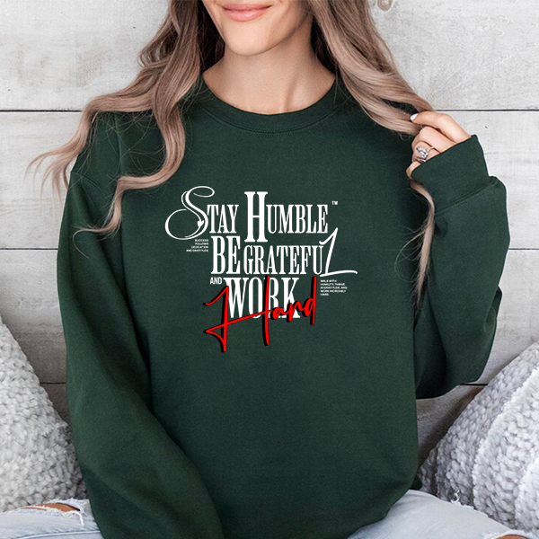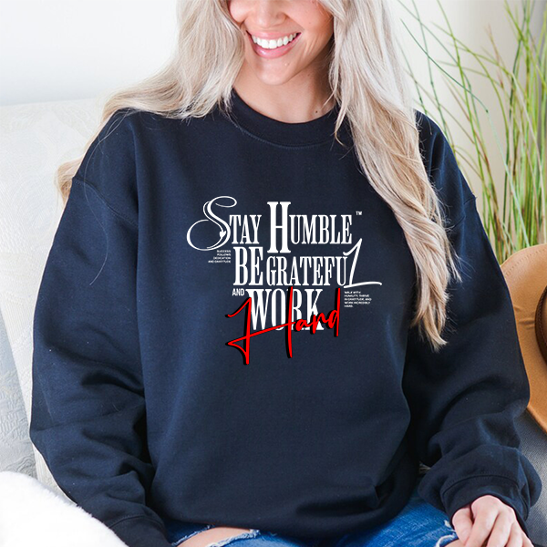 Crewneck Sweatshirt — "Stay Humble, Be Grateful & Work Hard" Motivational Crewneck