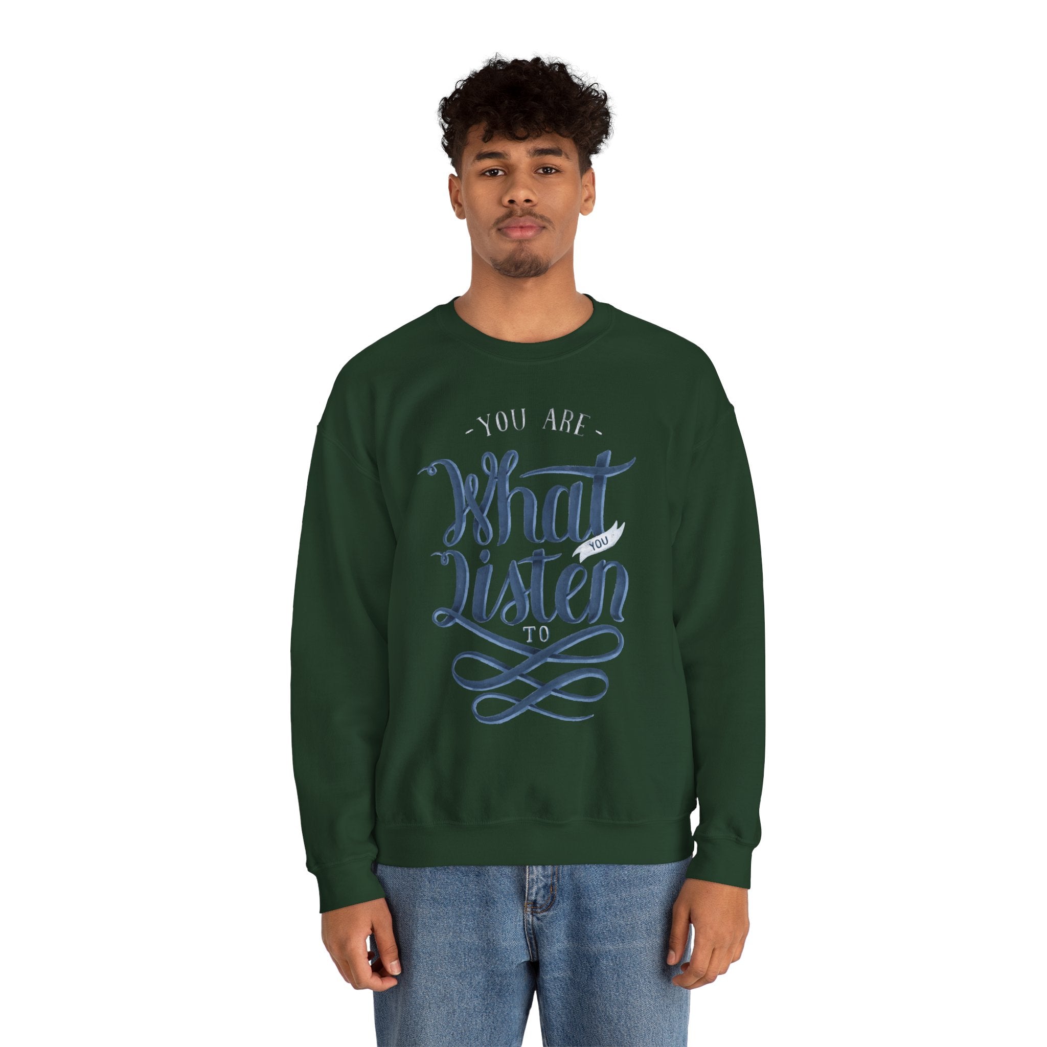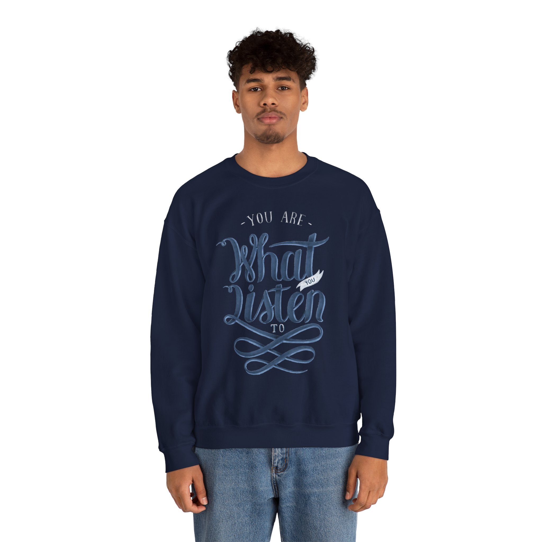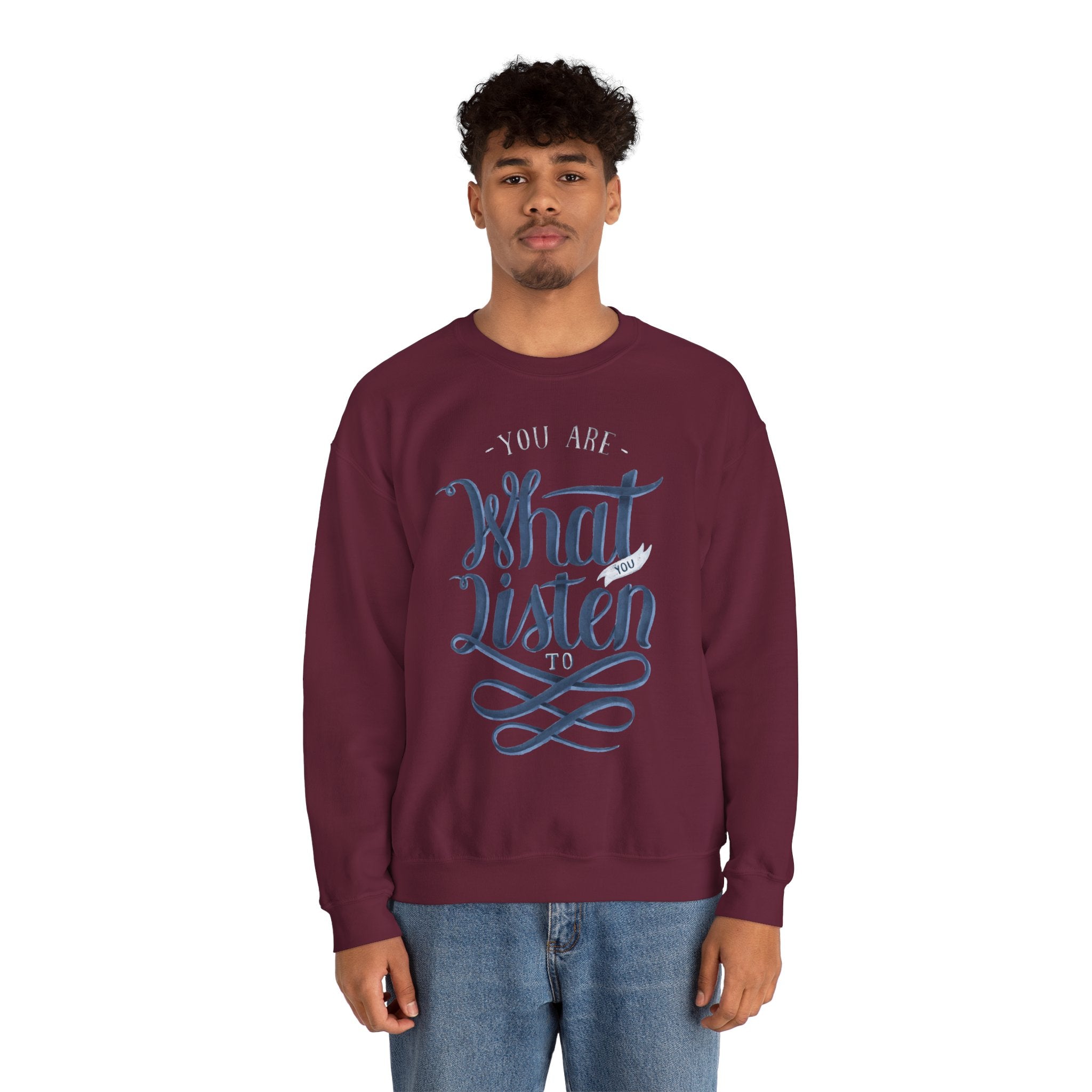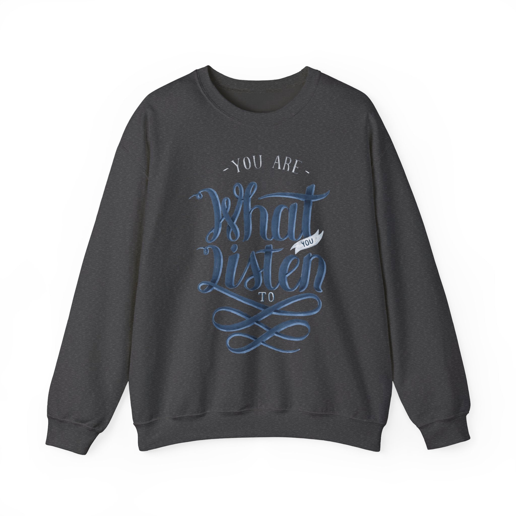 Crewneck Sweatshirt - "You Are What You Listen To" Music Quote Graphic