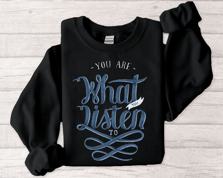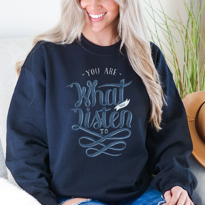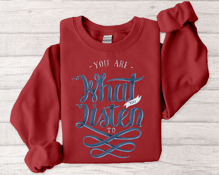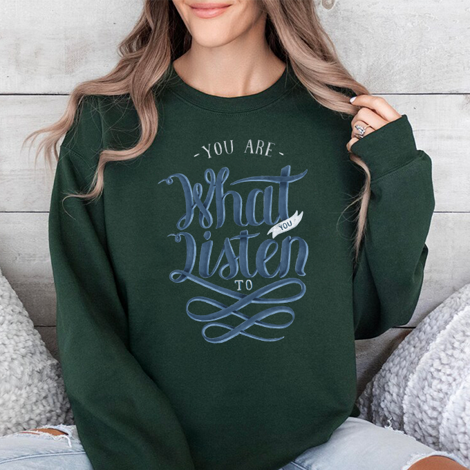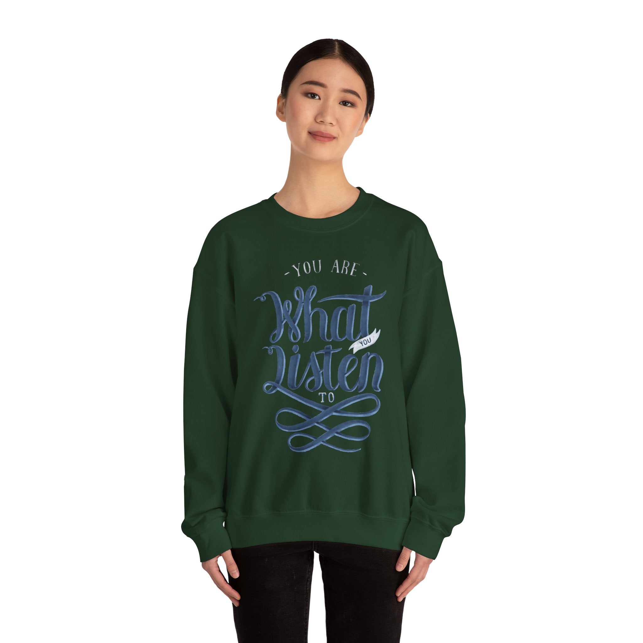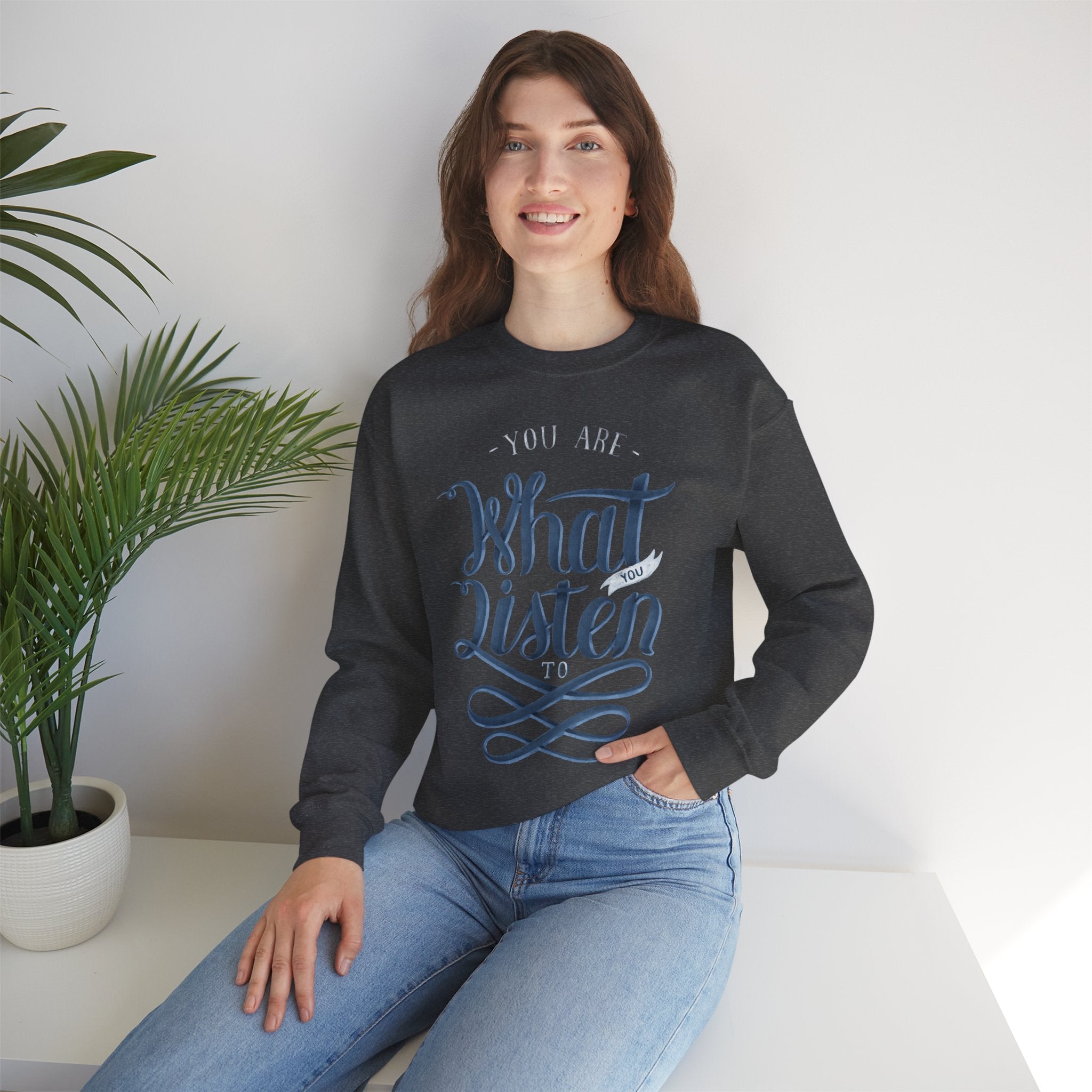Crewneck Sweatshirt - "You Are What You Listen To" Music Quote Graphic