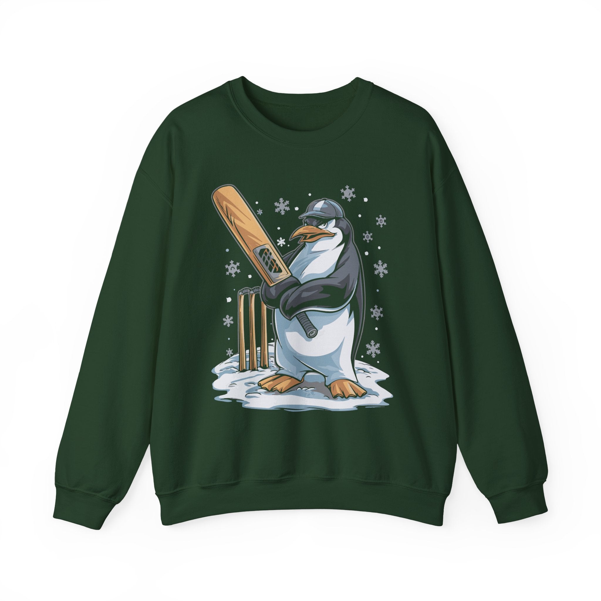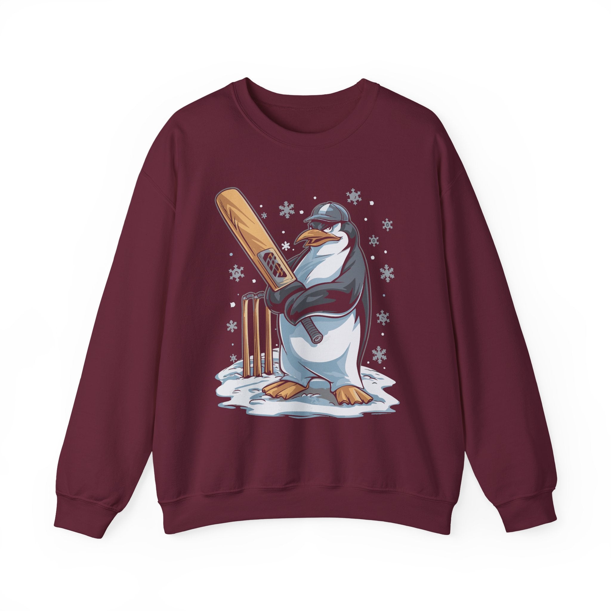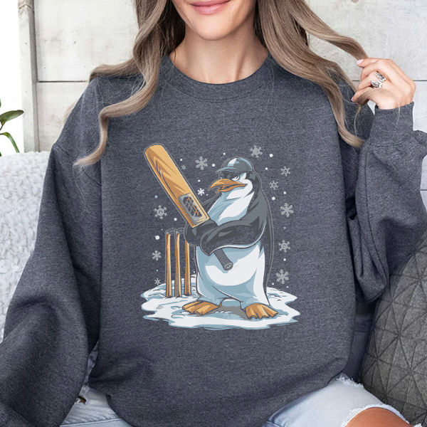 Cricket Penguin Crewneck Sweatshirt – Cute Winter Sports Design