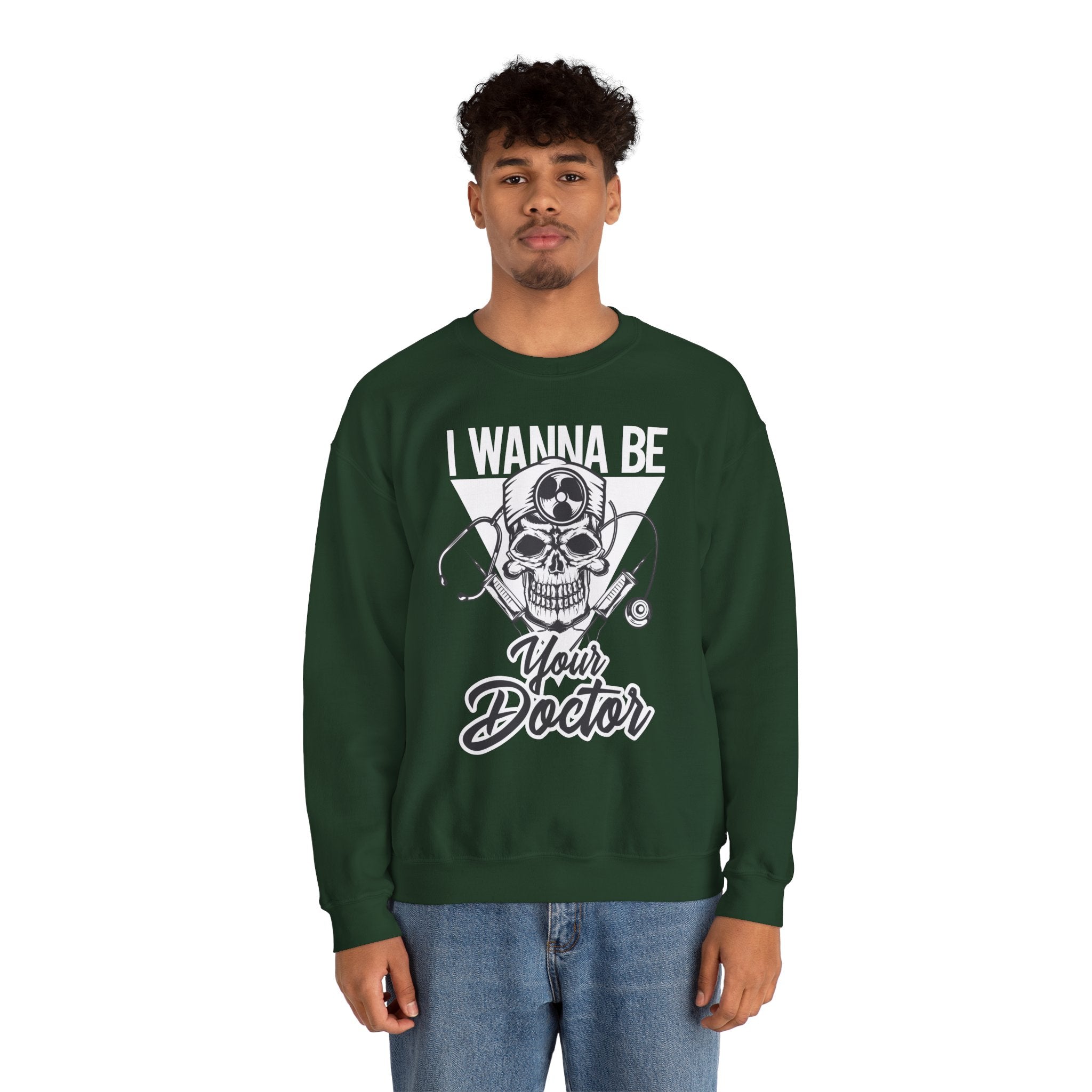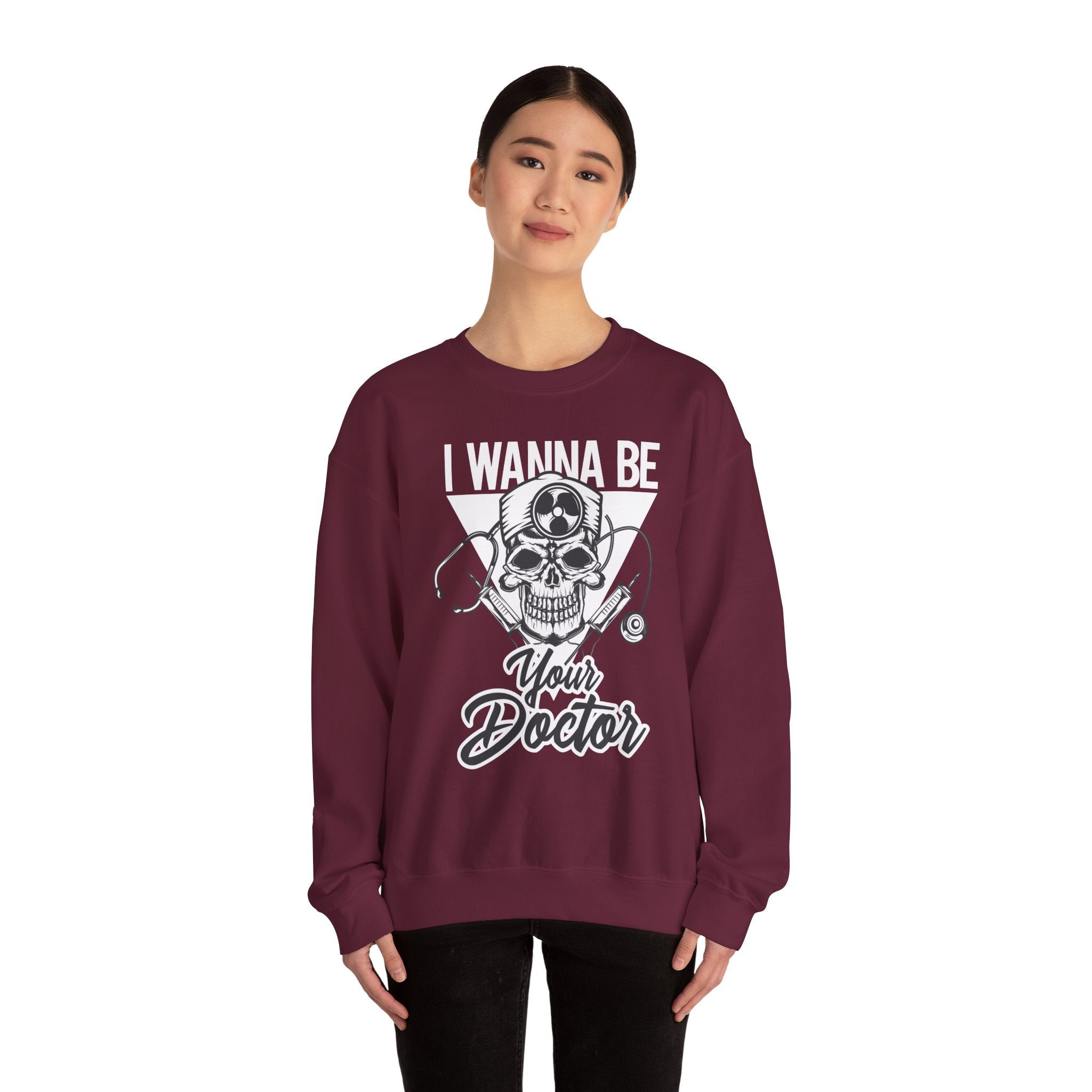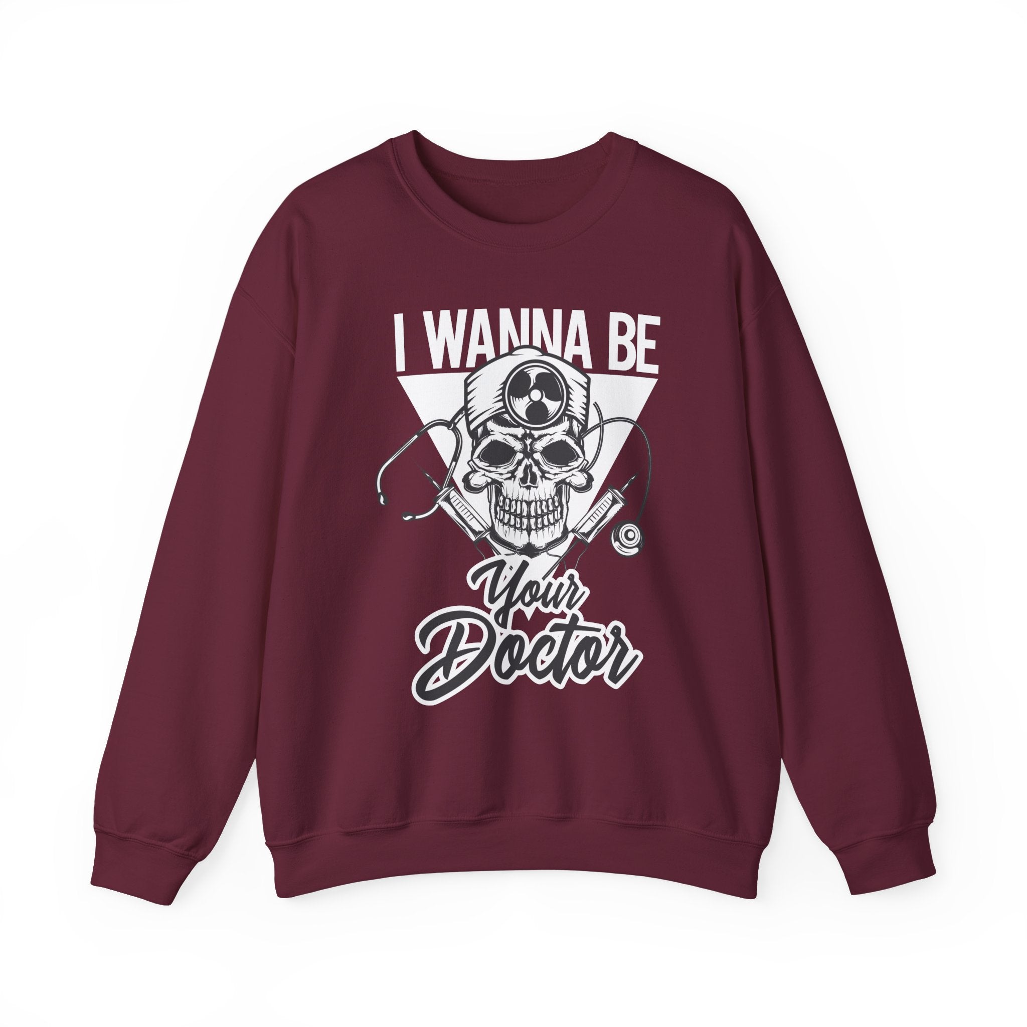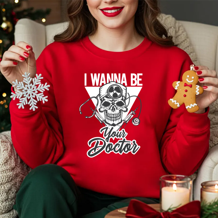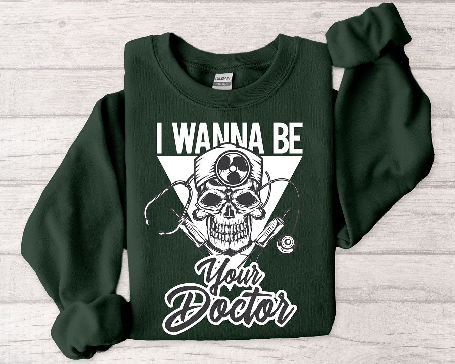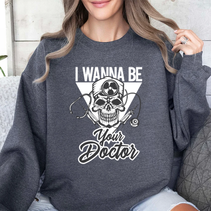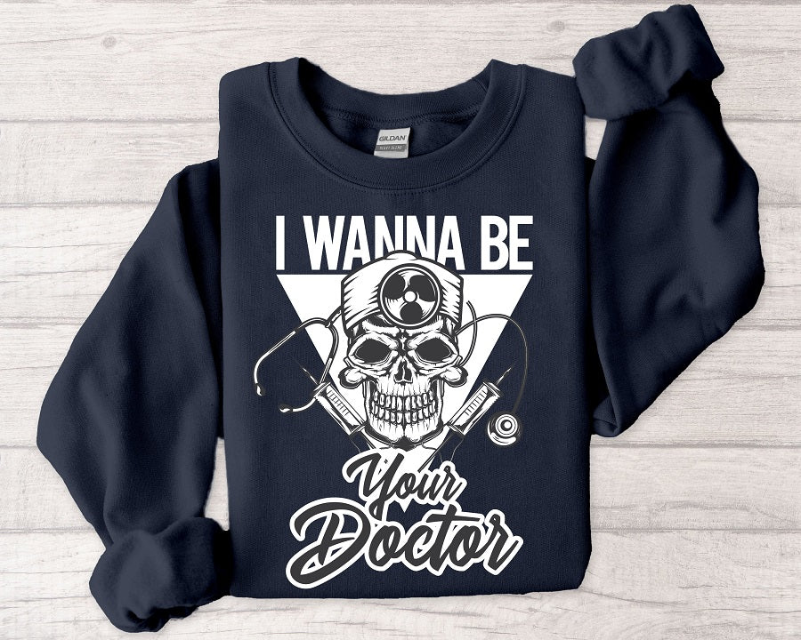 Doctor Skull Crewneck Sweatshirt — "I Wanna Be Your Doctor" Graphic