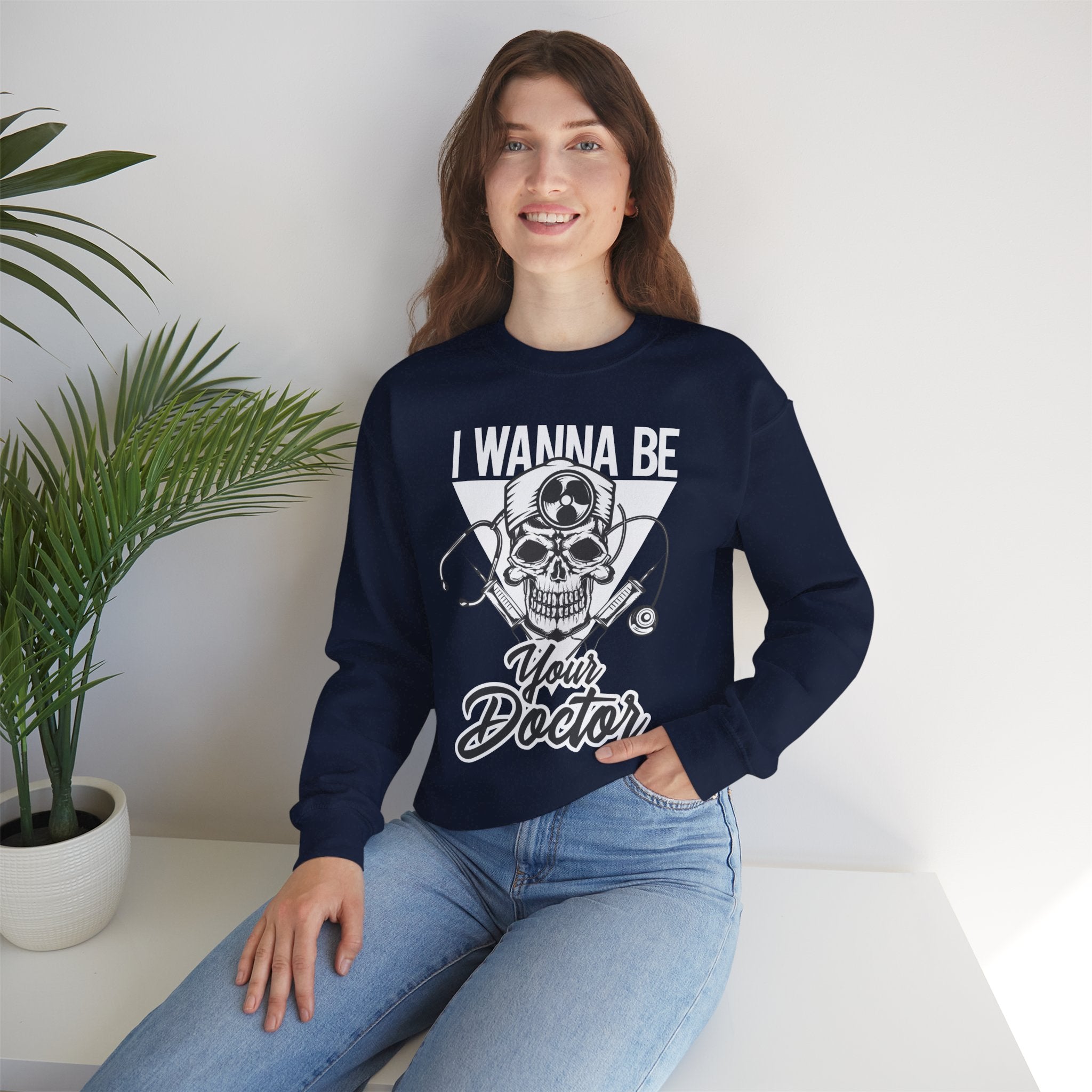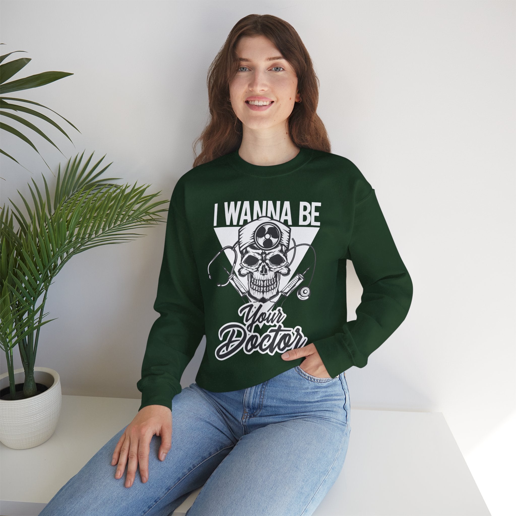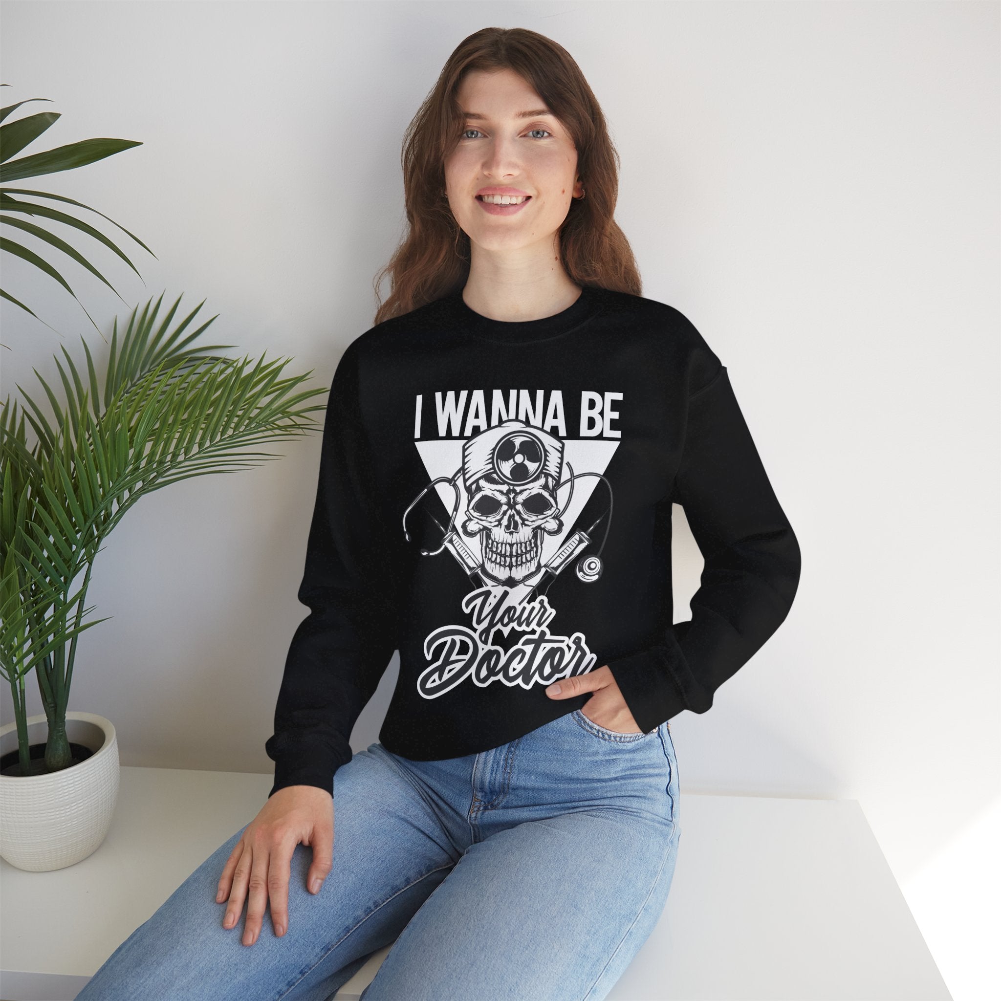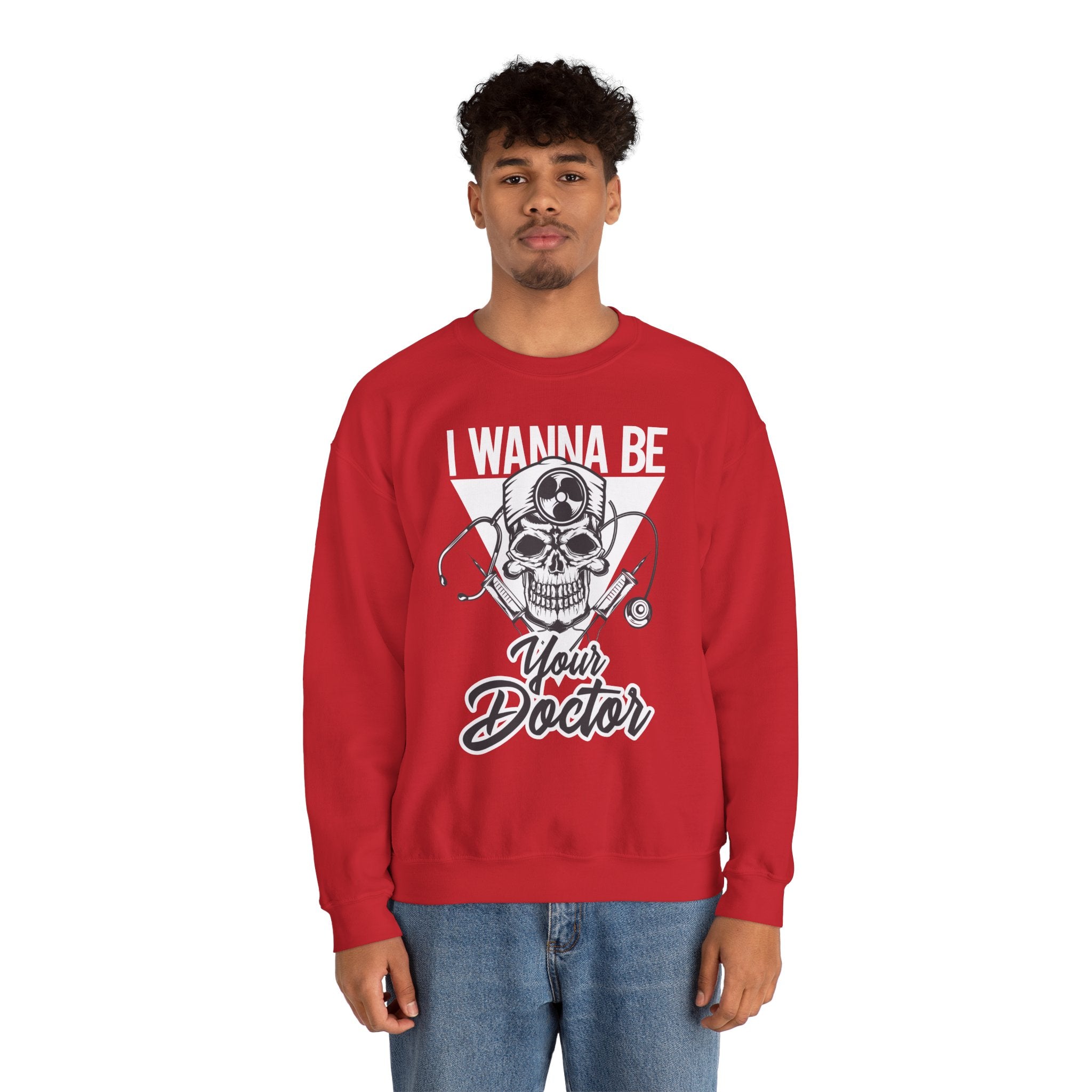 Doctor Skull Crewneck Sweatshirt — "I Wanna Be Your Doctor" Graphic