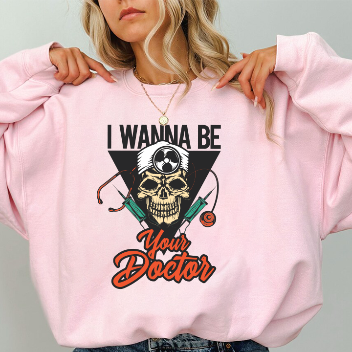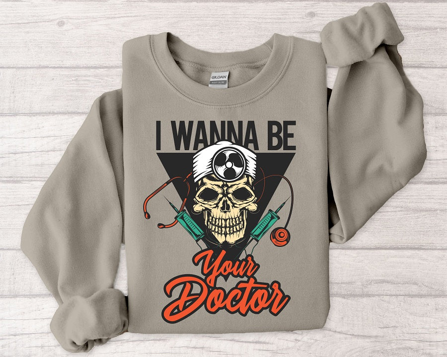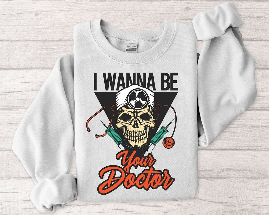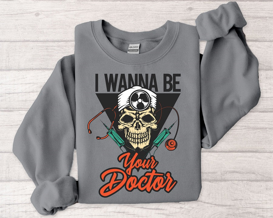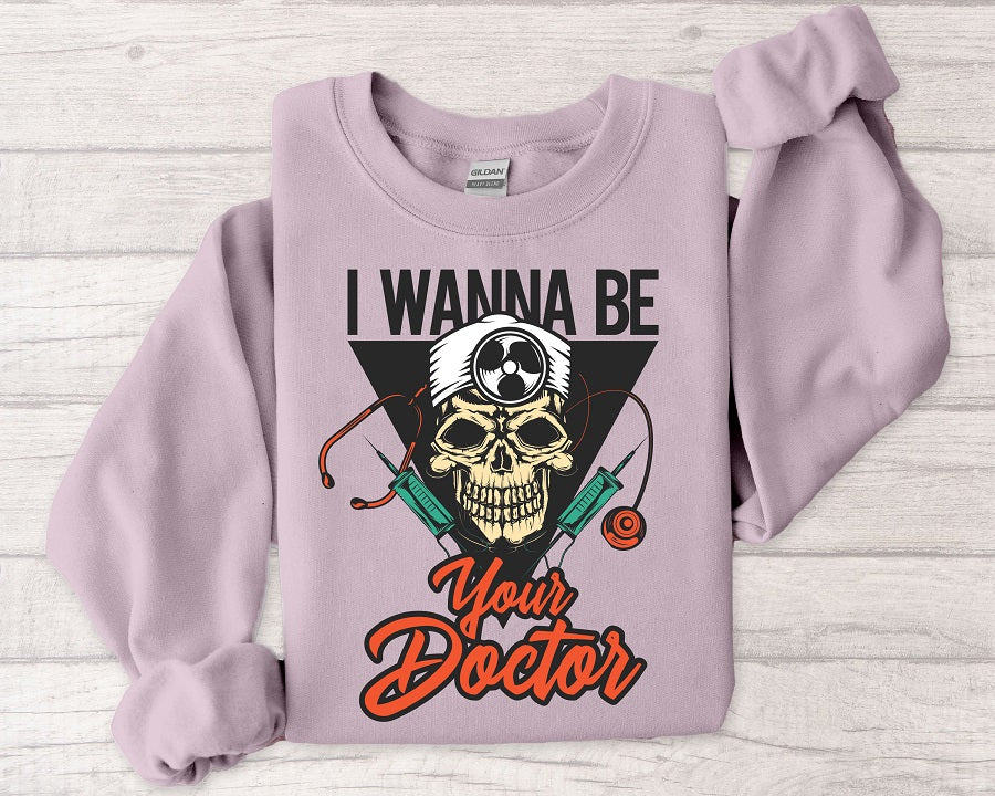 Doctor Skull Sweatshirt — "I Wanna Be Your Doctor" Medical Graphic Crewneck