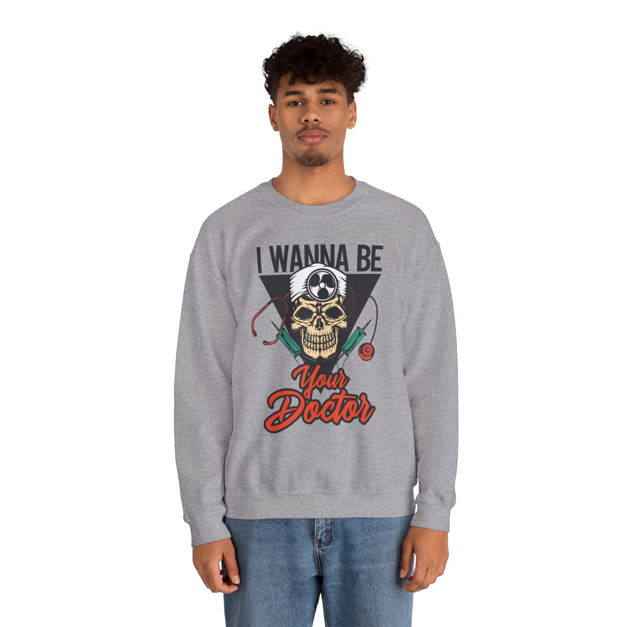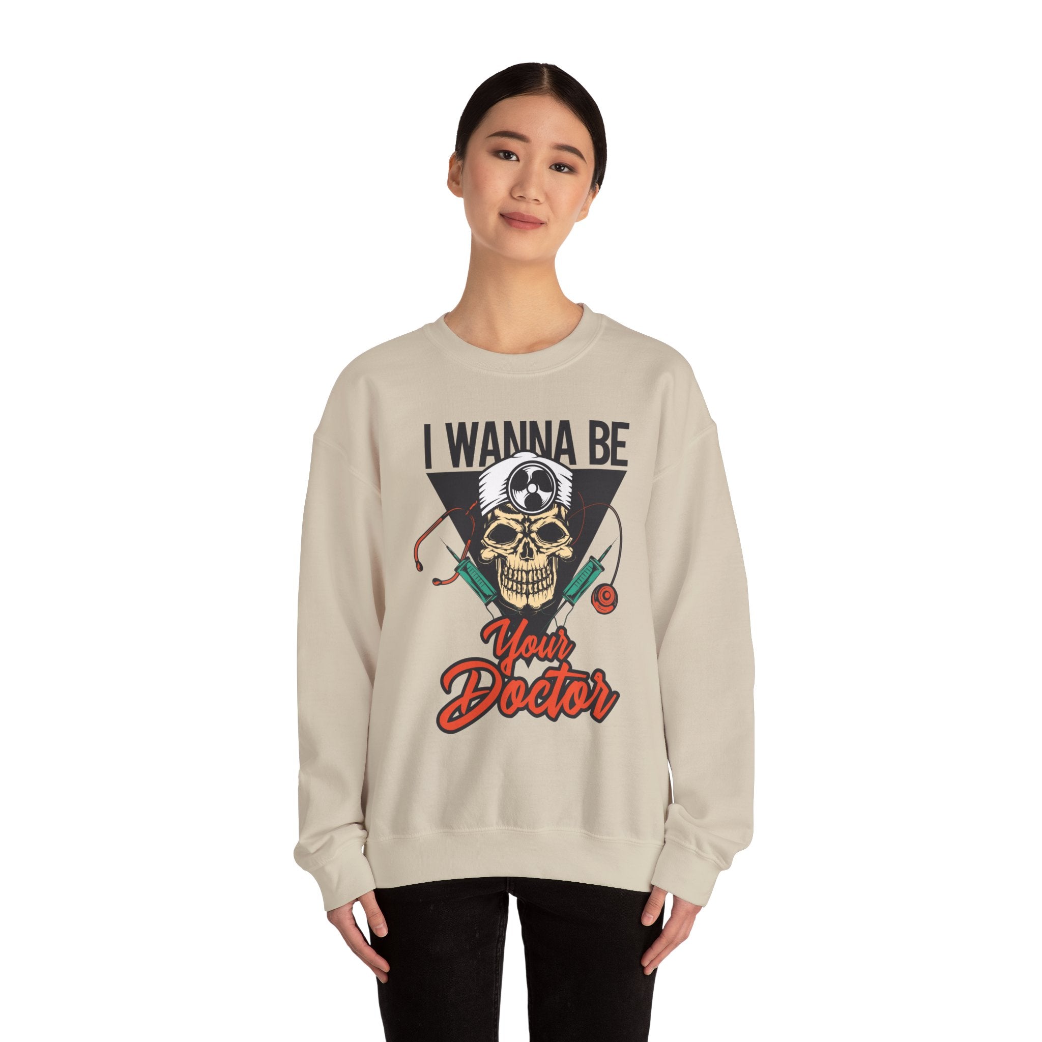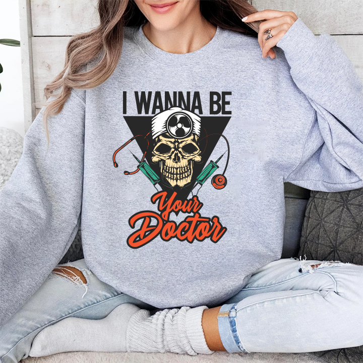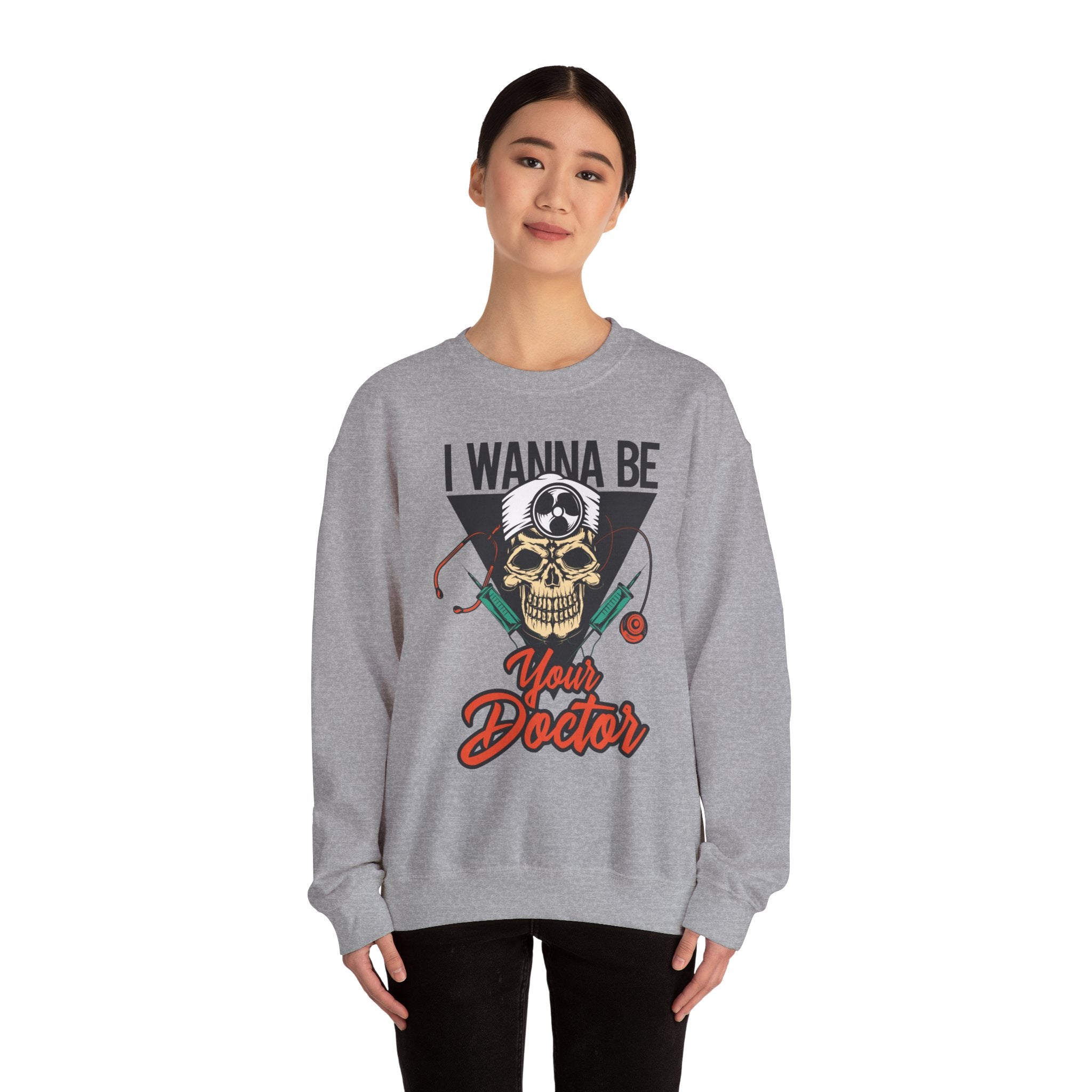 Doctor Skull Sweatshirt — "I Wanna Be Your Doctor" Medical Graphic Crewneck