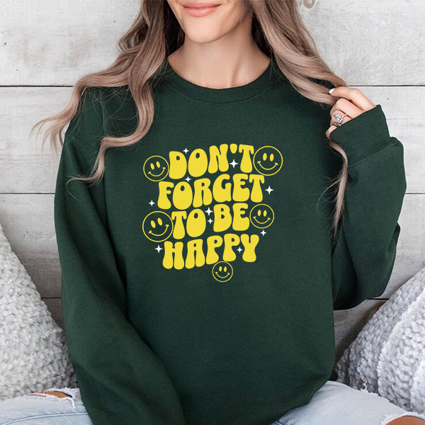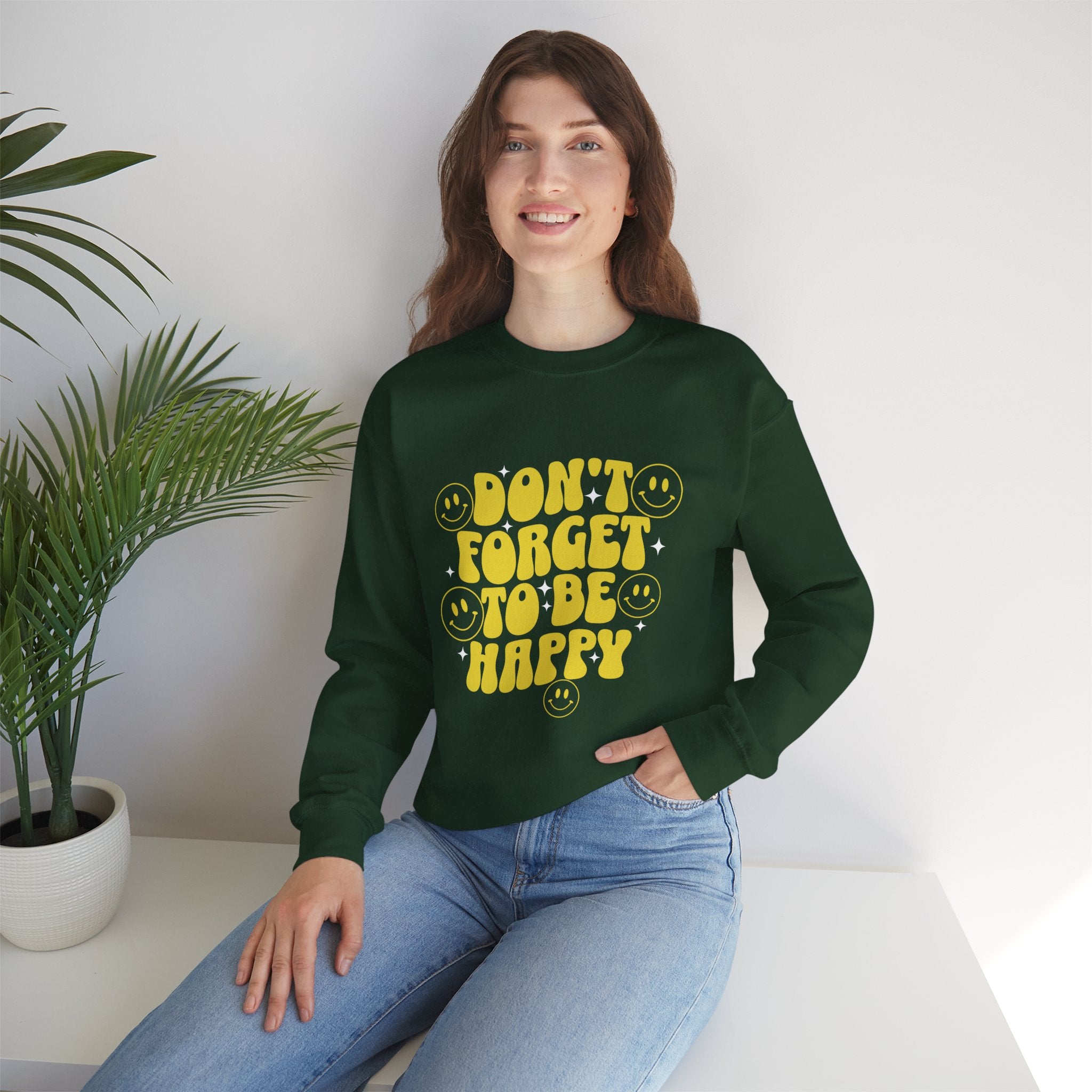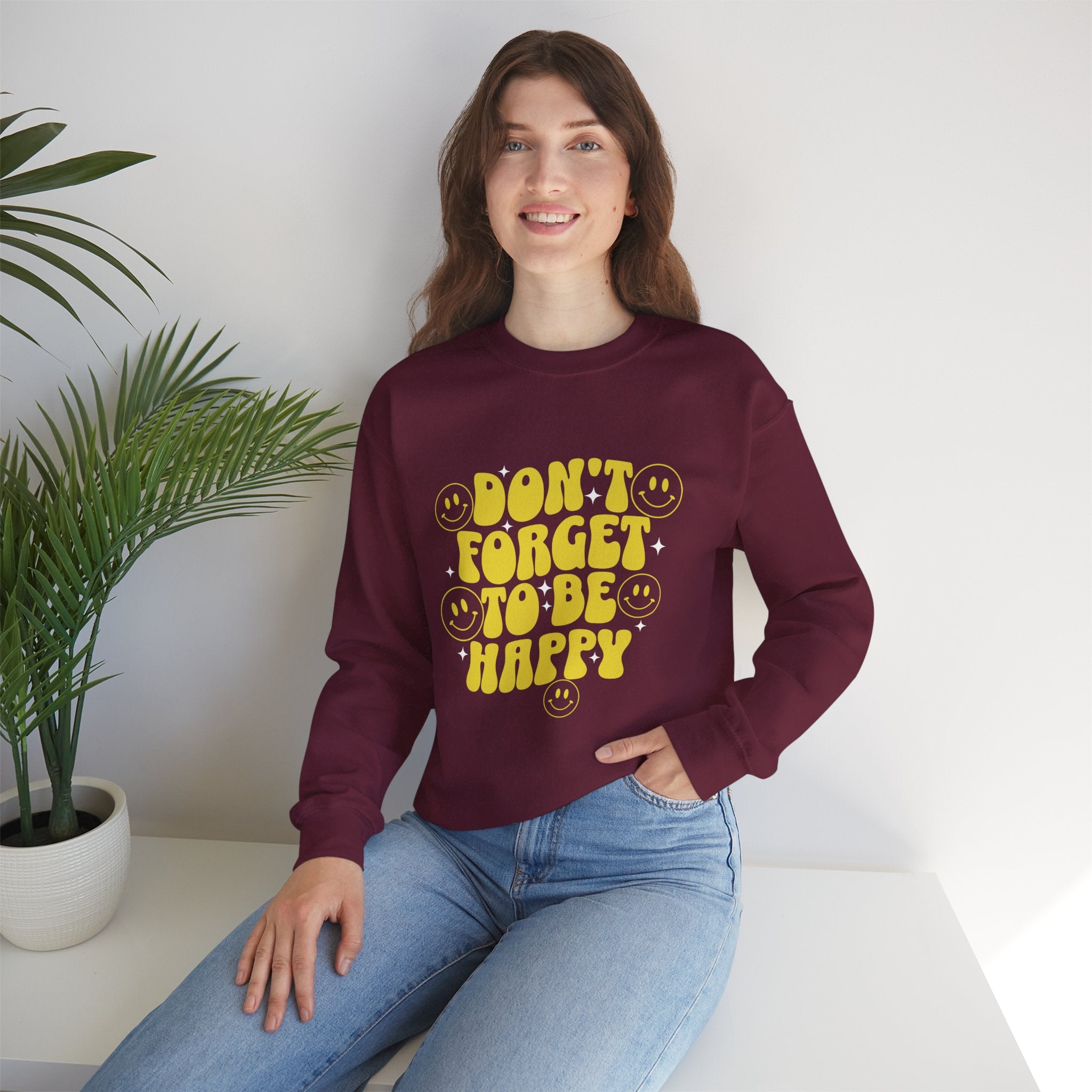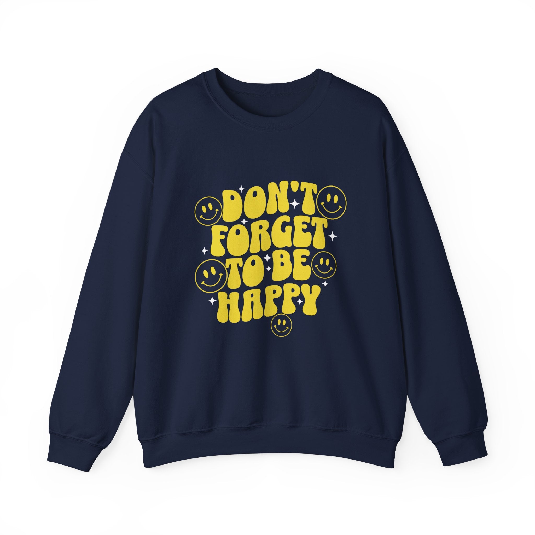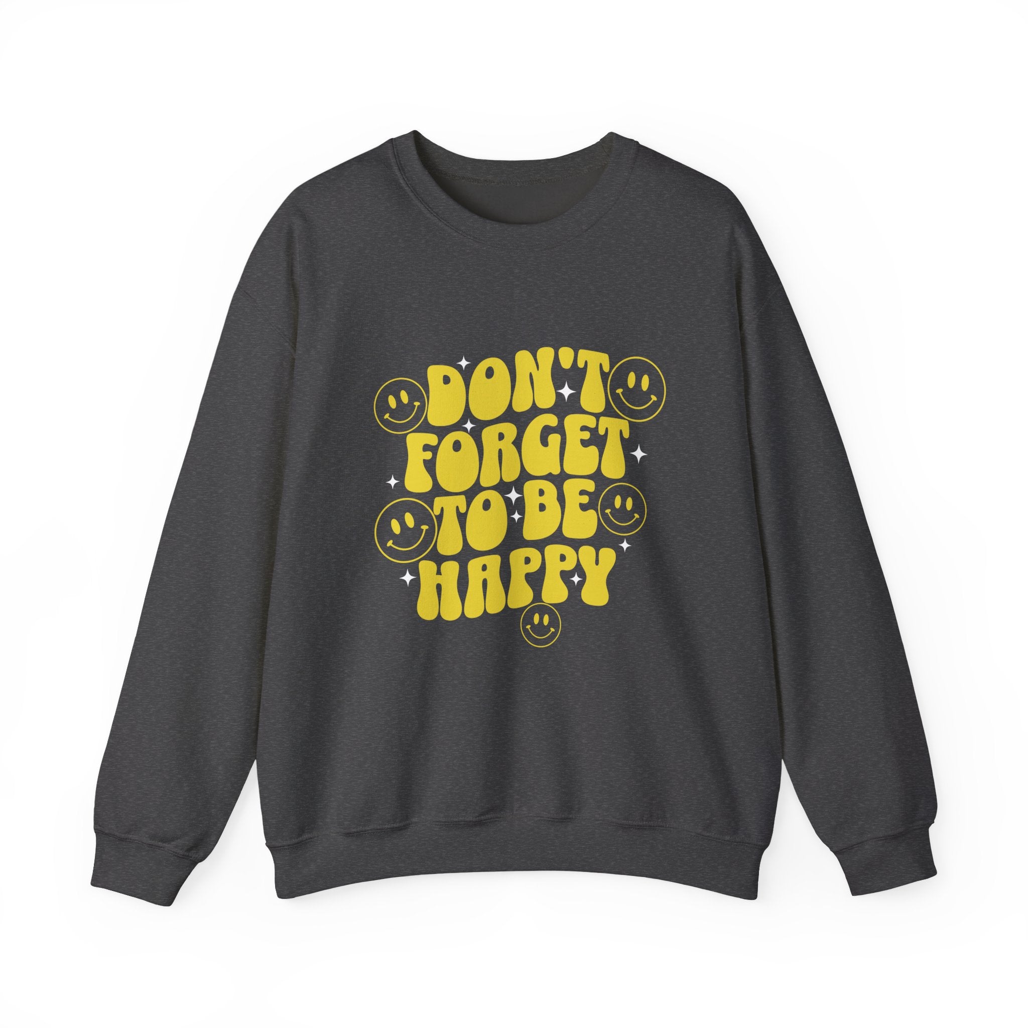 Don’t Forget to Be Happy Sweatshirt — Retro Smiley Positive Vibes Crewneck