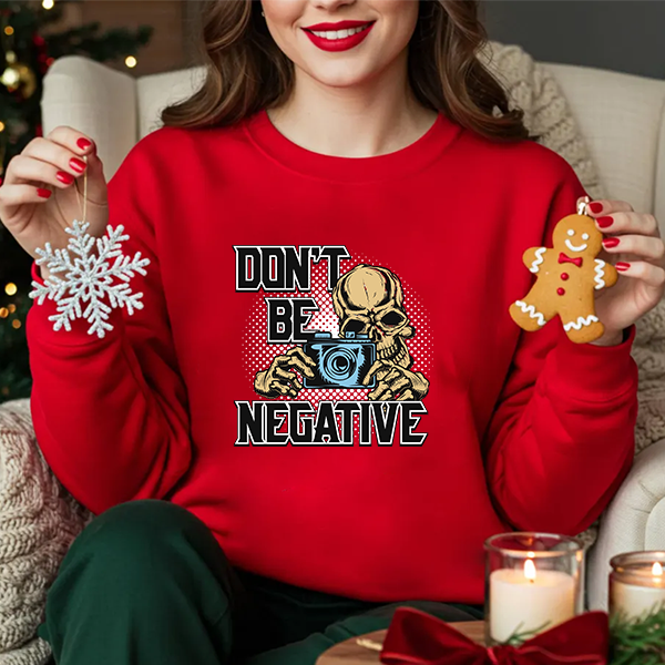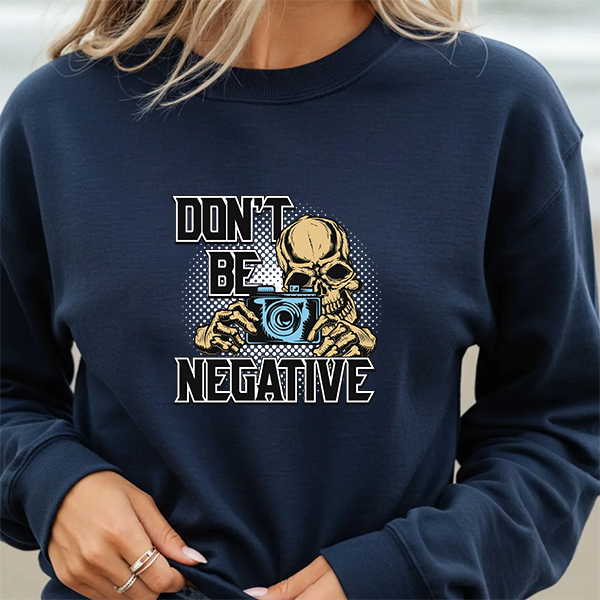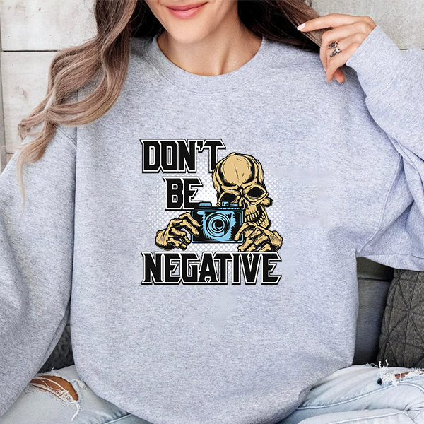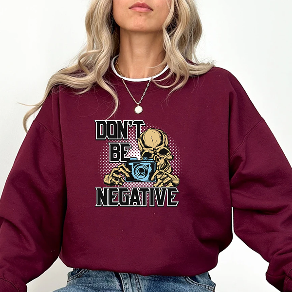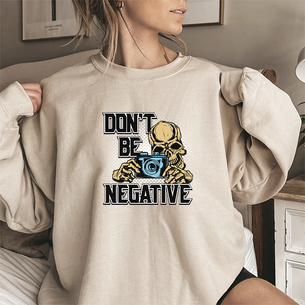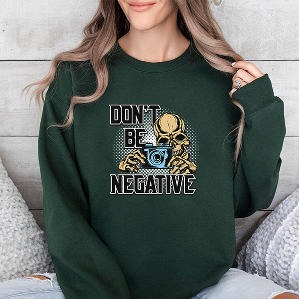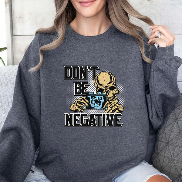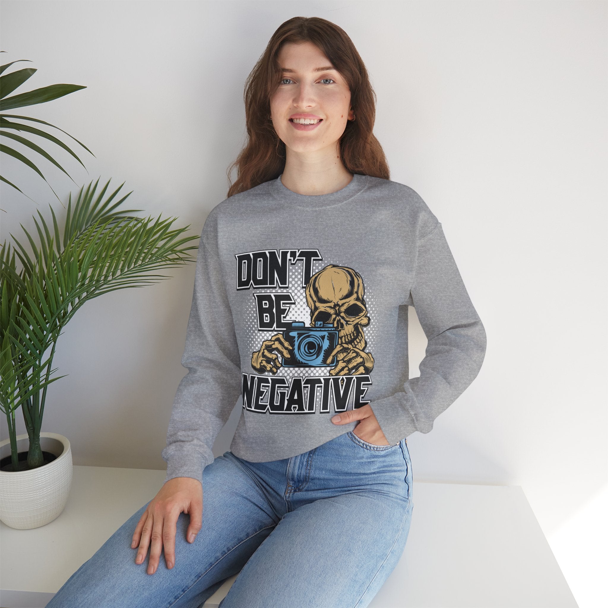 Don't Be Negative Sweatshirt — Skull Photographer Graphic Crewneck