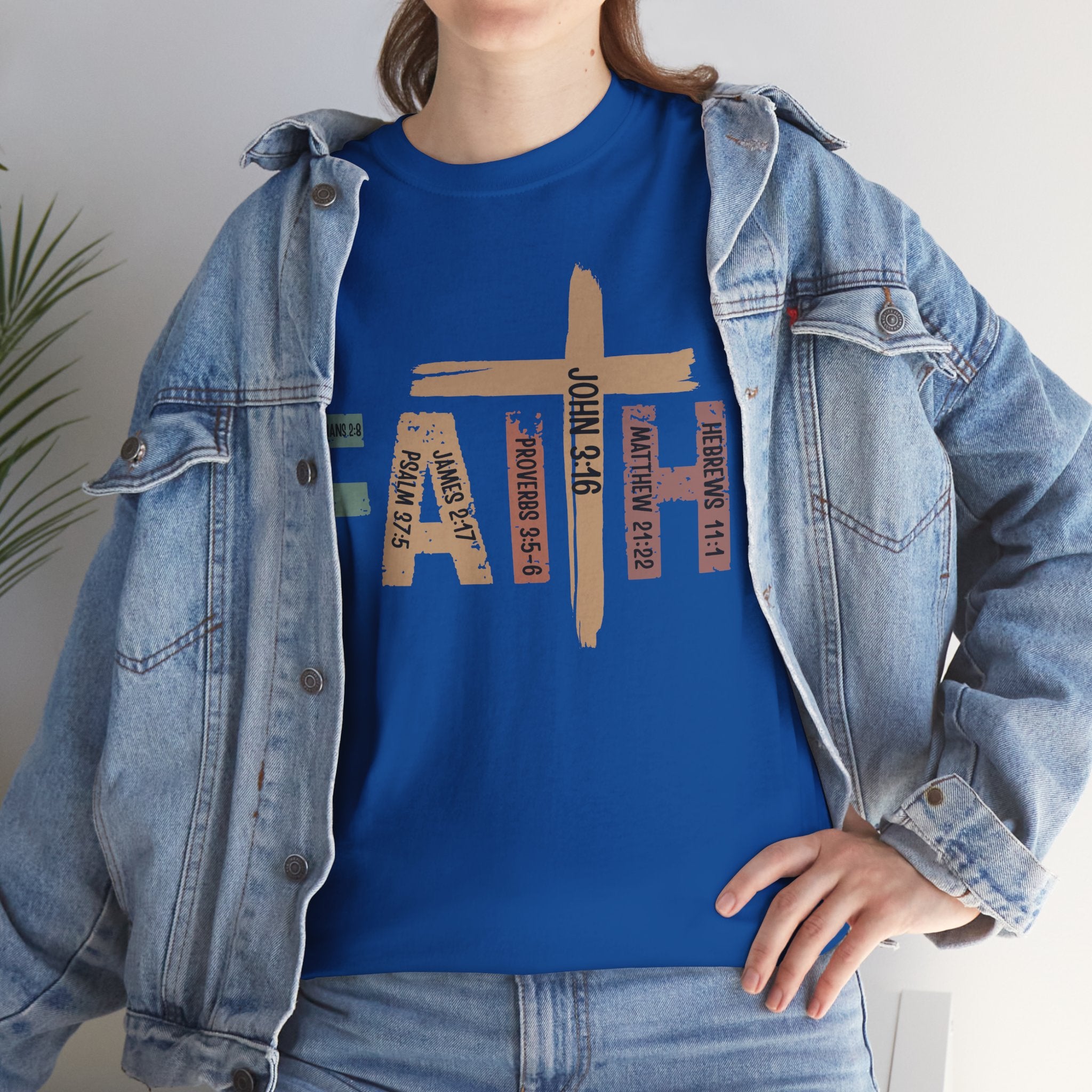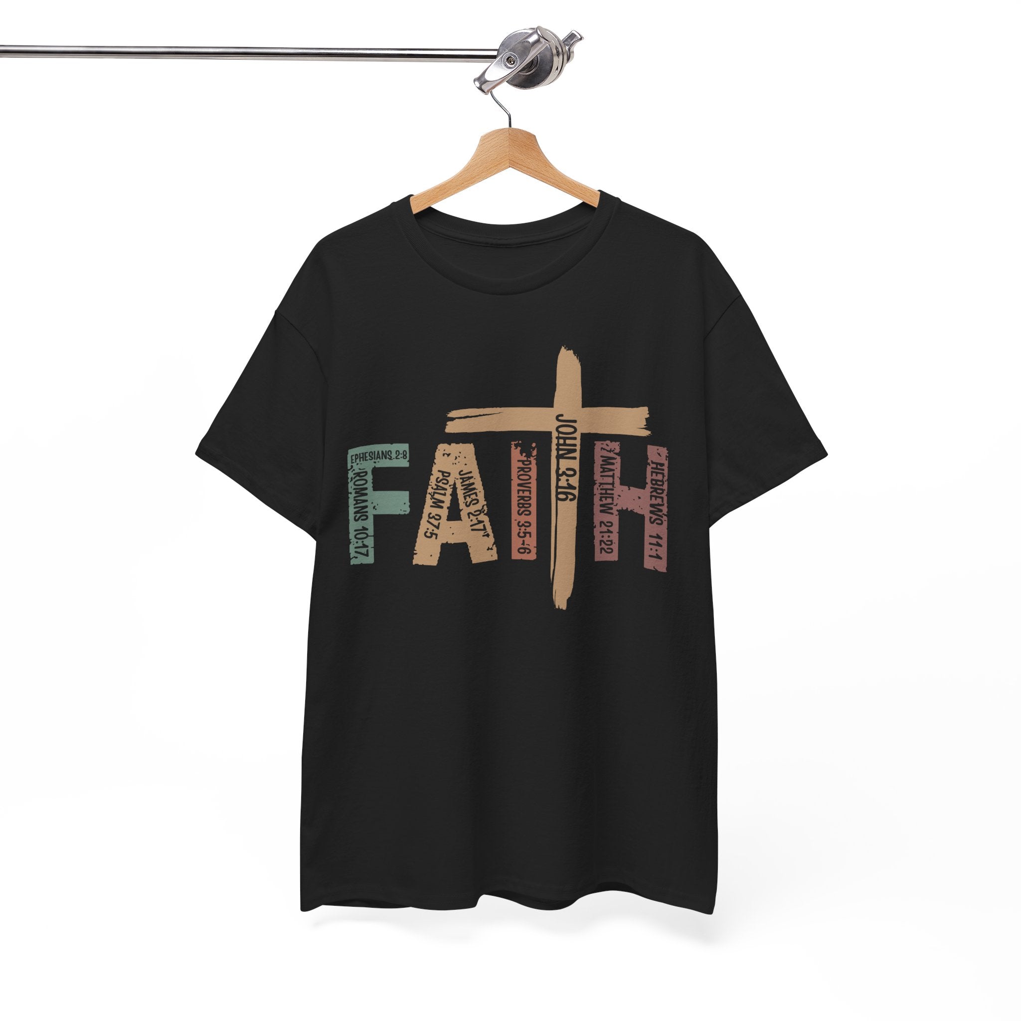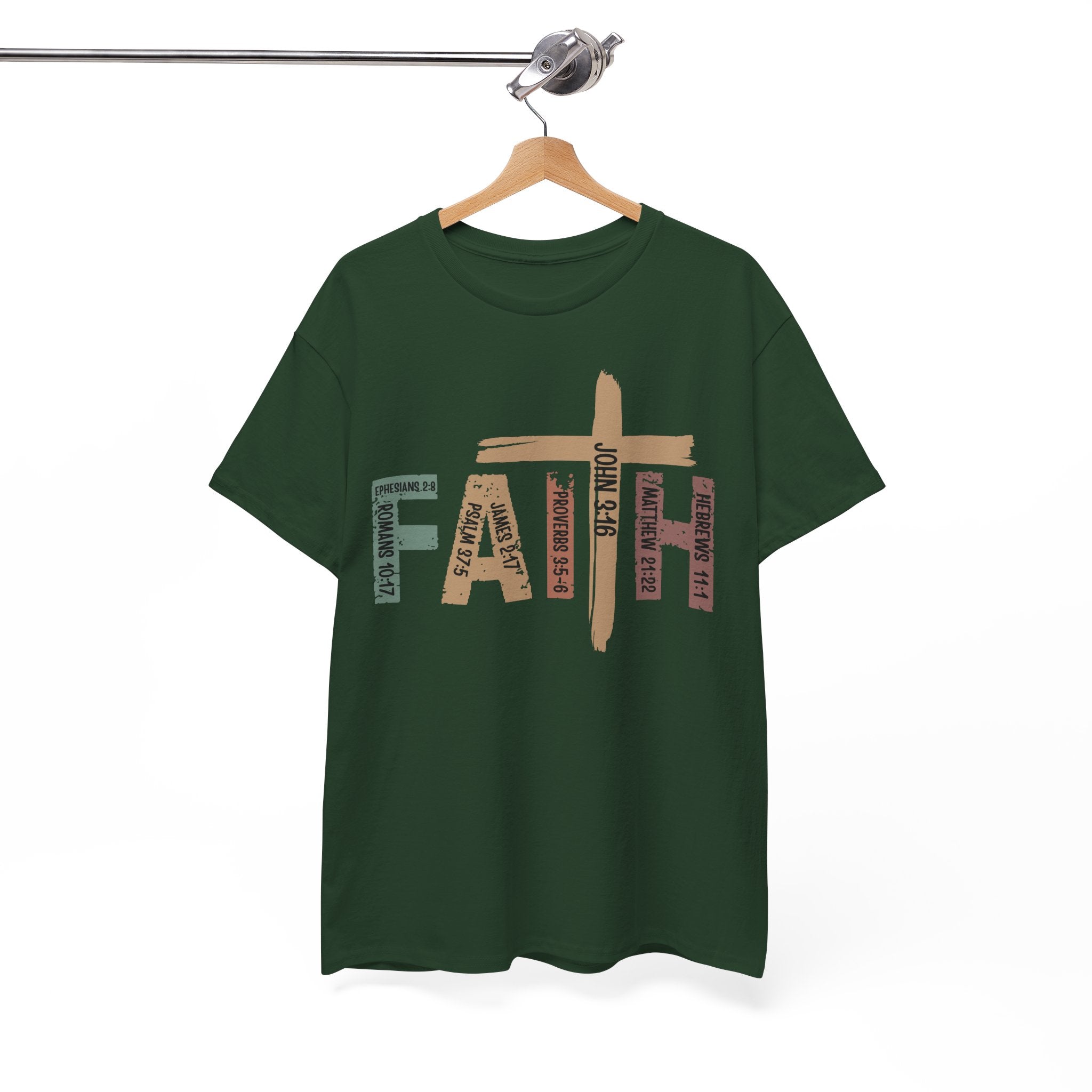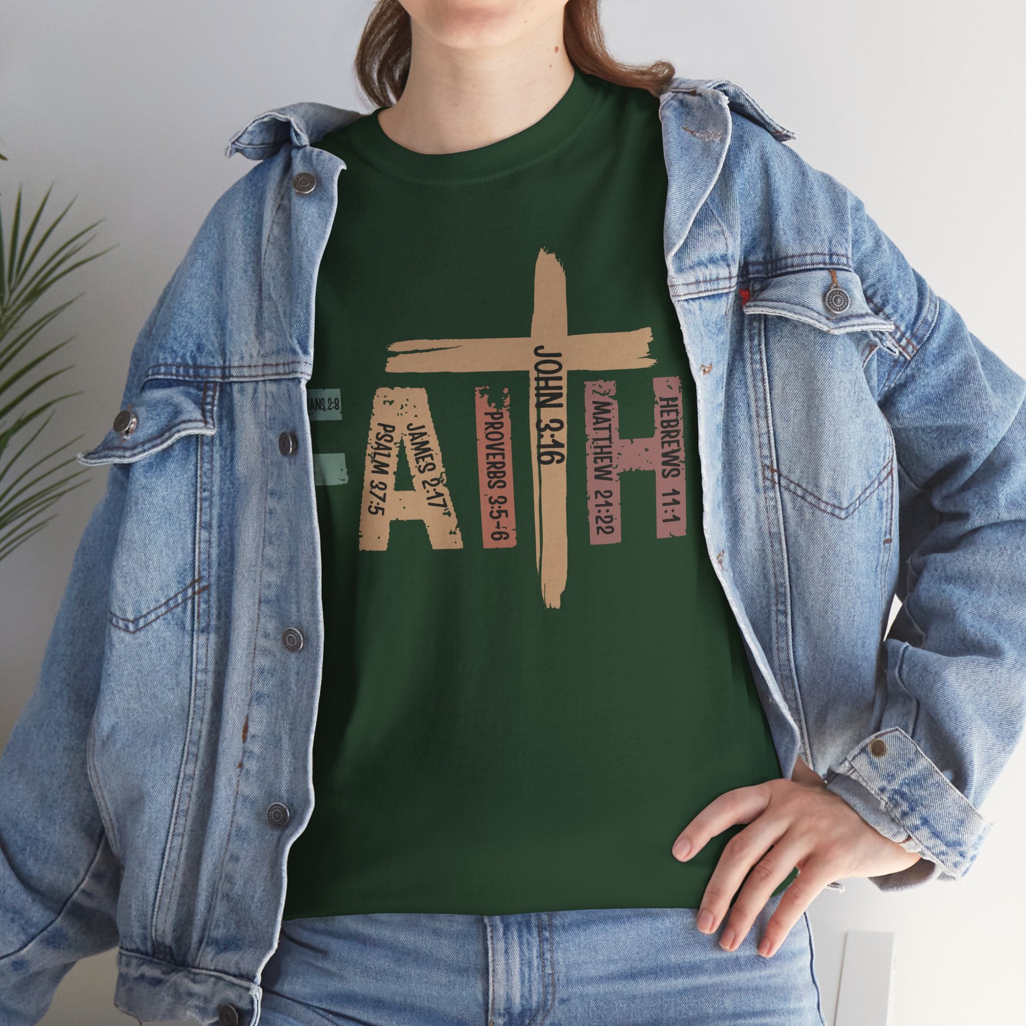 This soft, classic-fit tee carries a quiet, confident message: FAITH, formed from textured, earthy letter art with a cross subtly integrated into the design. The medium-weight cotton feels substantial without being heavy, holding its shape and print detail wash after wash. Wear it to church services, volunteer events, or on slow Sunday mornings — it settles into your wardrobe like a familiar hymn, comfortable and steady. The crew neck and relaxed cut make layering easy under jackets or over long sleeves. The distressed, nature-inspired palette gives the shirt a lived-in, authentic look that complements denim, cargos, or a simple skirt. It’s made with responsibly sourced cotton, crisp printing techniques, and construction details that resist stretching, so the message stays clear and the fit stays true.