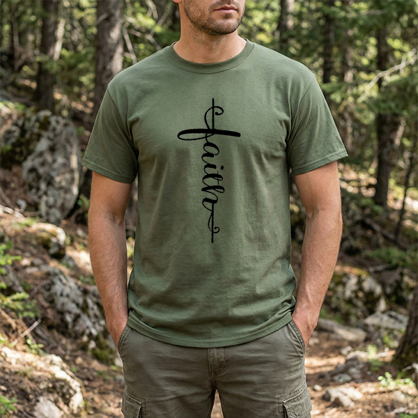 Faith Cross Vertical Script T-Shirt