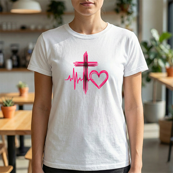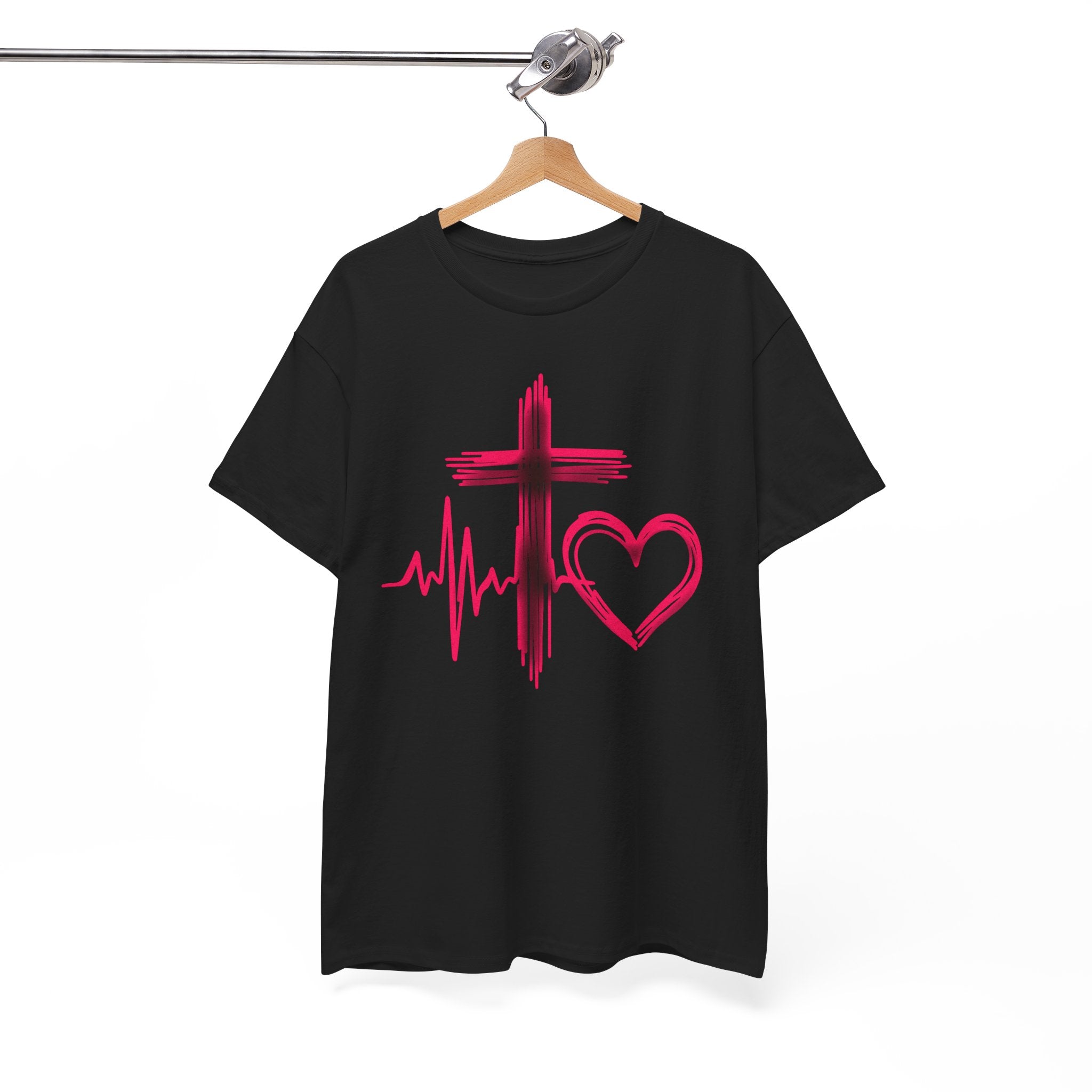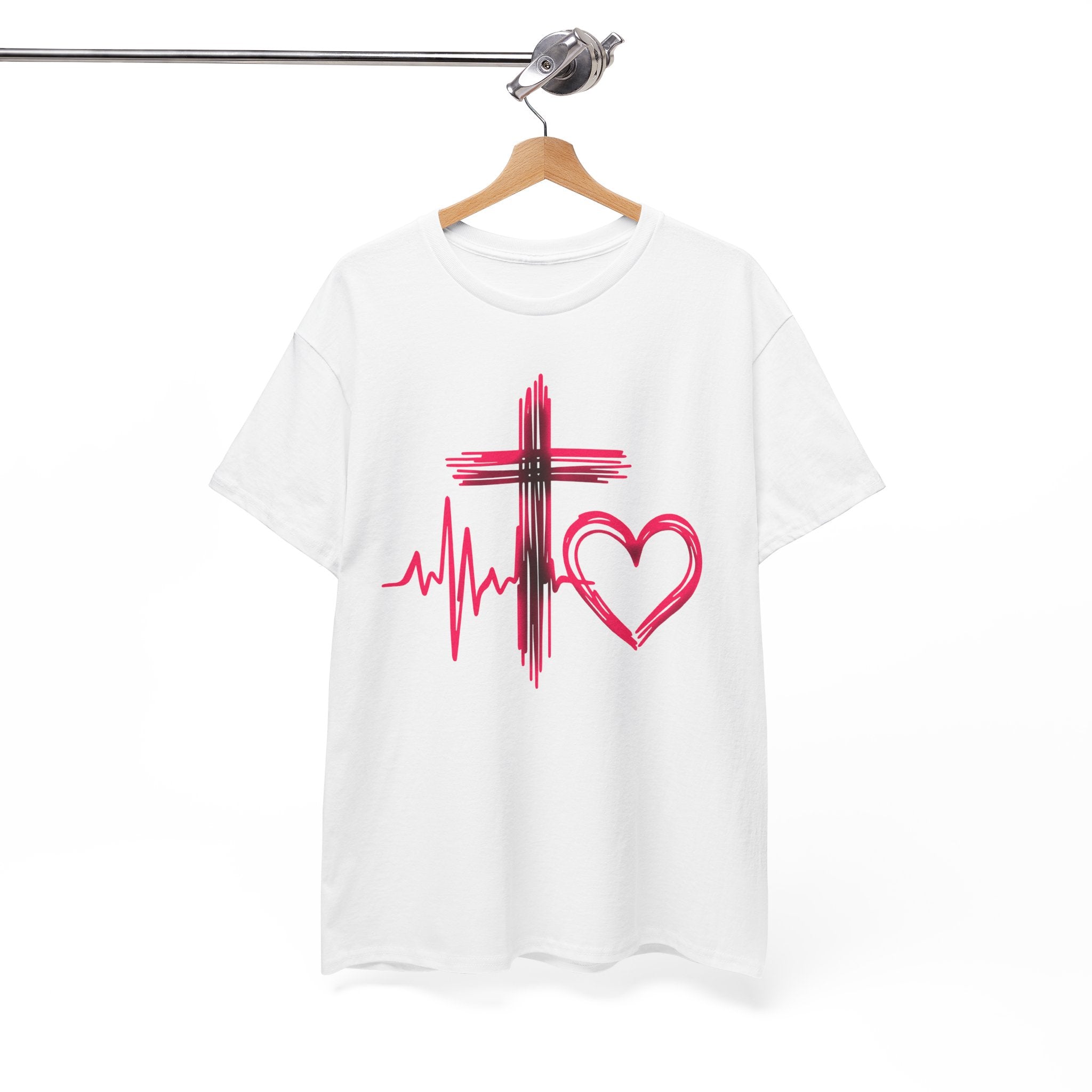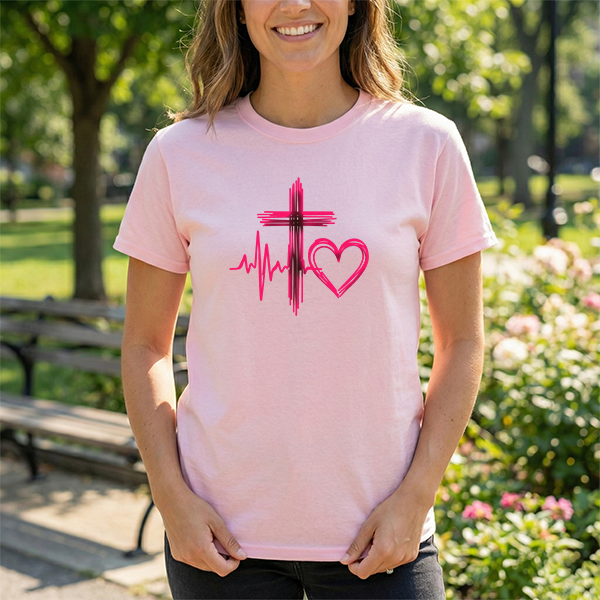 Faith & Heart T‑Shirt — Cross, Heartbeat & Heart Graphic Tee
