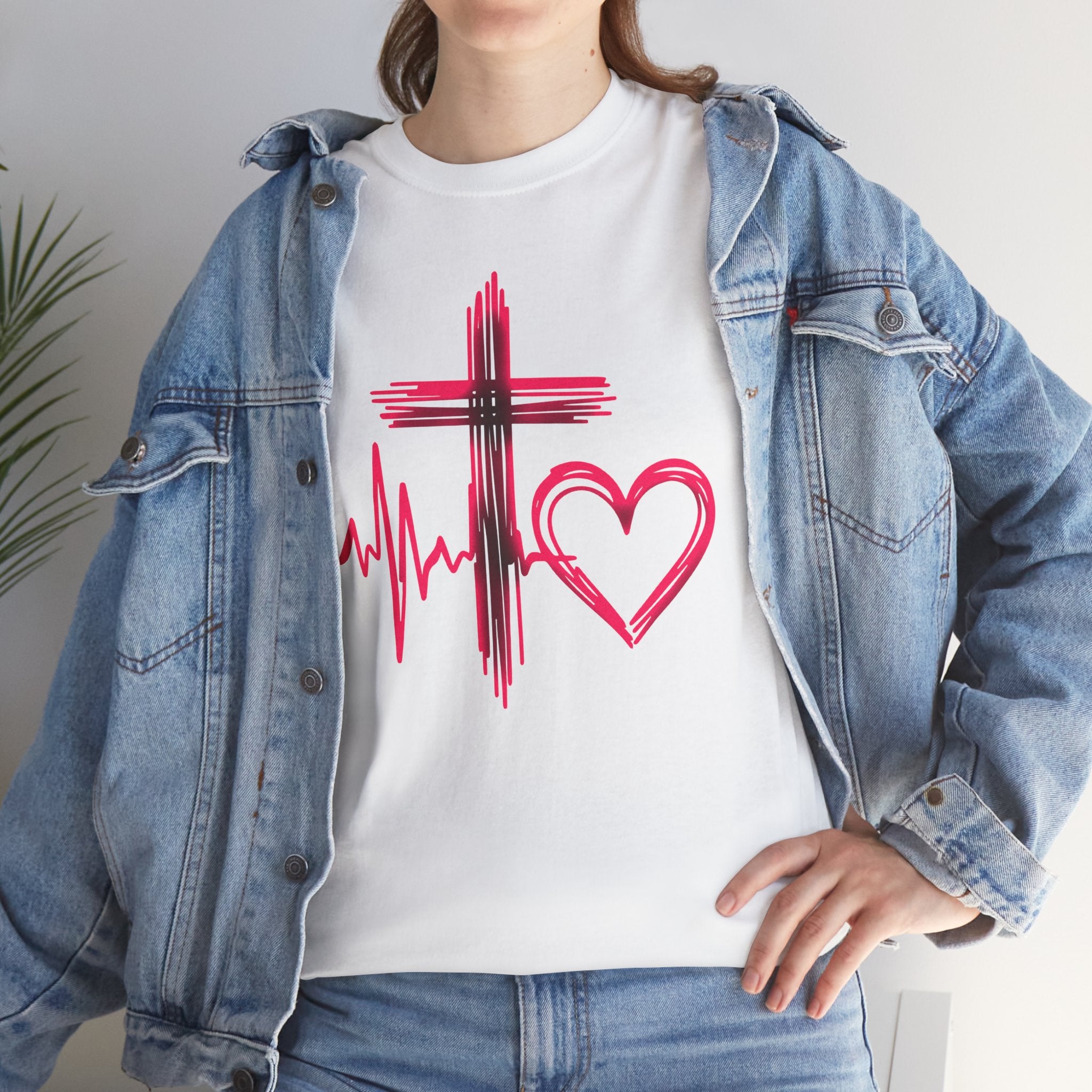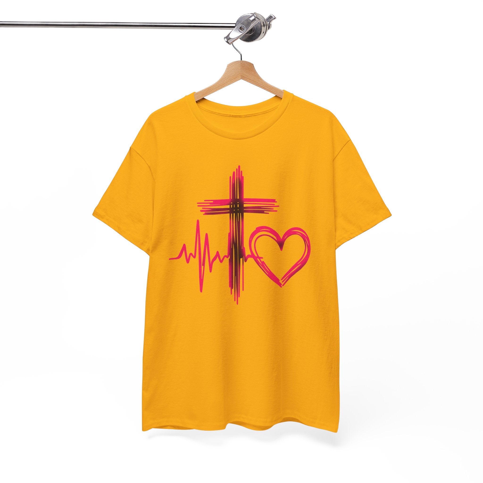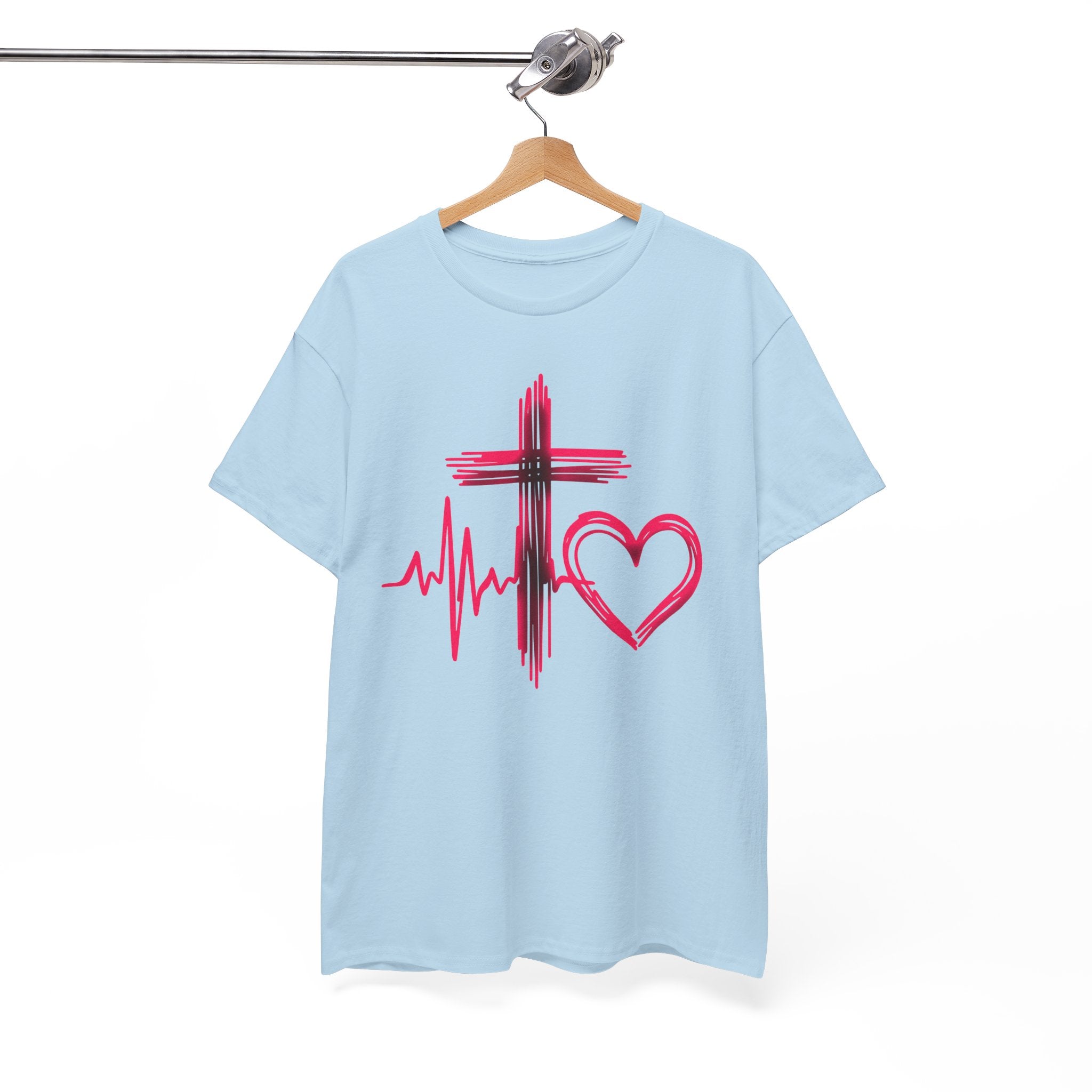 Faith & Heart T‑Shirt — Cross, Heartbeat & Heart Graphic Tee
