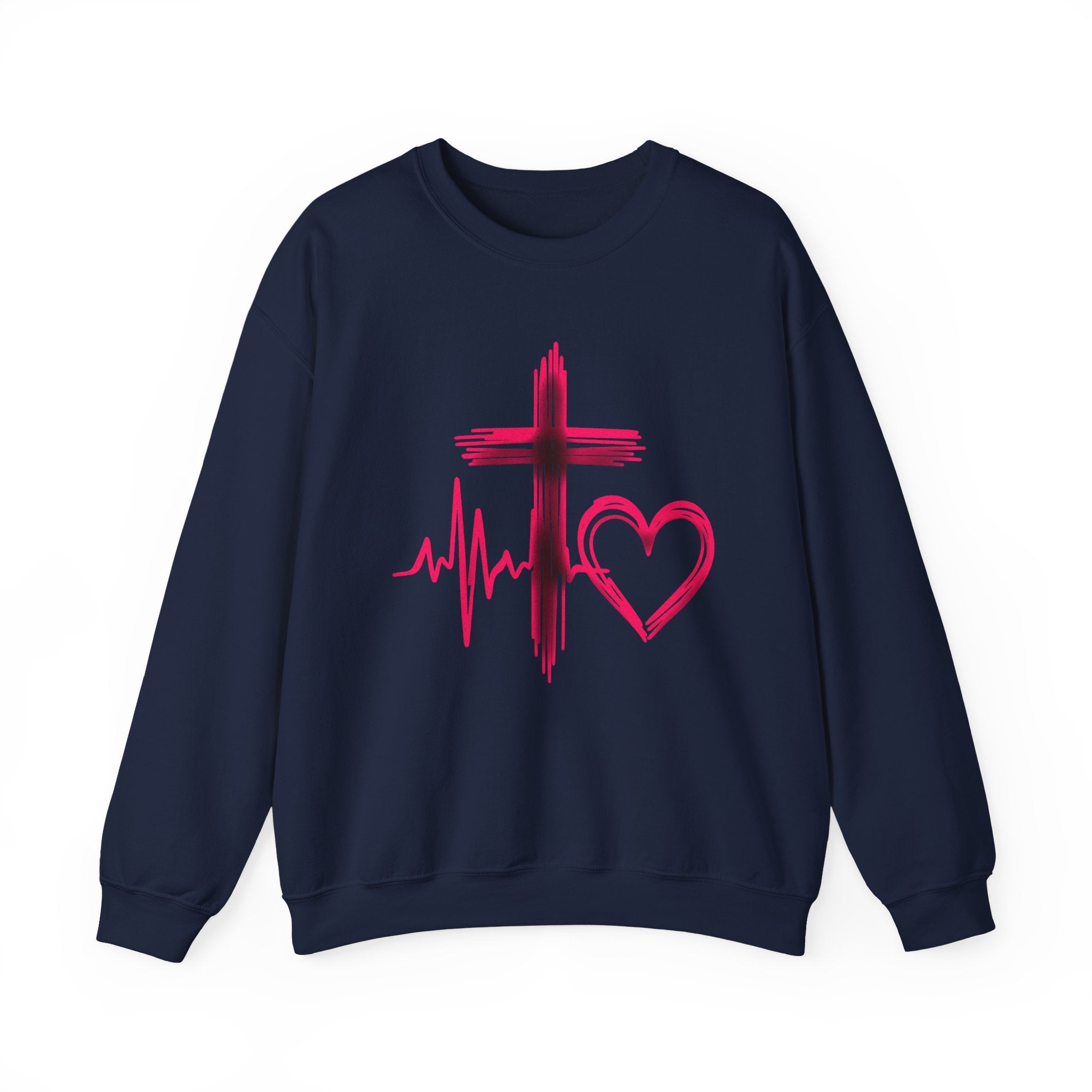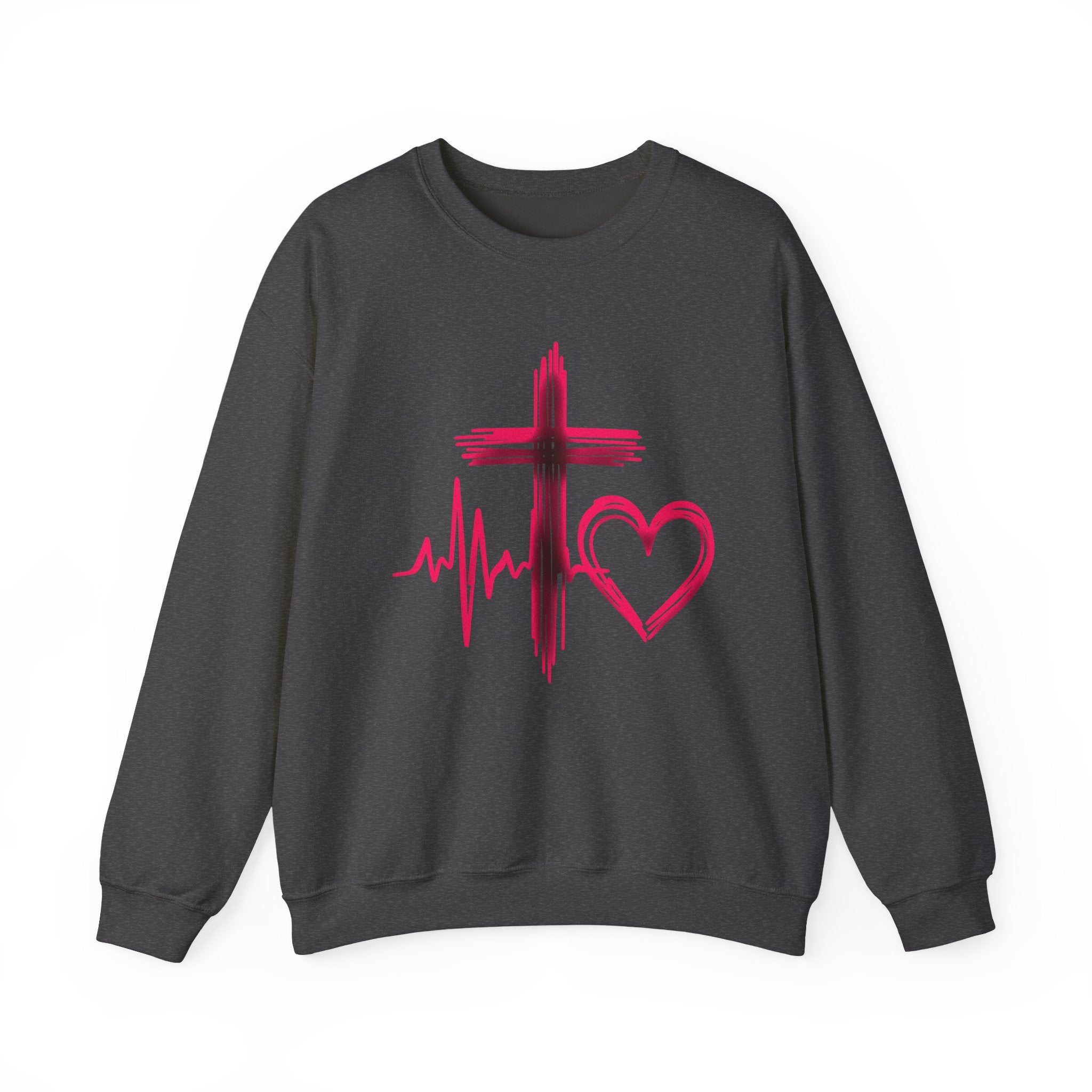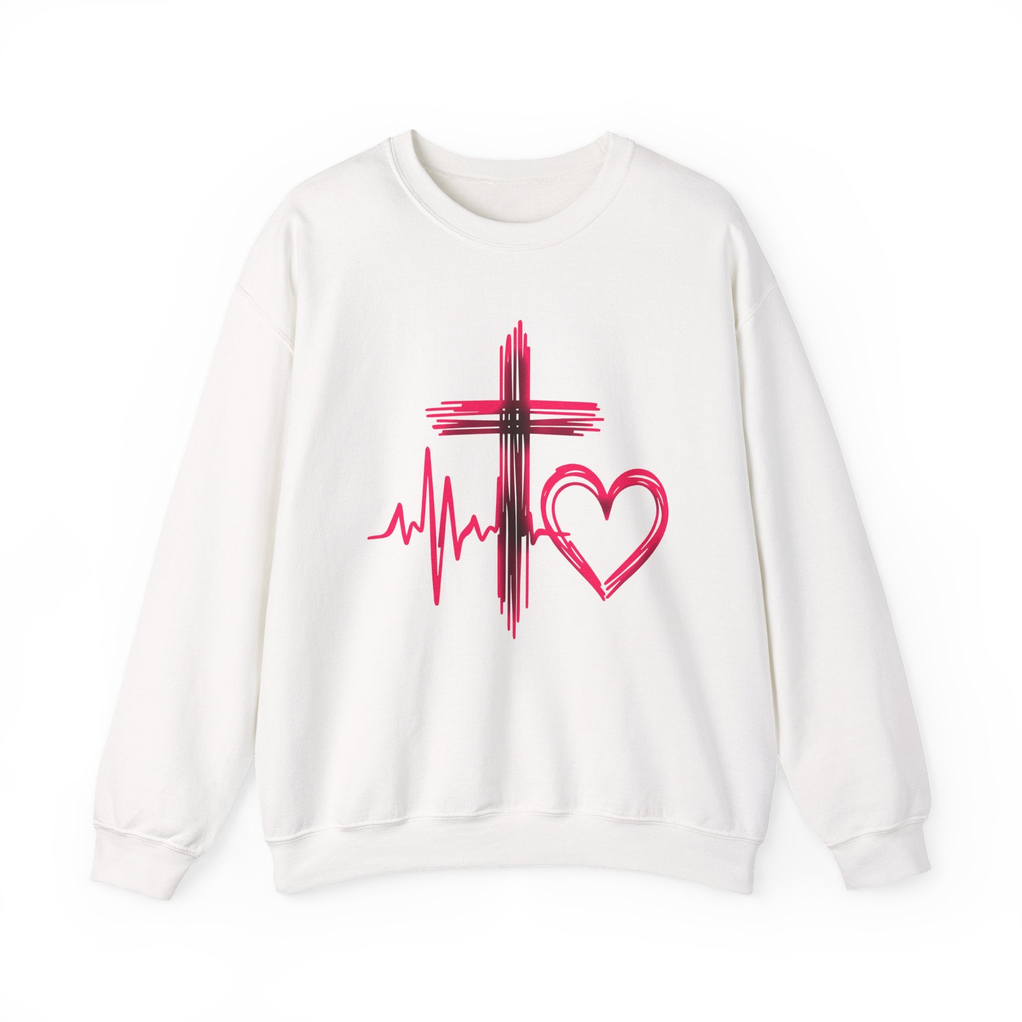 Faith Heartbeat Sweatshirt — Cross & Heart Design Christian Crewneck