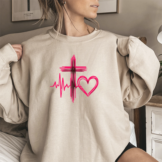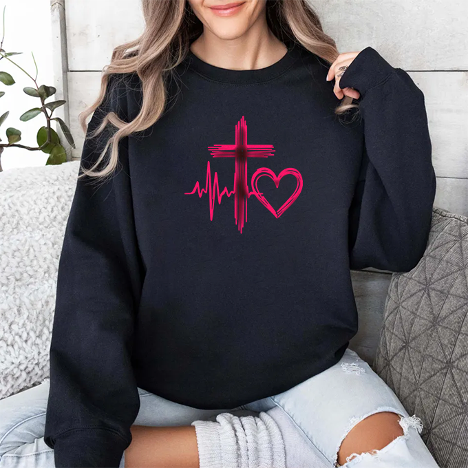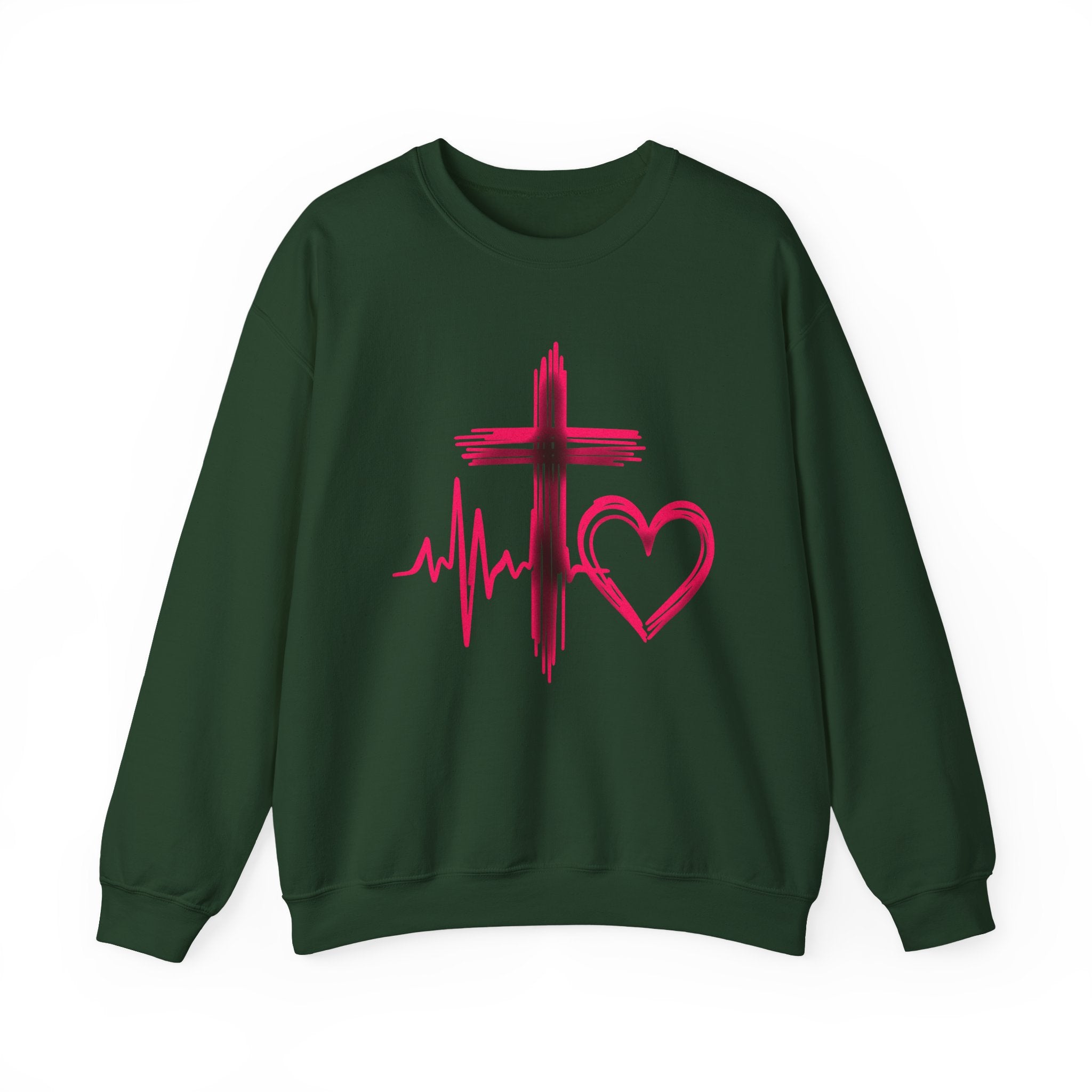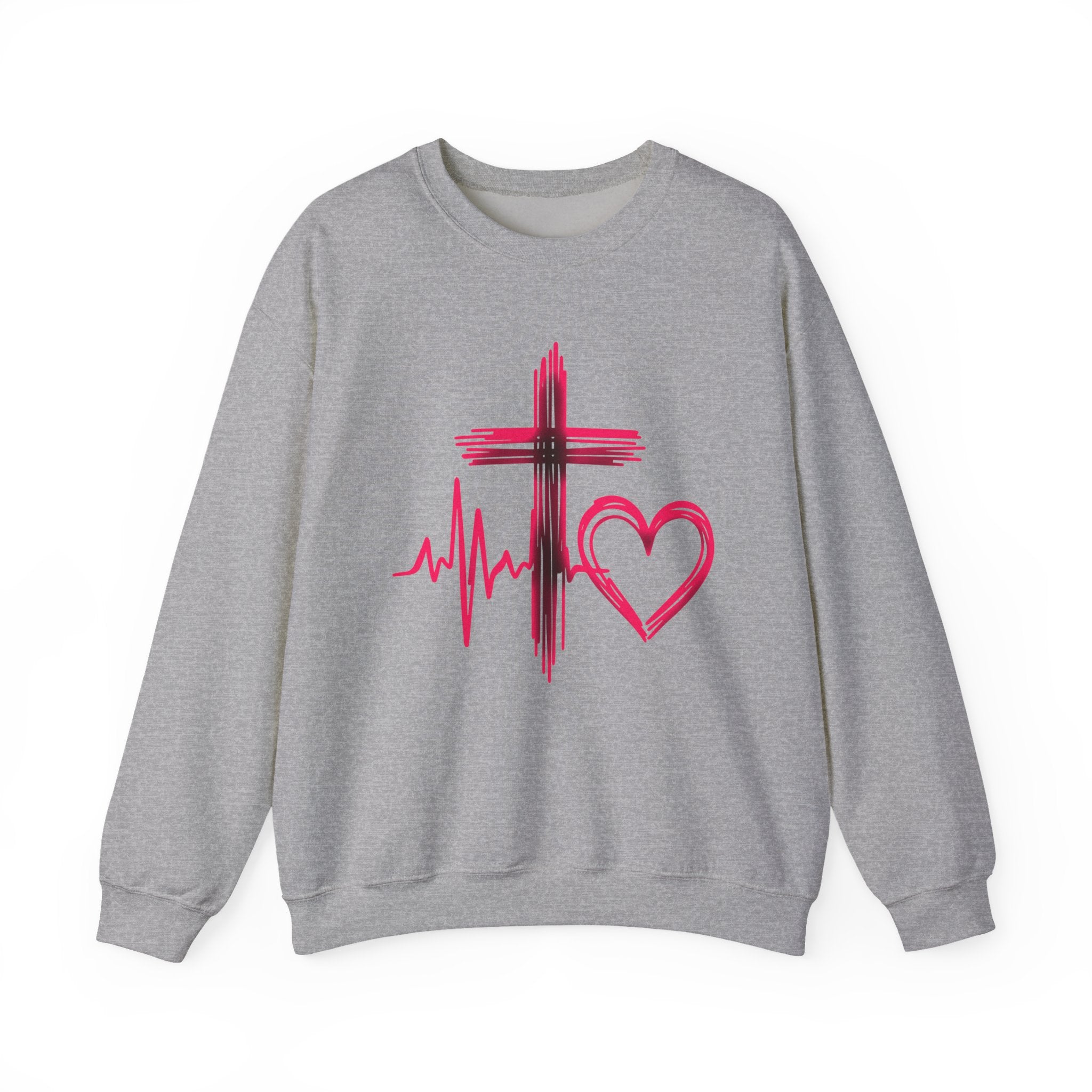Faith Heartbeat Sweatshirt — Cross & Heart Design Christian Crewneck
