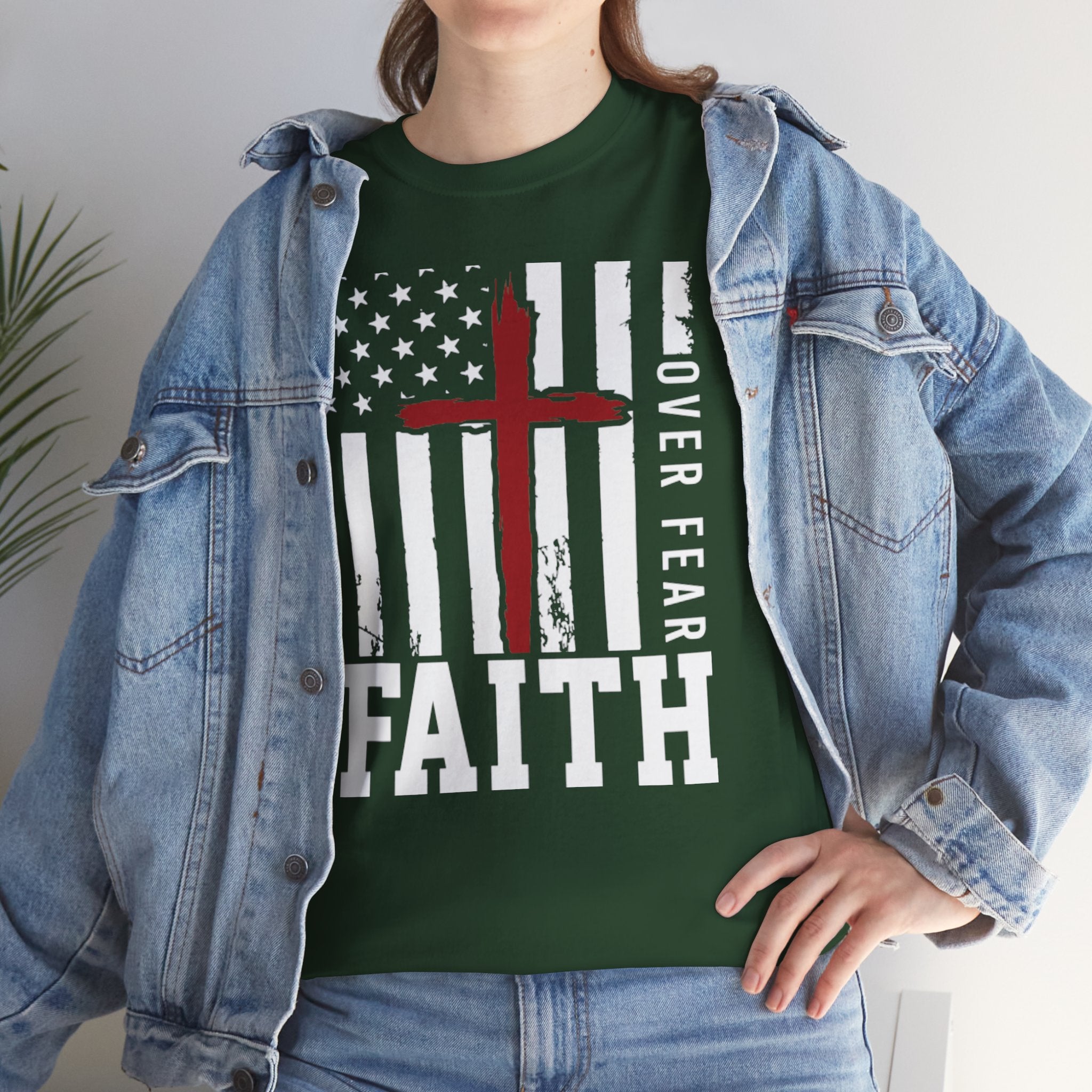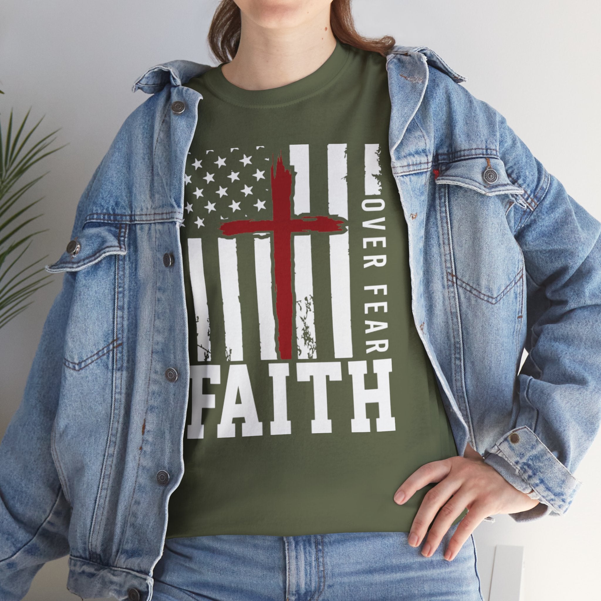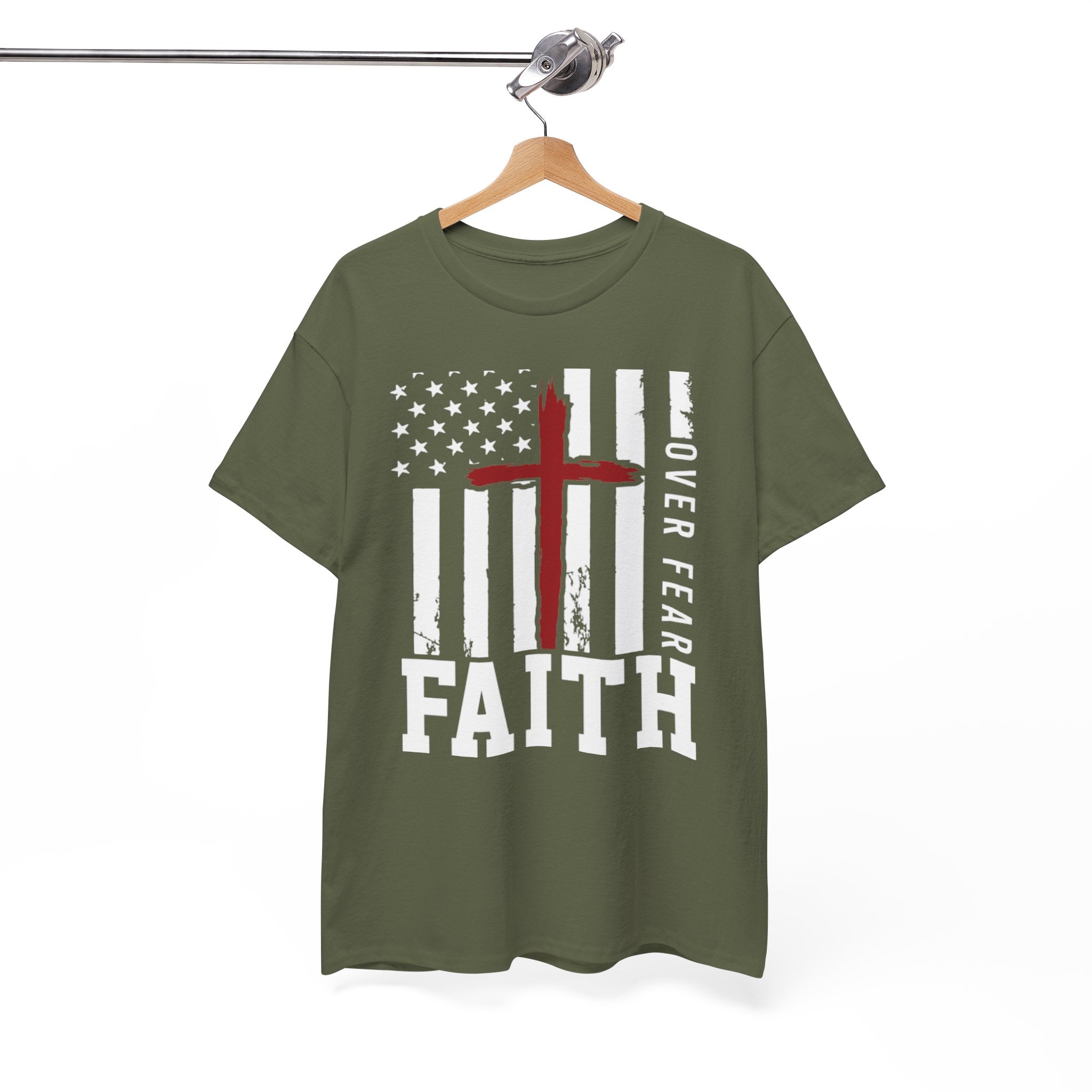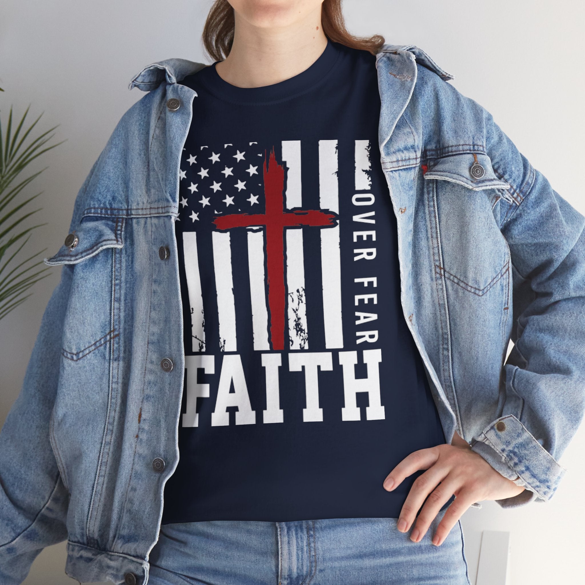 Faith Over Fear T-Shirt — Christian American Flag Cross Tee