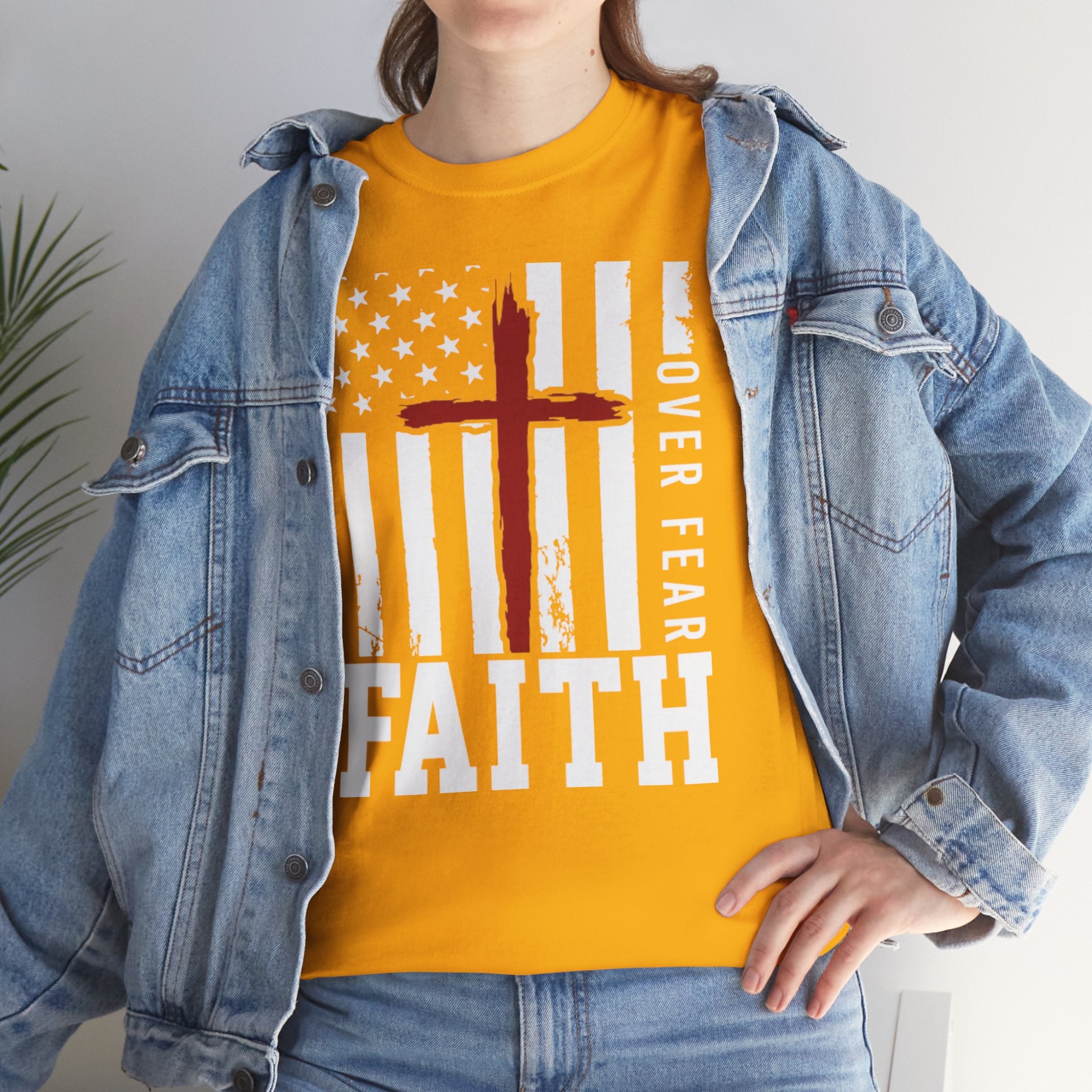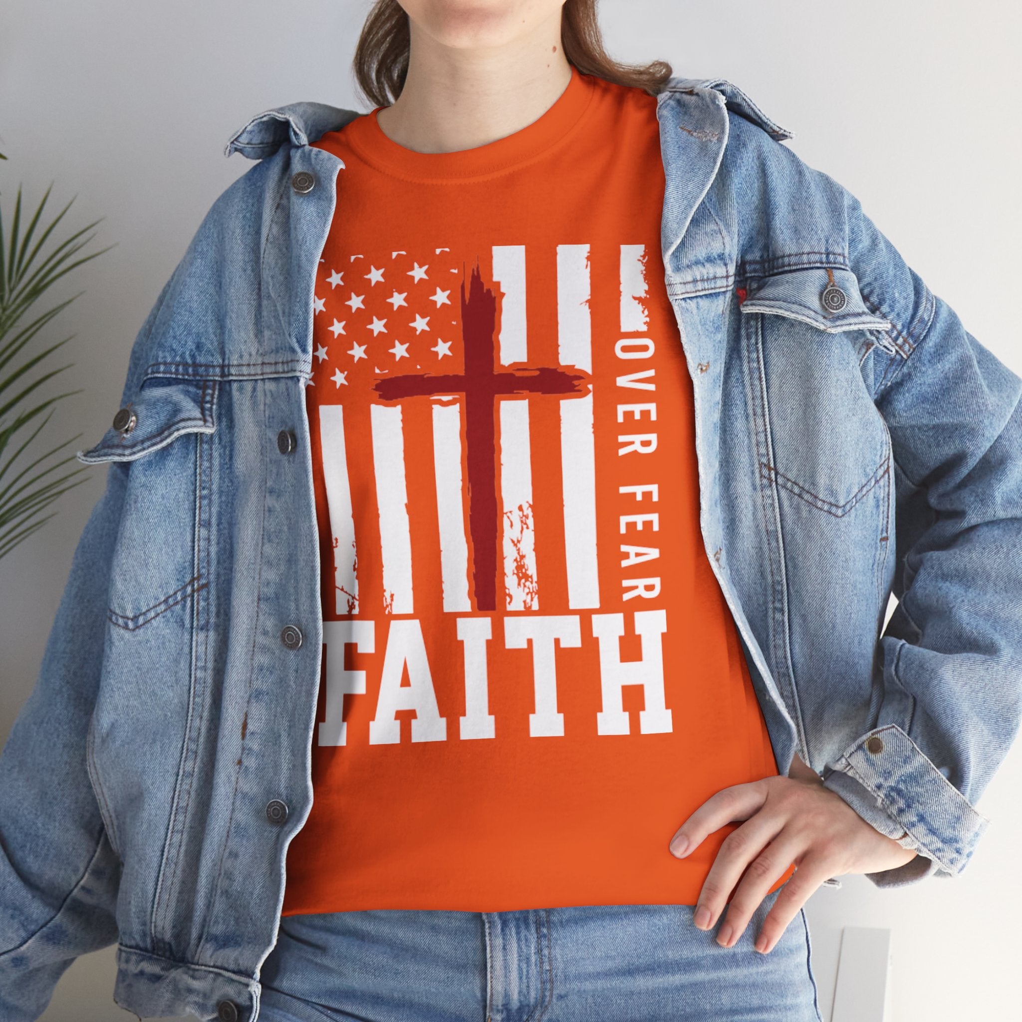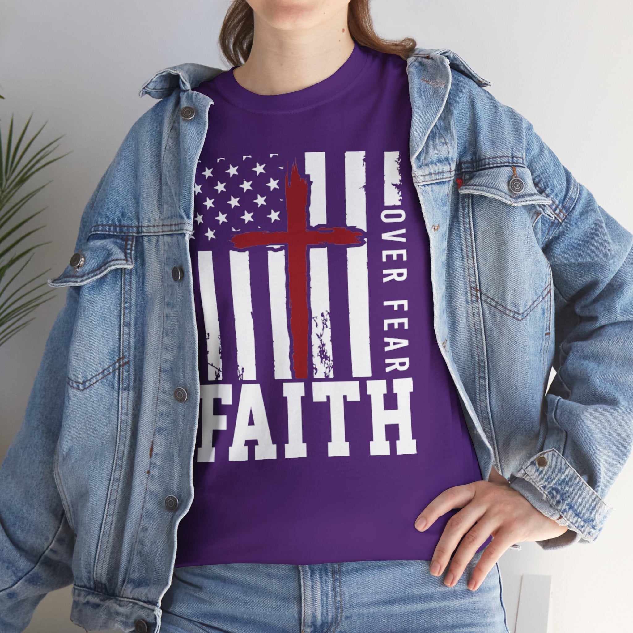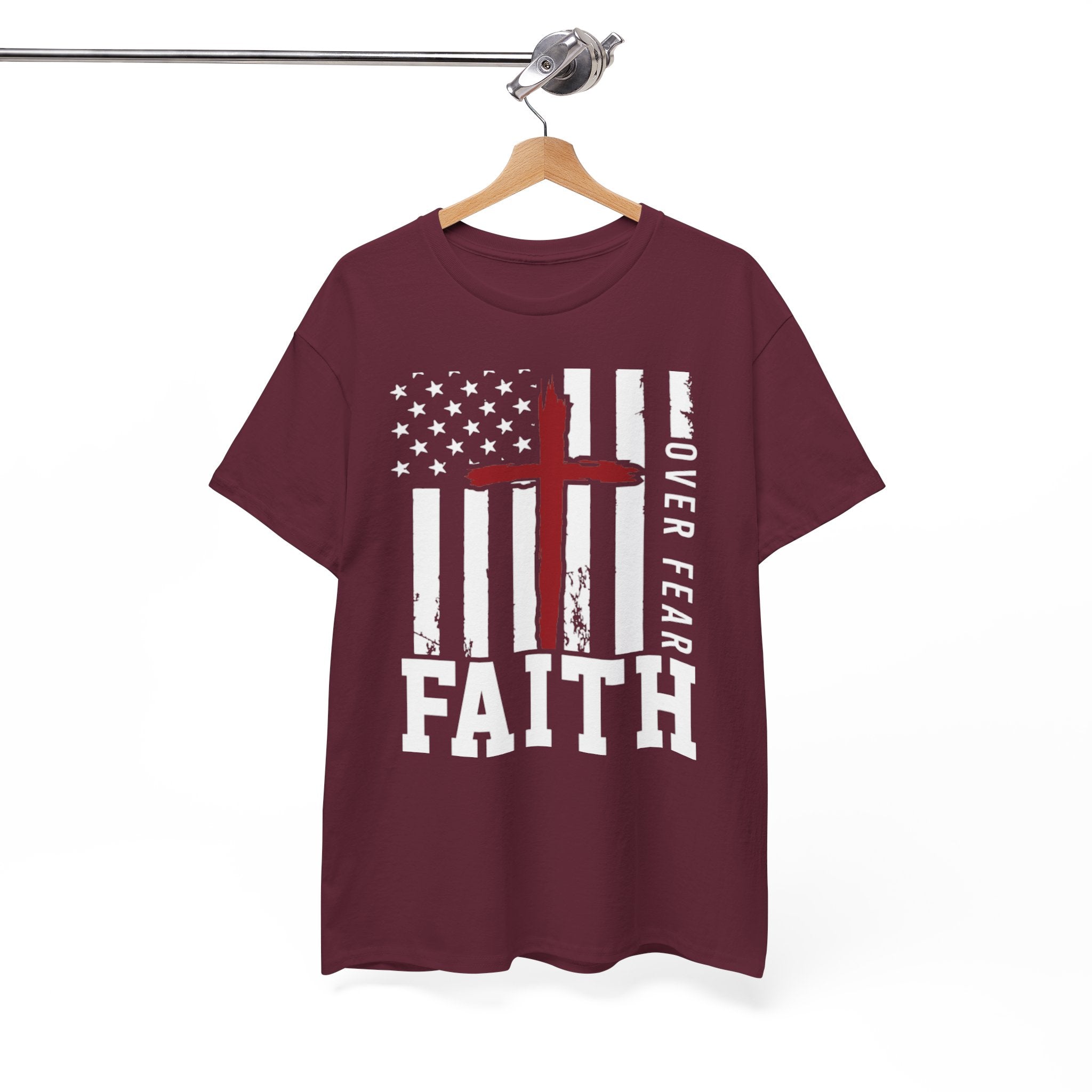 Faith Over Fear T-Shirt — Christian American Flag Cross Tee