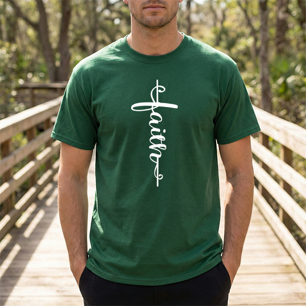 Faith Vertical Script Tee — Inspirational Christian T-Shirt