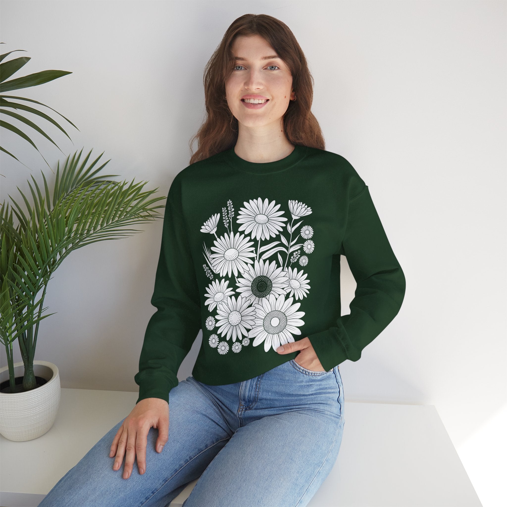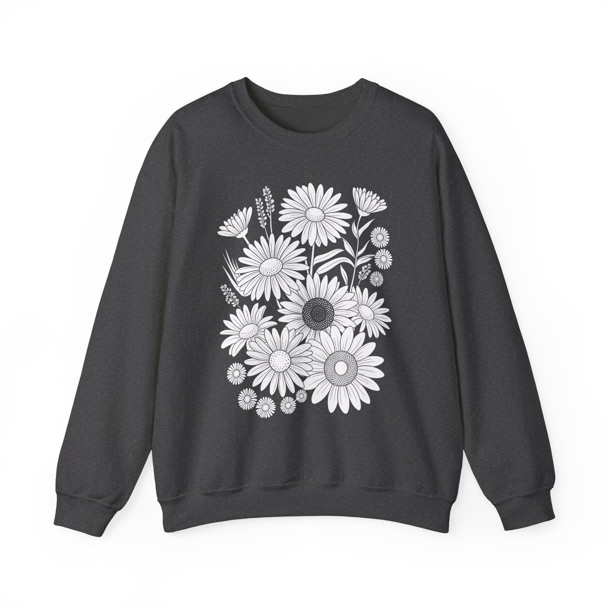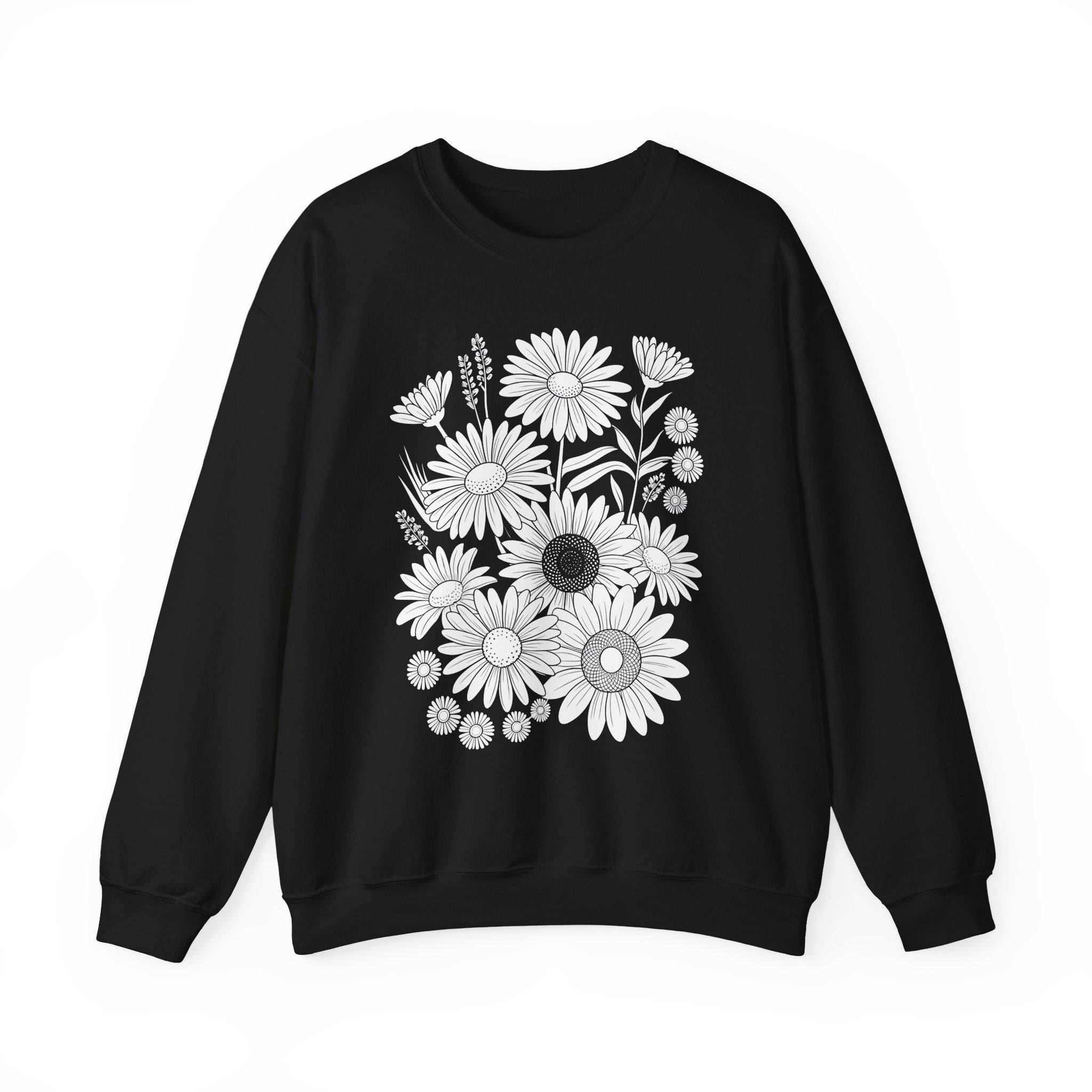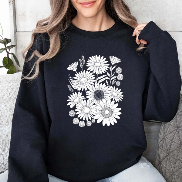 Floral Daisies Crewneck Sweatshirt — Monochrome Garden Graphic