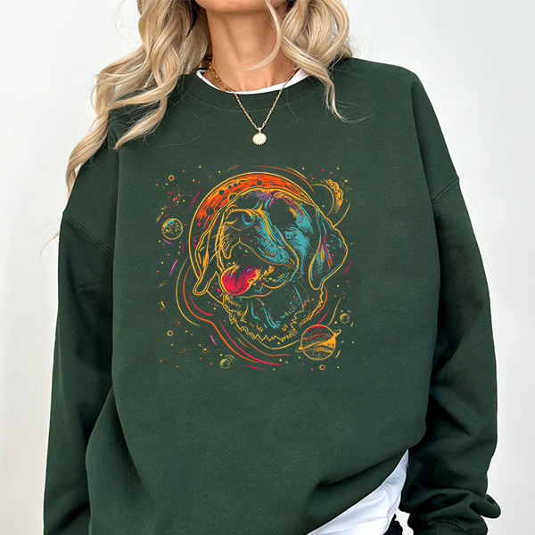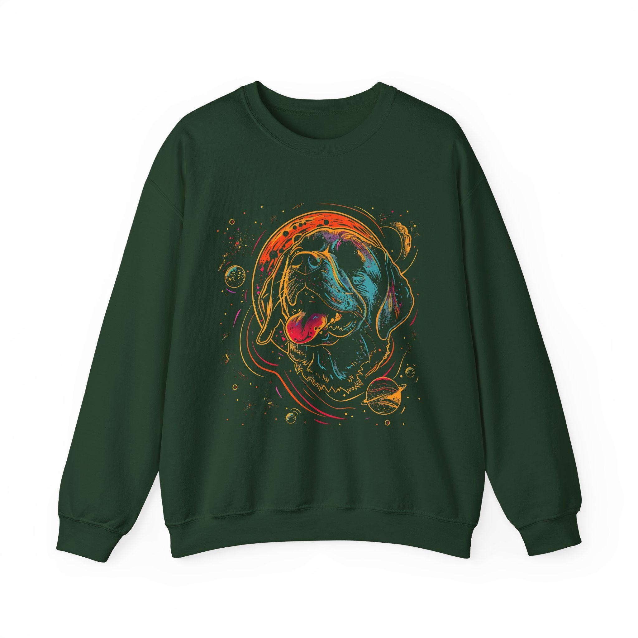Galactic Dog Crewneck Sweatshirt – Neon Space Labrador Graphic