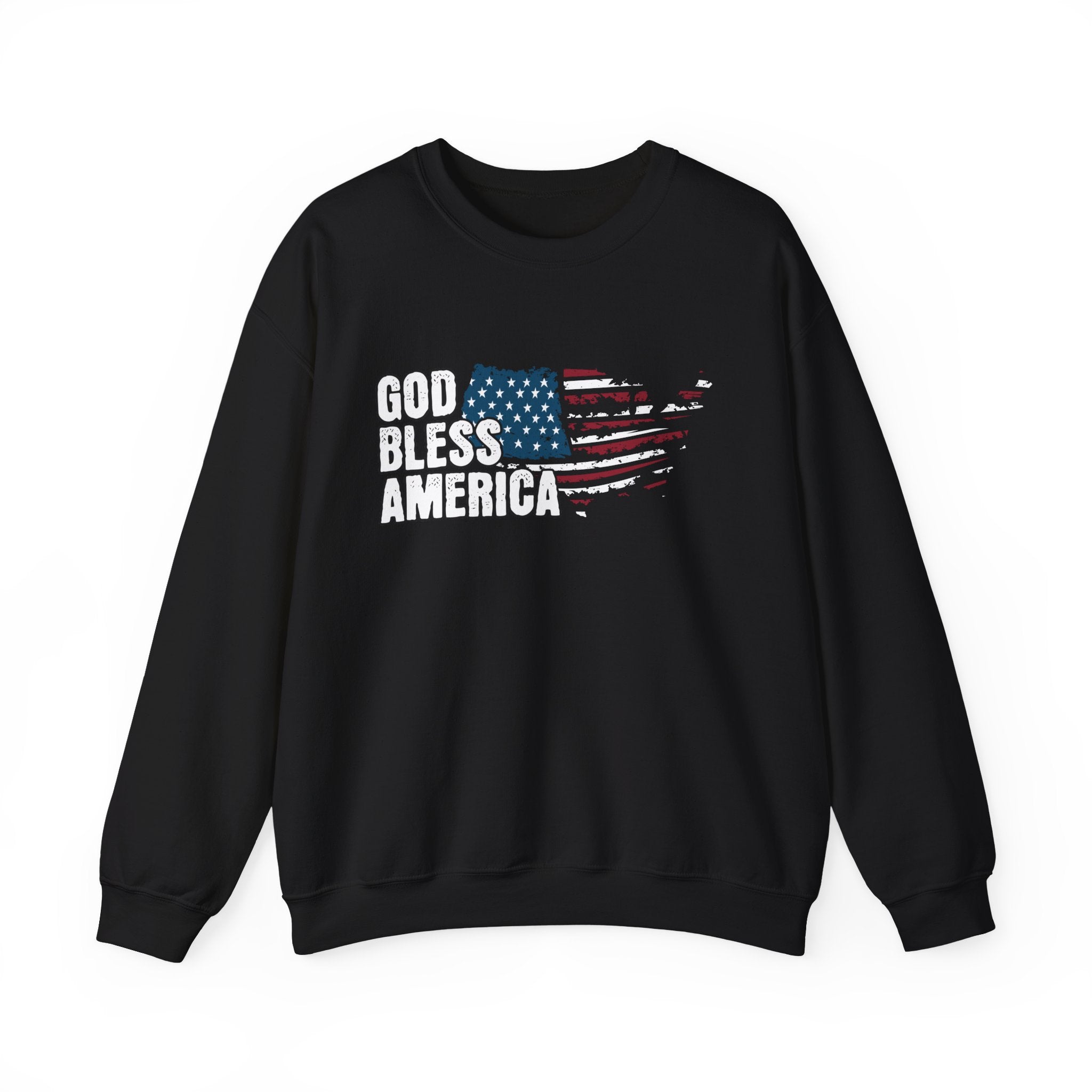 A relaxed, mid-weight crewneck sweatshirt that carries a quiet, patriotic voice. The distressed American-flag artwork and bold “God Bless America” text sit centered on a clean black canvas, giving the piece a lived-in, authentic feel. Made from a 50/50 cotton–poly blend with reinforced double-needle stitching, this sweatshirt offers dependable warmth and day-to-day durability. Lightweight enough for layering under a jacket and substantial enough to stand alone, it moves seamlessly from backyard gatherings to casual weekend errands. The tear-away neck label keeps the back of your collar smooth, and embroidery or small chest accents are available to add a personal touch.