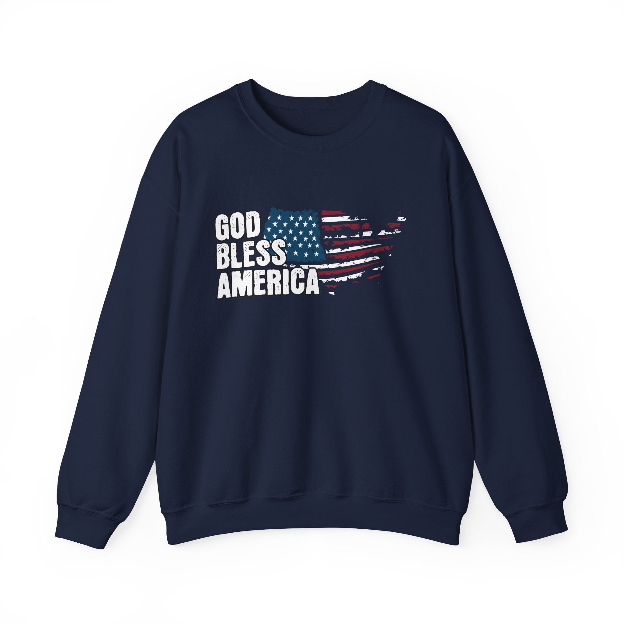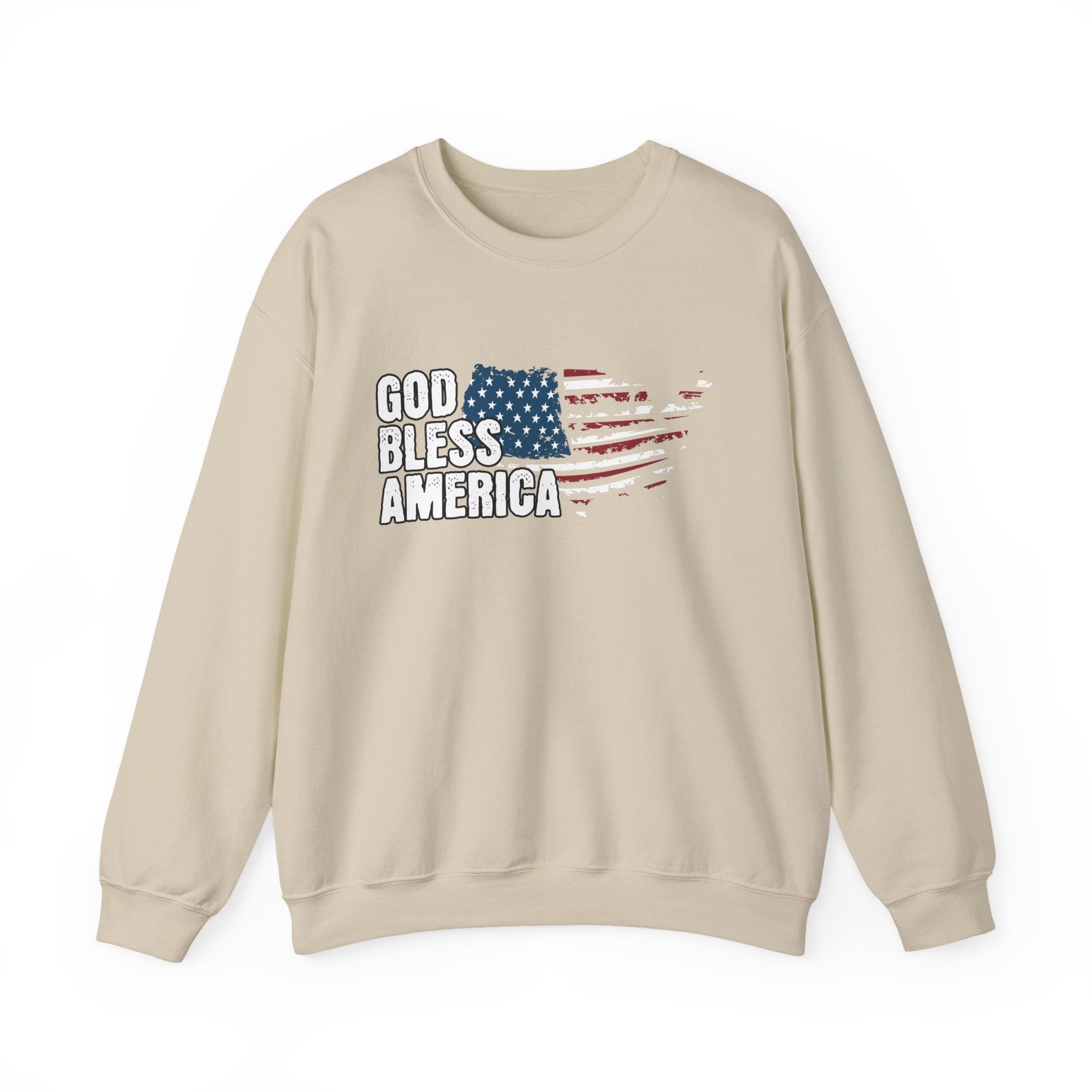 God Bless America Crewneck Sweatshirt — Distressed Flag Patriotic Pullover