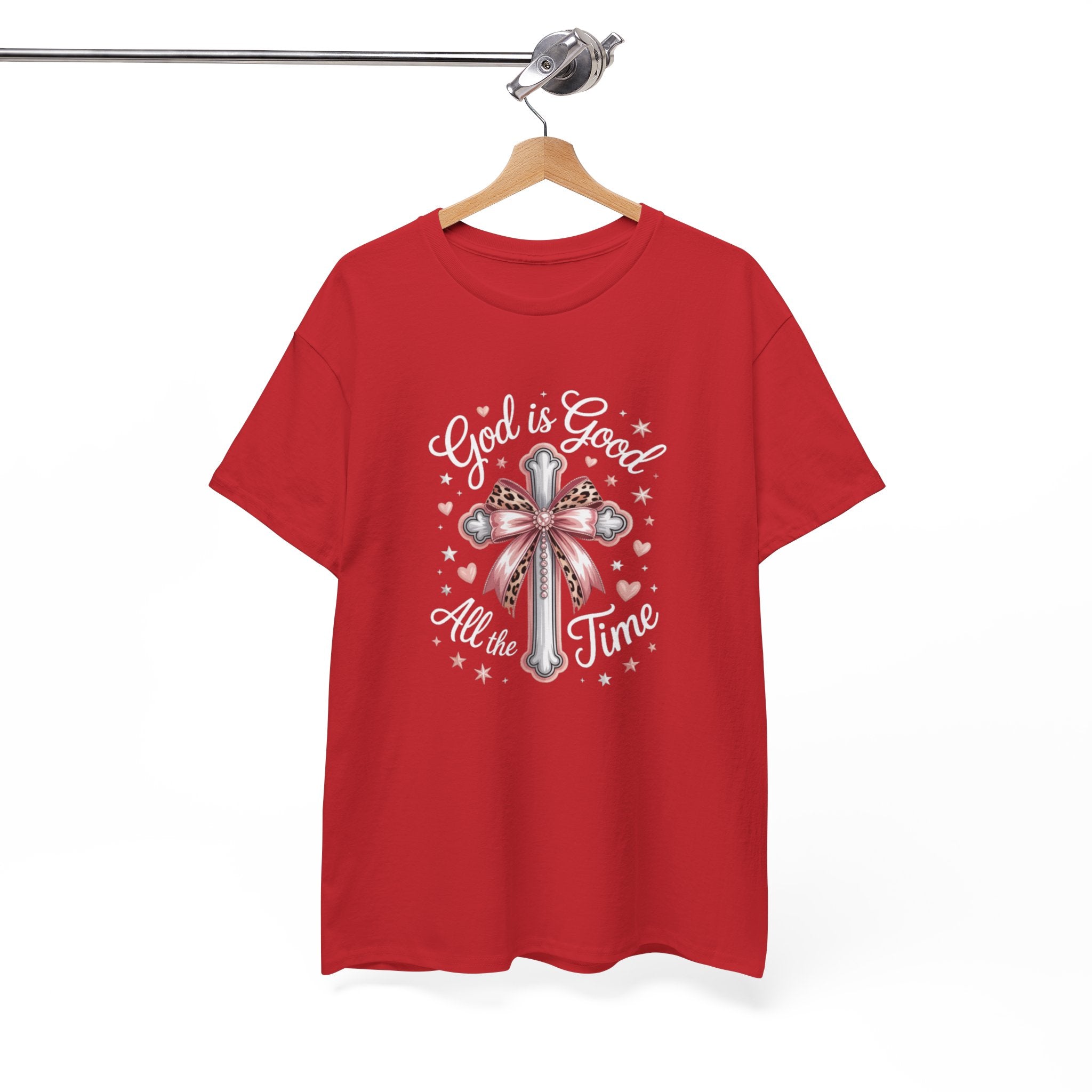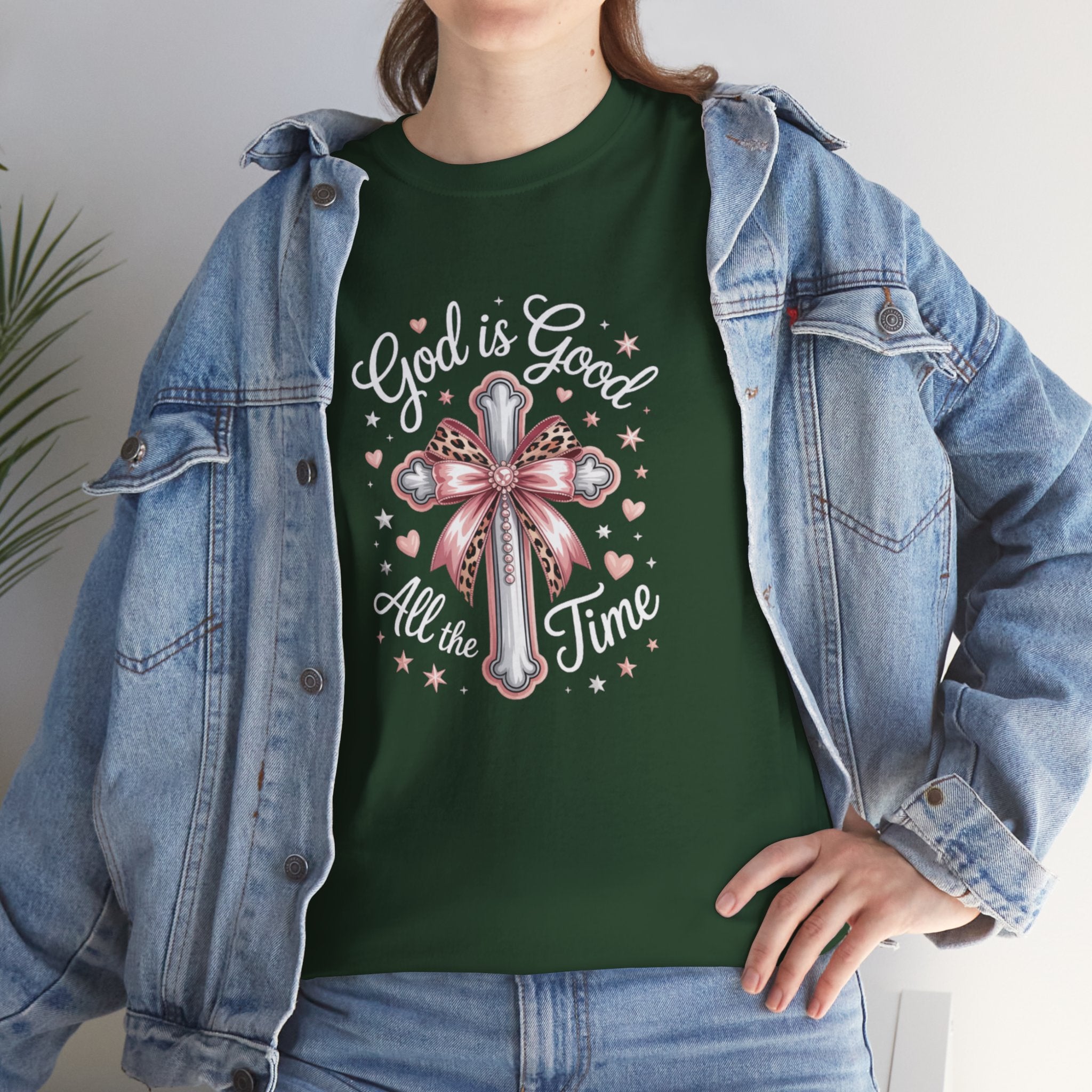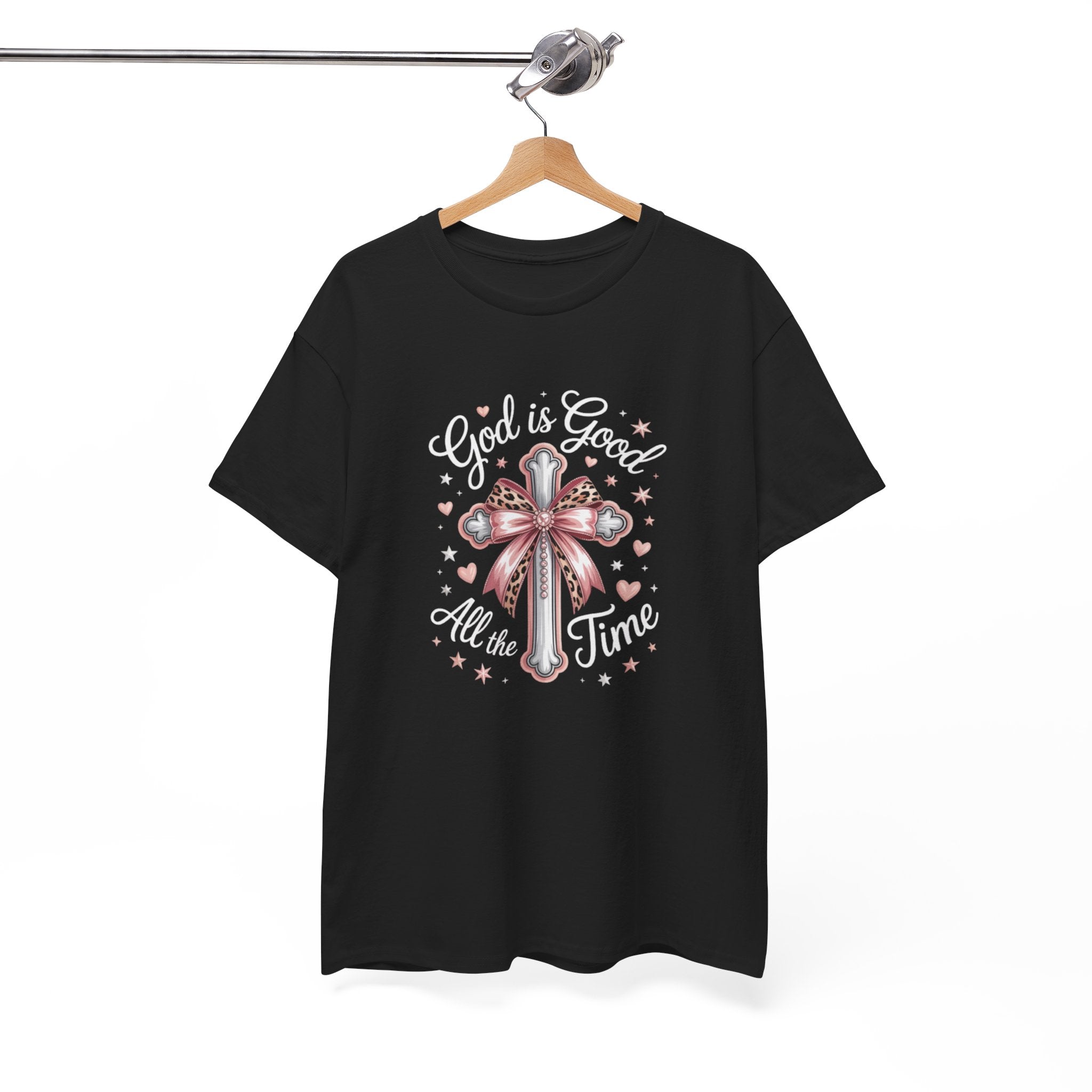 God Is Good All the Time T-Shirt — Pink Cross Christian Faith Tee