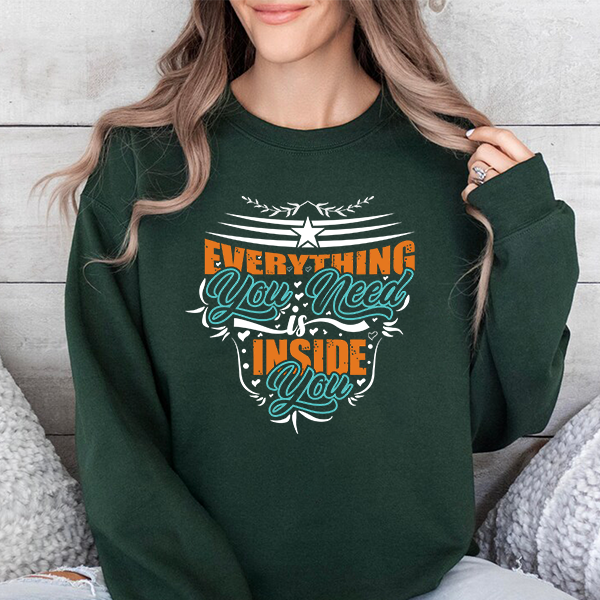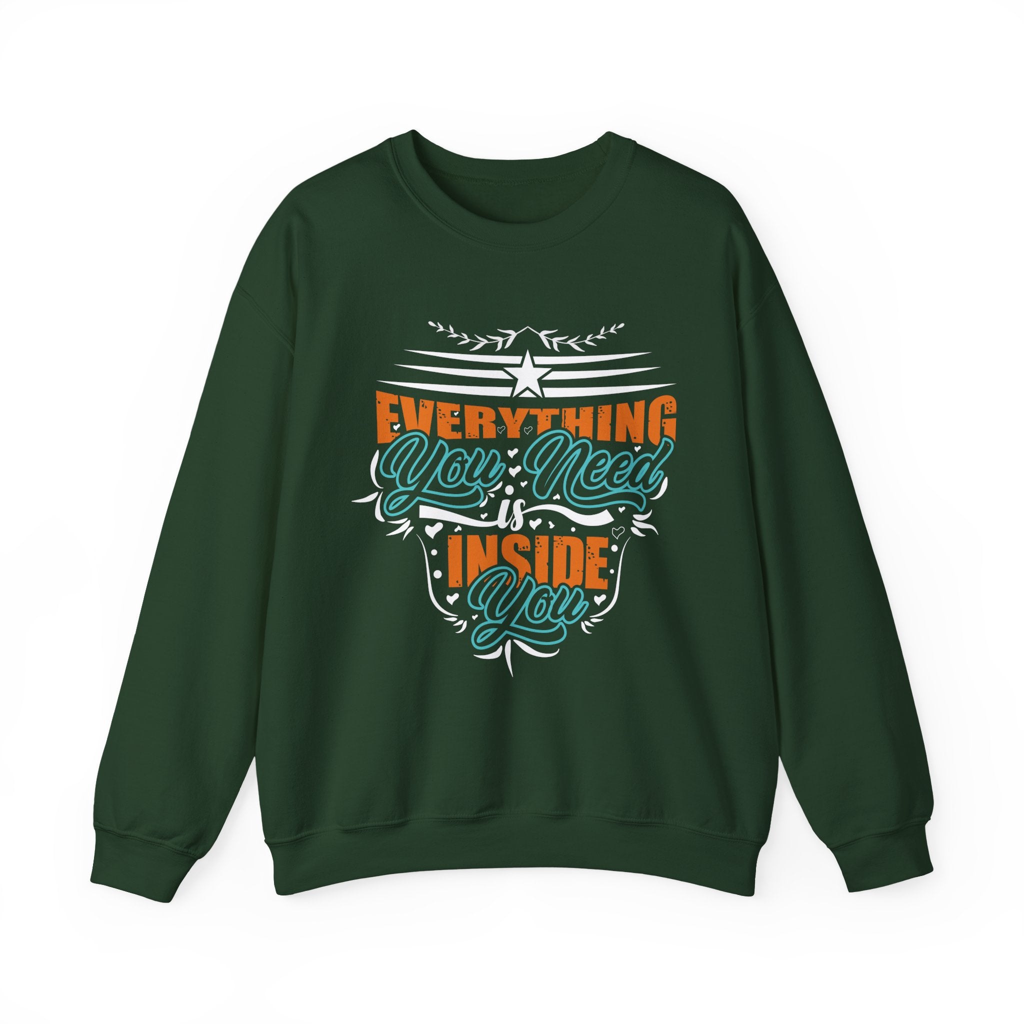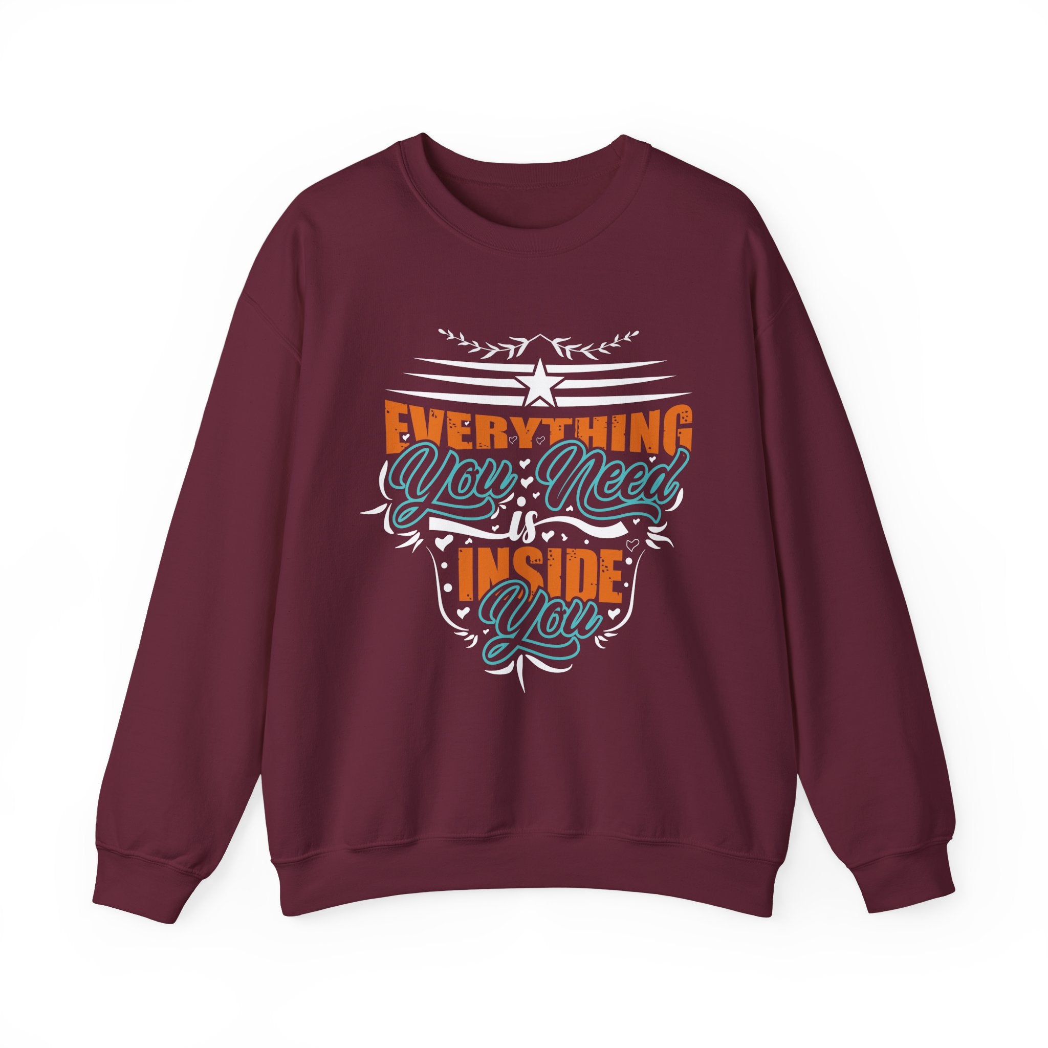 Inspirational Crewneck Sweatshirt — "Everything You Need Is Inside You" Motivational Pullover