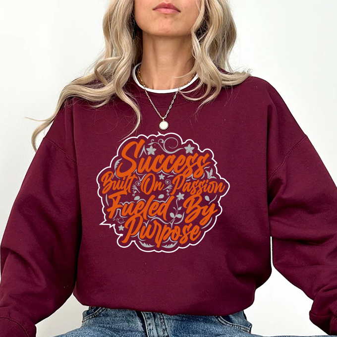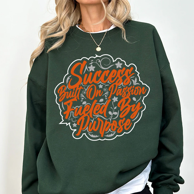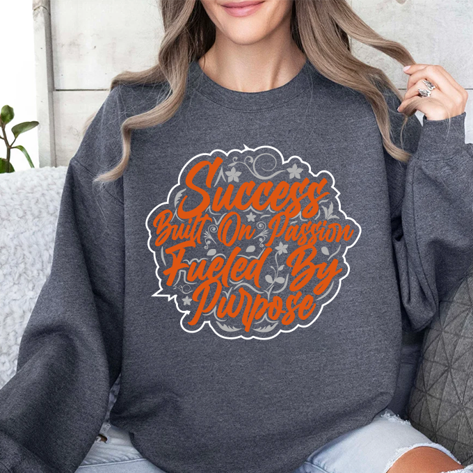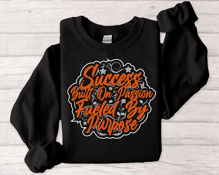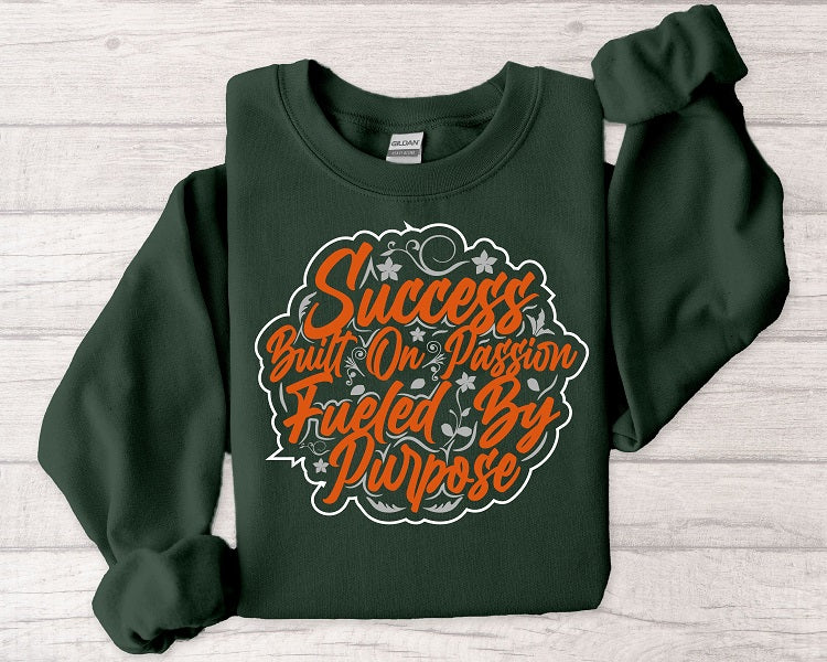 Inspirational Crewneck Sweatshirt — “Success Built on Passion, Fueled by Purpose”