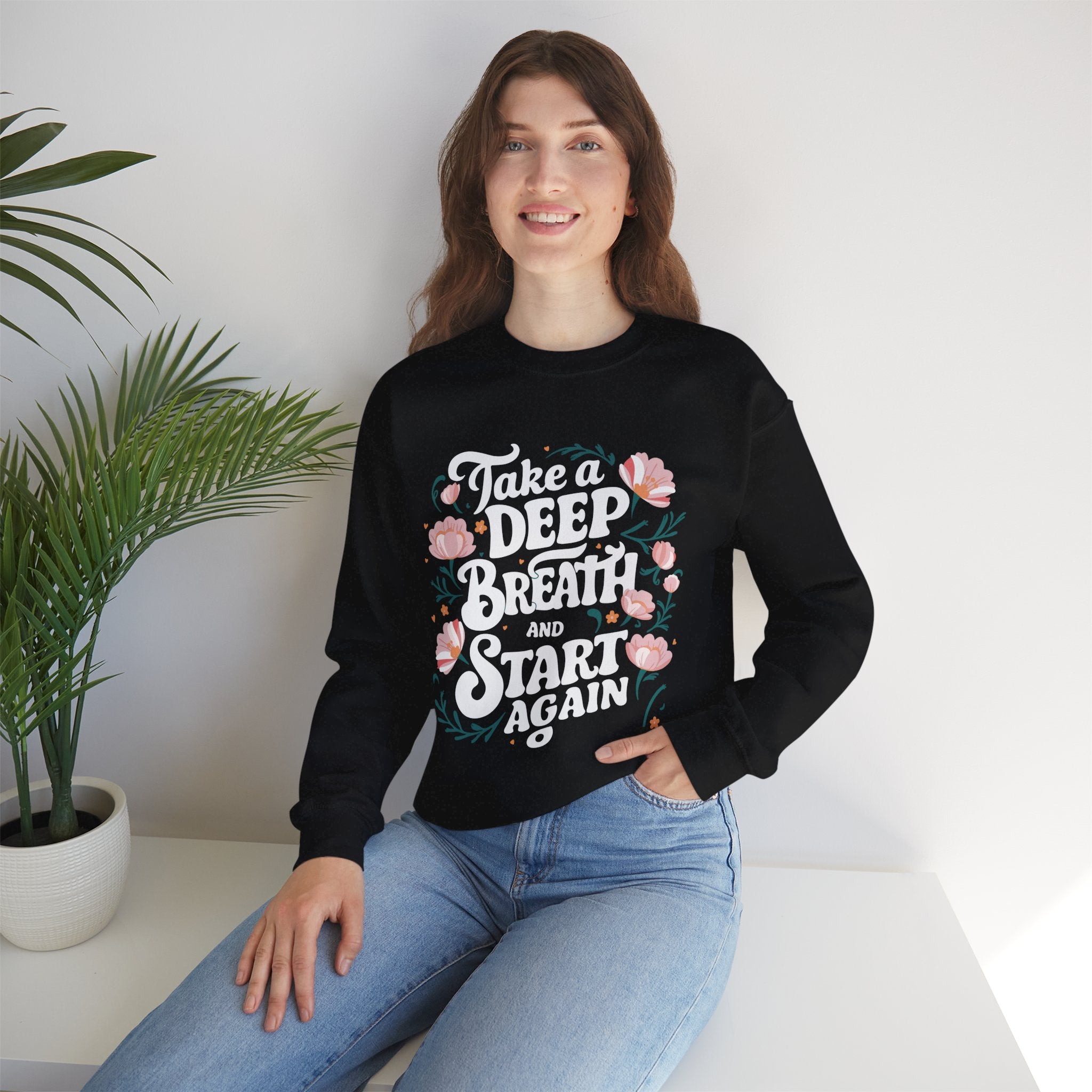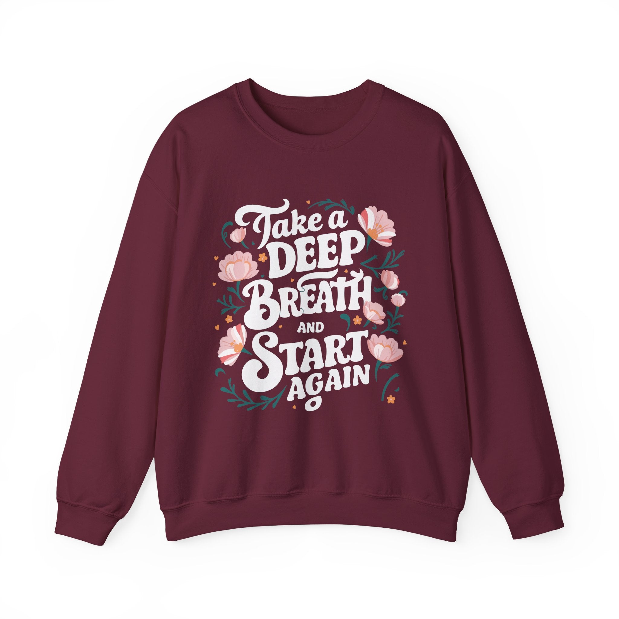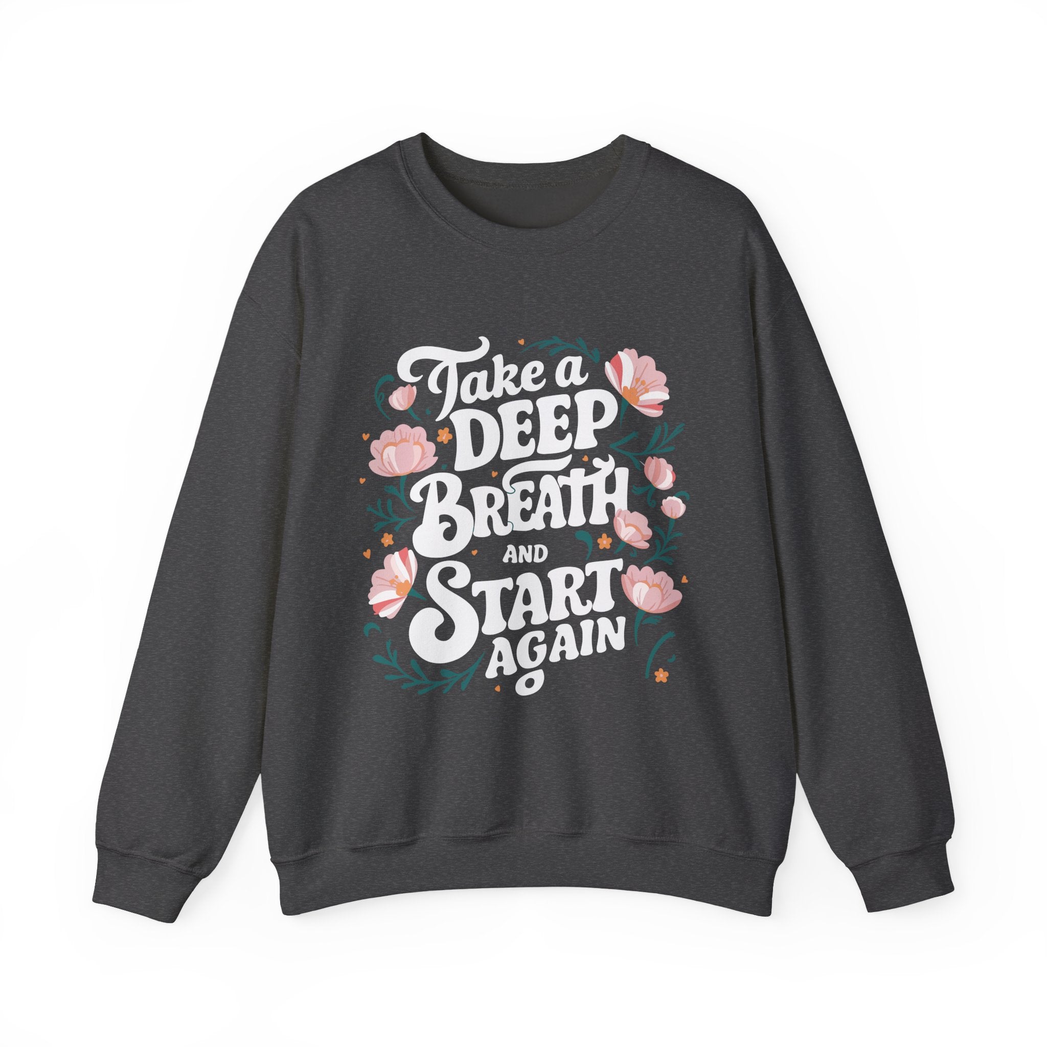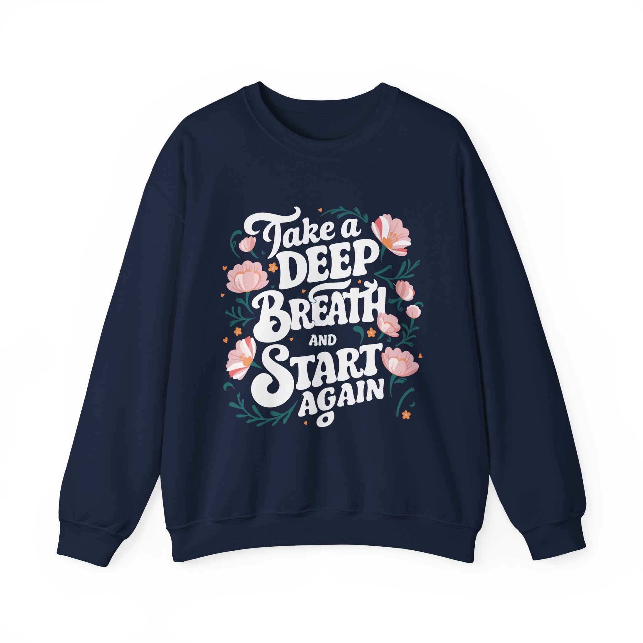 Inspirational 'Take a Deep Breath and Start Again' Sweatshirt - Floral Motivational Crewneck