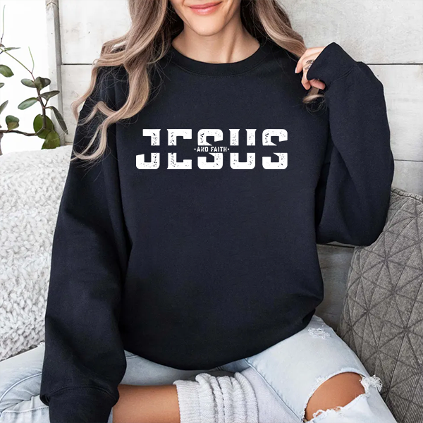 This crewneck sweatshirt carries a quiet, confident faith. The bold, varsity-style “JESUS” print reads like a hometown emblem—worn by people who want their belief to feel familiar, not flashy. The midweight cotton-poly blend settles in soft and warm; the ribbed collar and double-needle stitching hold shape through repeated wear. Throw it on for a Sunday meet-up, late-night worship, or coffee with friends — it layers easily under a coat or stands alone as your everyday reminder. Subtle distressing in the lettering gives lived-in character, so it looks like one of your go-to pieces from day one.