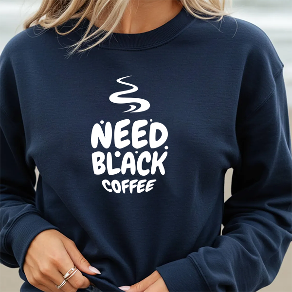 This cozy crewneck sweatshirt says what many mornings feel like: a simple, bold declaration — “Need Black Coffee.” Soft yet substantial, it layers easily over a tee or pairs with lounge pants for slow weekends and early commutes. The hand-drawn style lettering and steam icon feel casual and personal, like a quiet morning ritual captured on fabric. Wear it to coffee runs, study sessions, or low-key meetups; it settles into the rhythm of daily life and becomes part of that first-sip comfort.