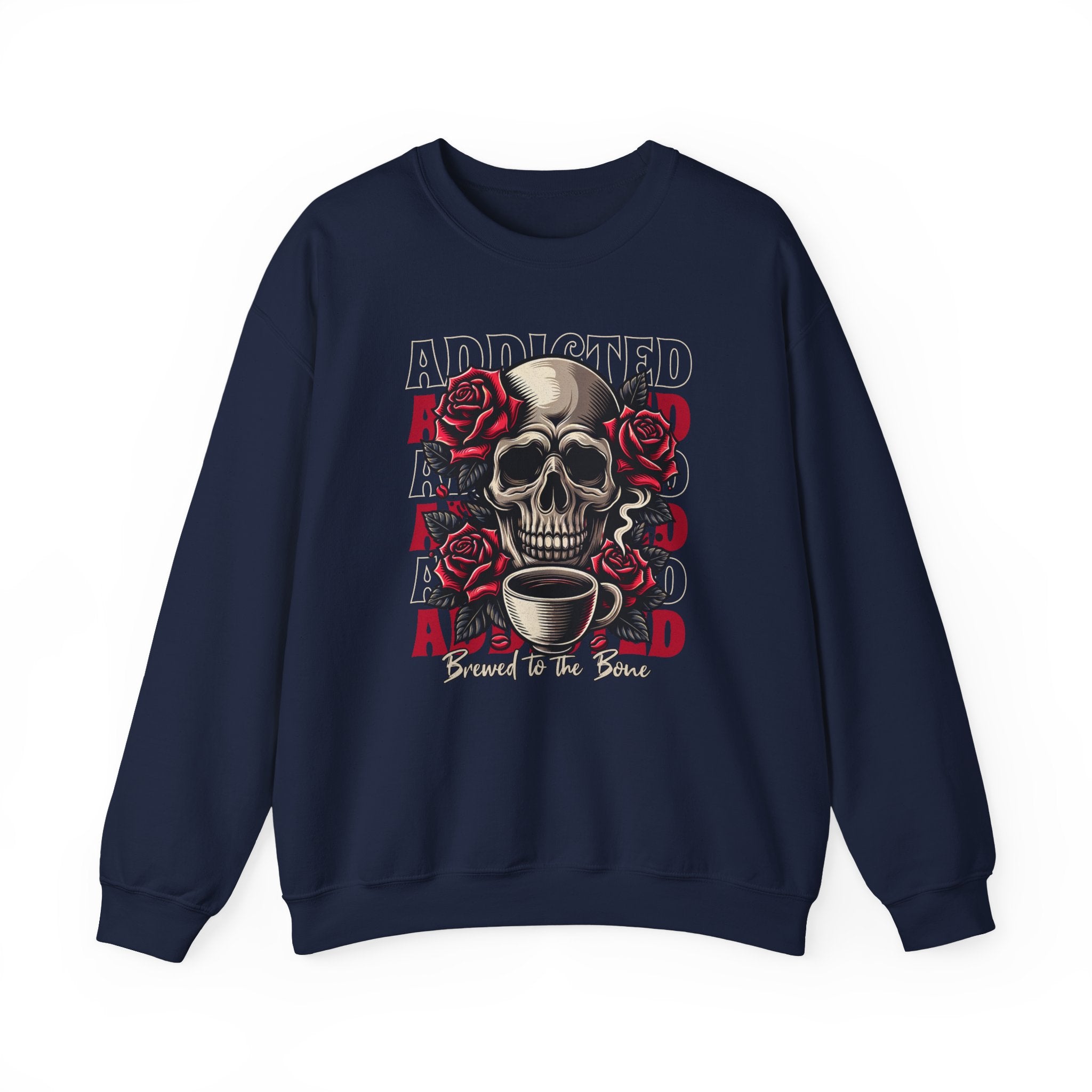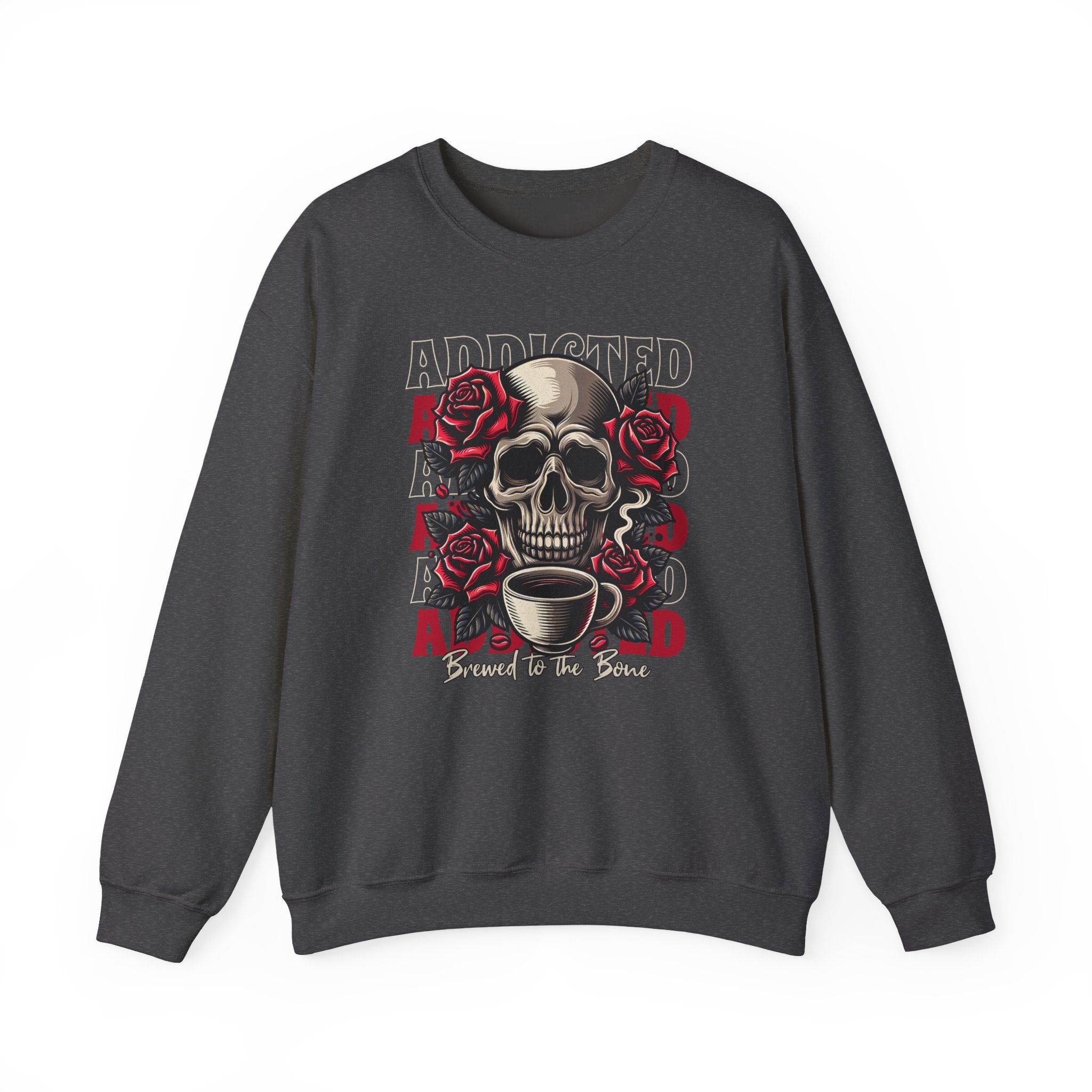 Skull & Roses 'Addicted' Crewneck Sweatshirt — Born to Be Brave Gothic Coffee Lover Pullover