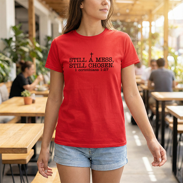 Still a Mess Still Chosen T-Shirt — Christian Faith Tee (1 Corinthians 1:27)