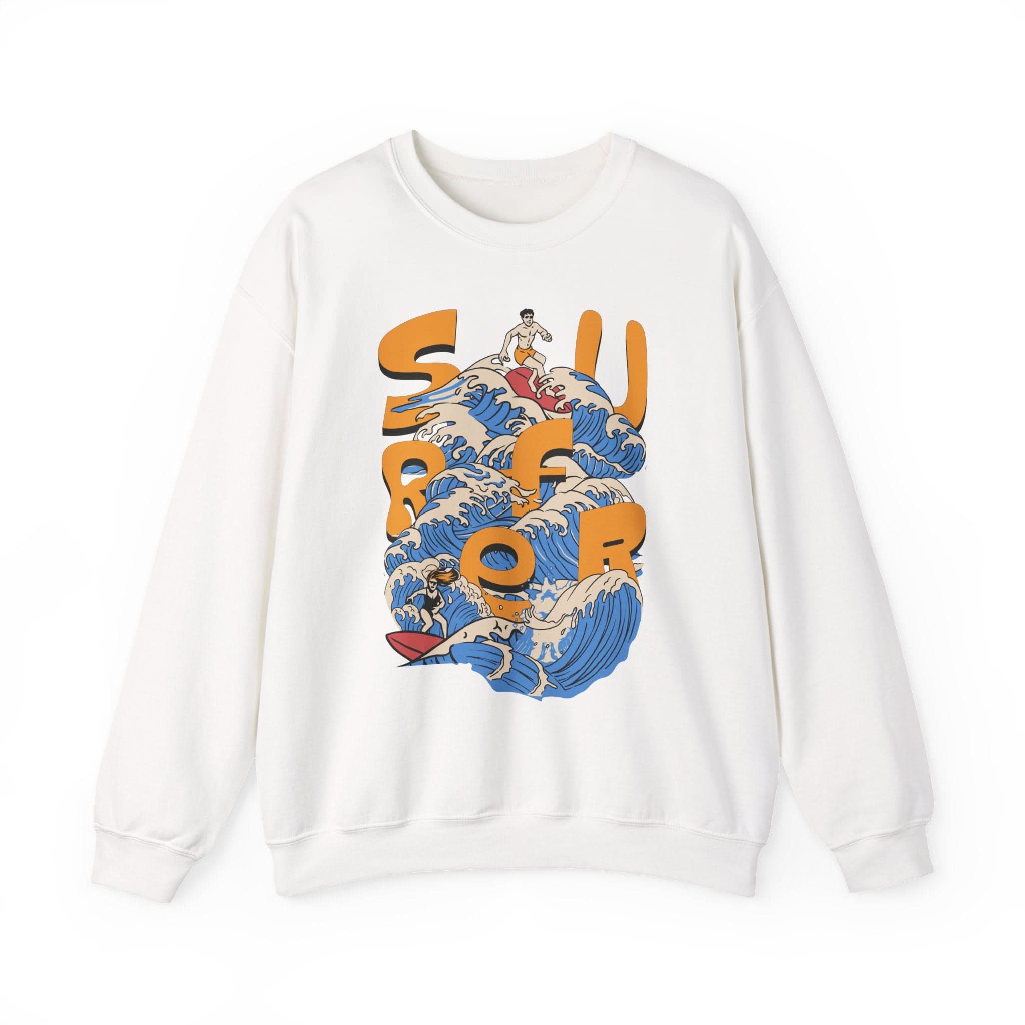 Surf-Inspired Unisex Crewneck Sweatshirt, Cozy Beachwear, Casual Ocean Vibe, Perfect for Surfing Lovers, Gift for Ocean Enthusiasts
