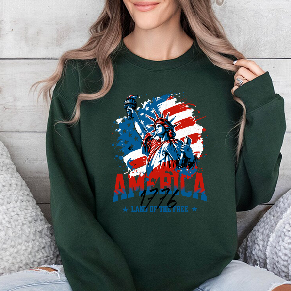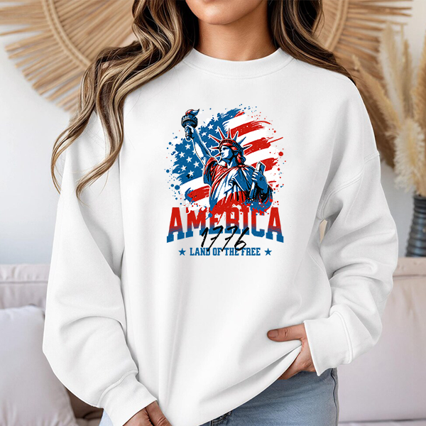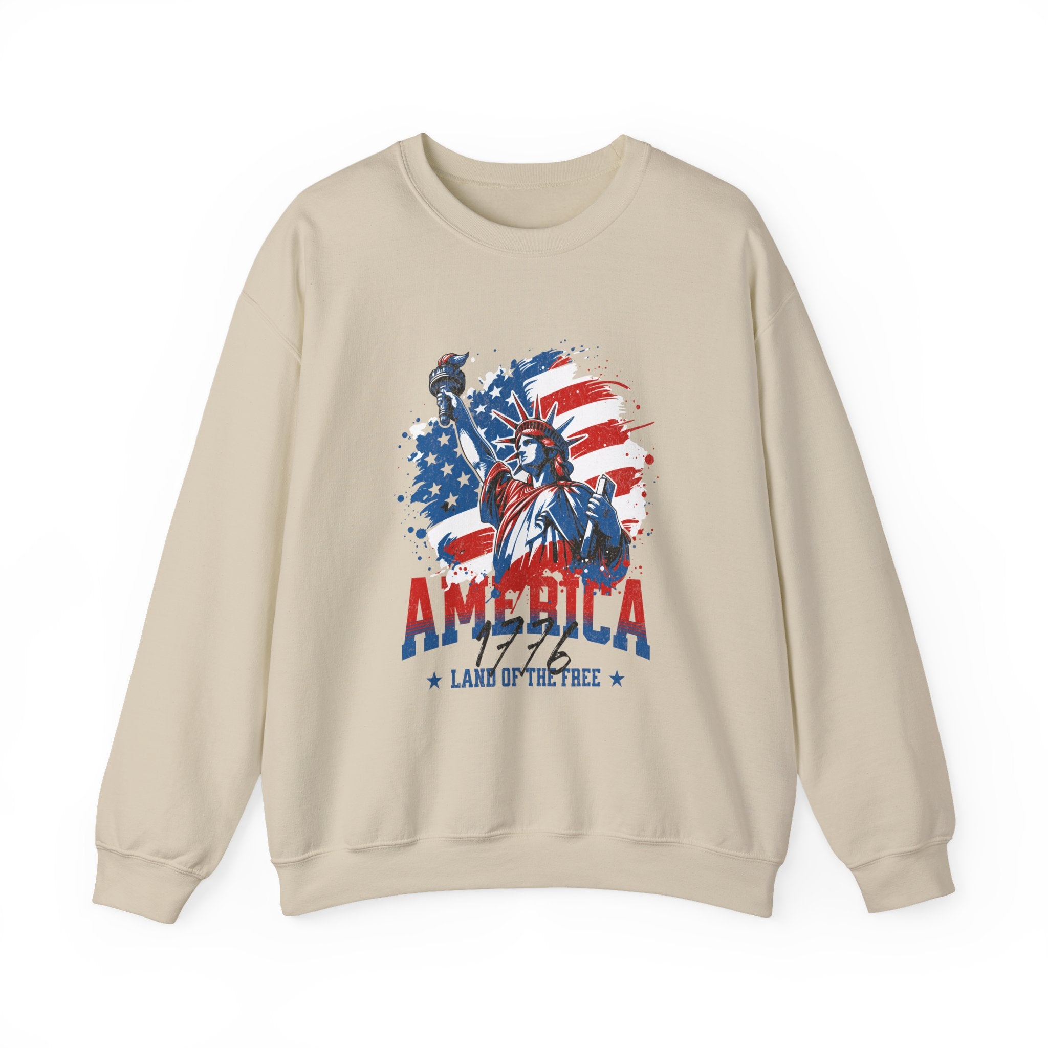 Sweatshirt - "America 1776 Land of the Free" Patriotic Statue of Liberty Crewneck