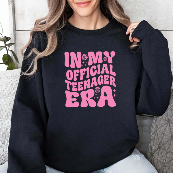 Teen Birthday Sweatshirt - "In My Official Teenager Era" Pink Graphic Crewneck