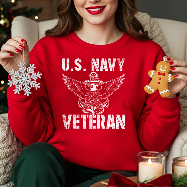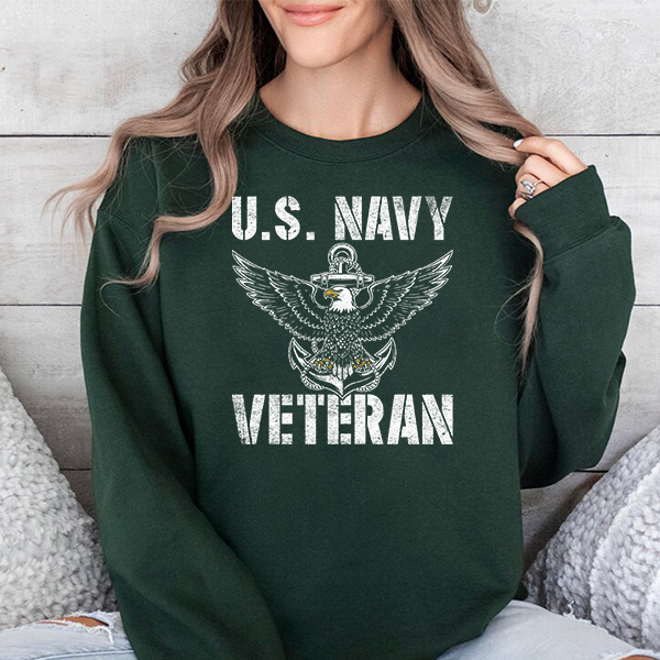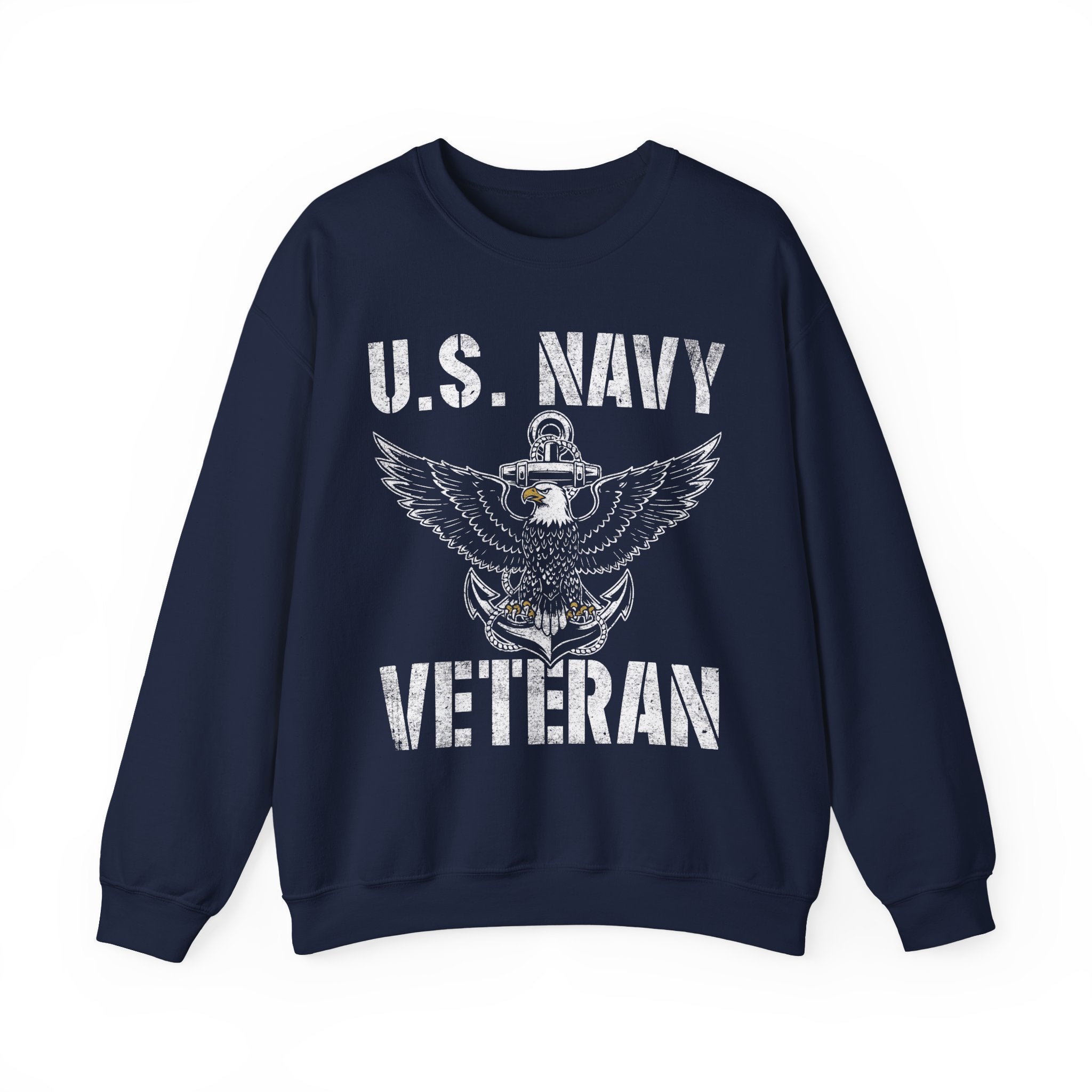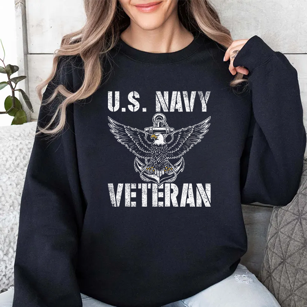 U.S. Navy Veteran Crewneck Sweatshirt - Distressed Anchor & Eagle Design